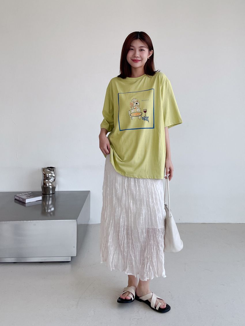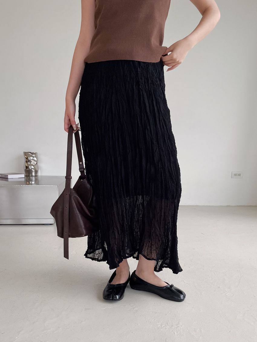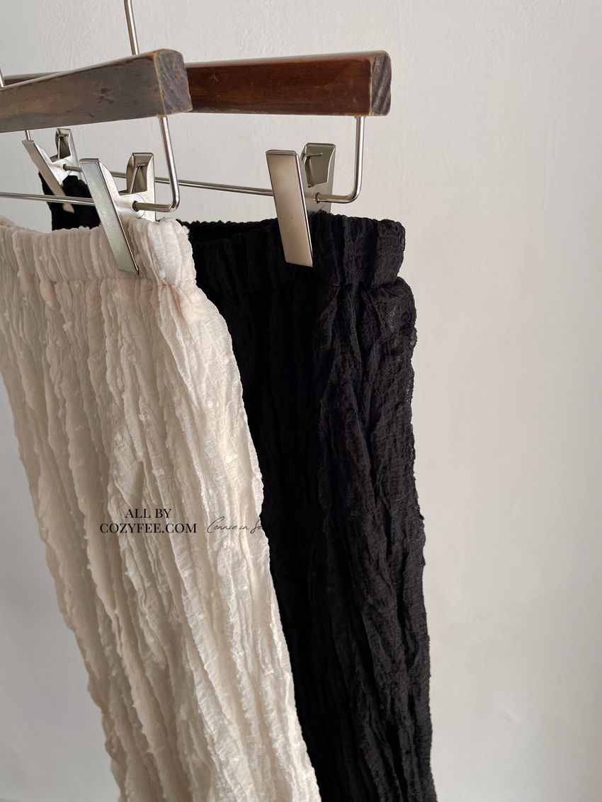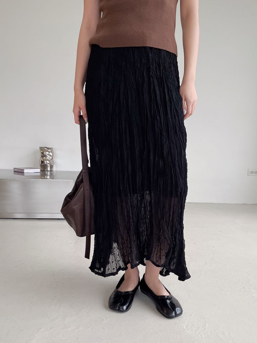 > 雪點植絨揉皺雪紡紗裙