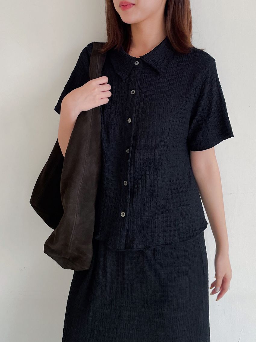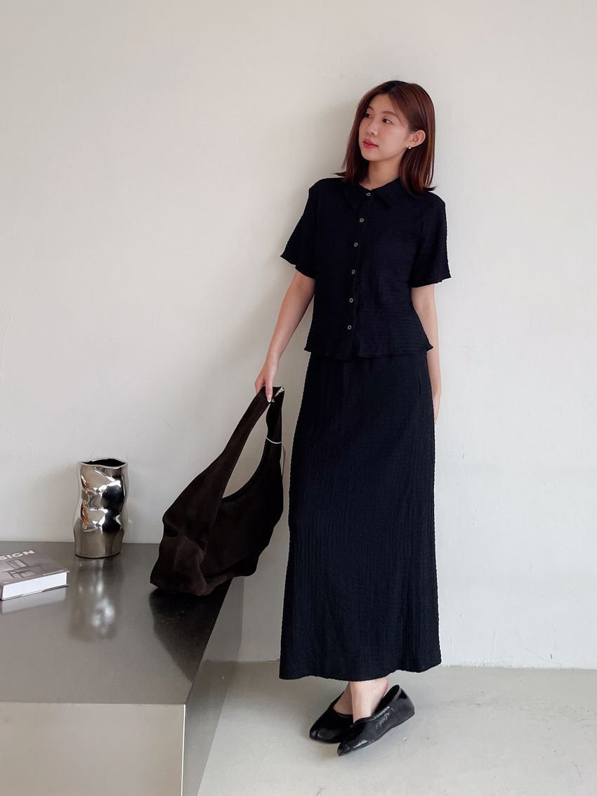 > 皺紙彈性雪紡鉛筆裙(直播款)