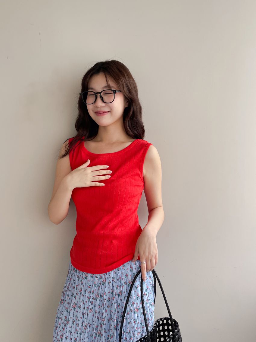 > 緹花雙面U領背心(直播款)(特)