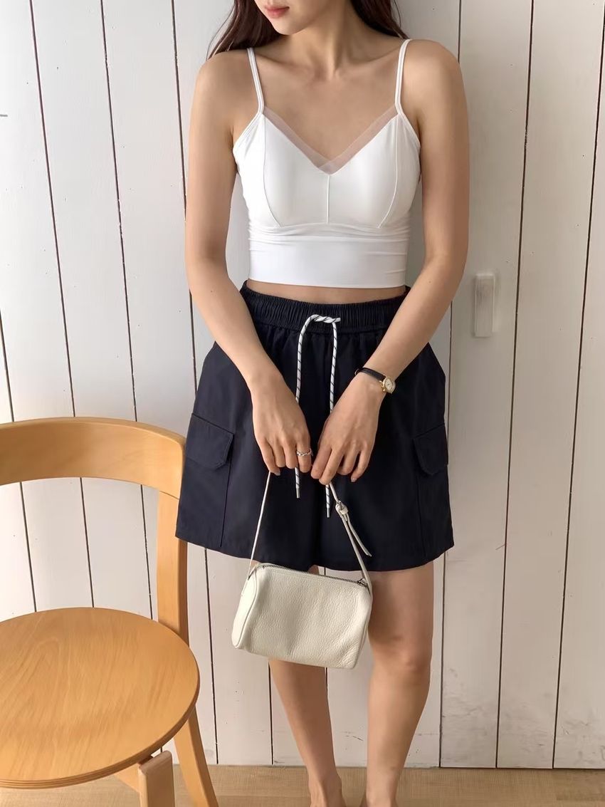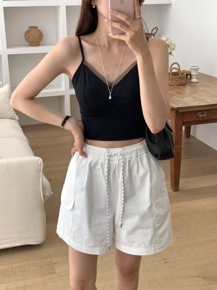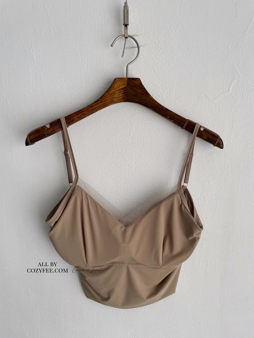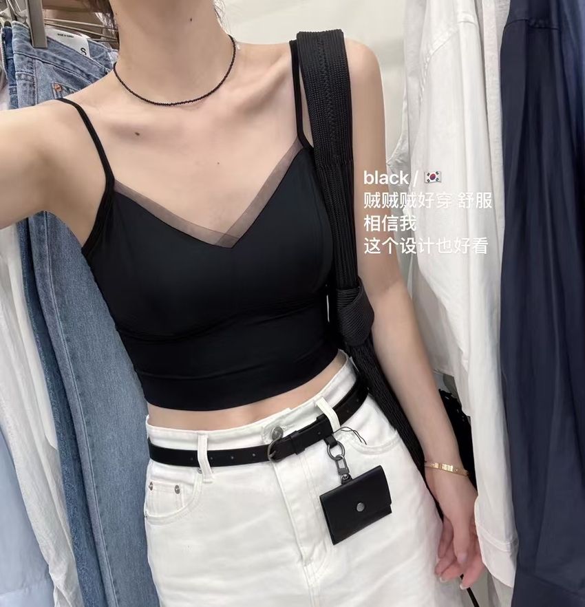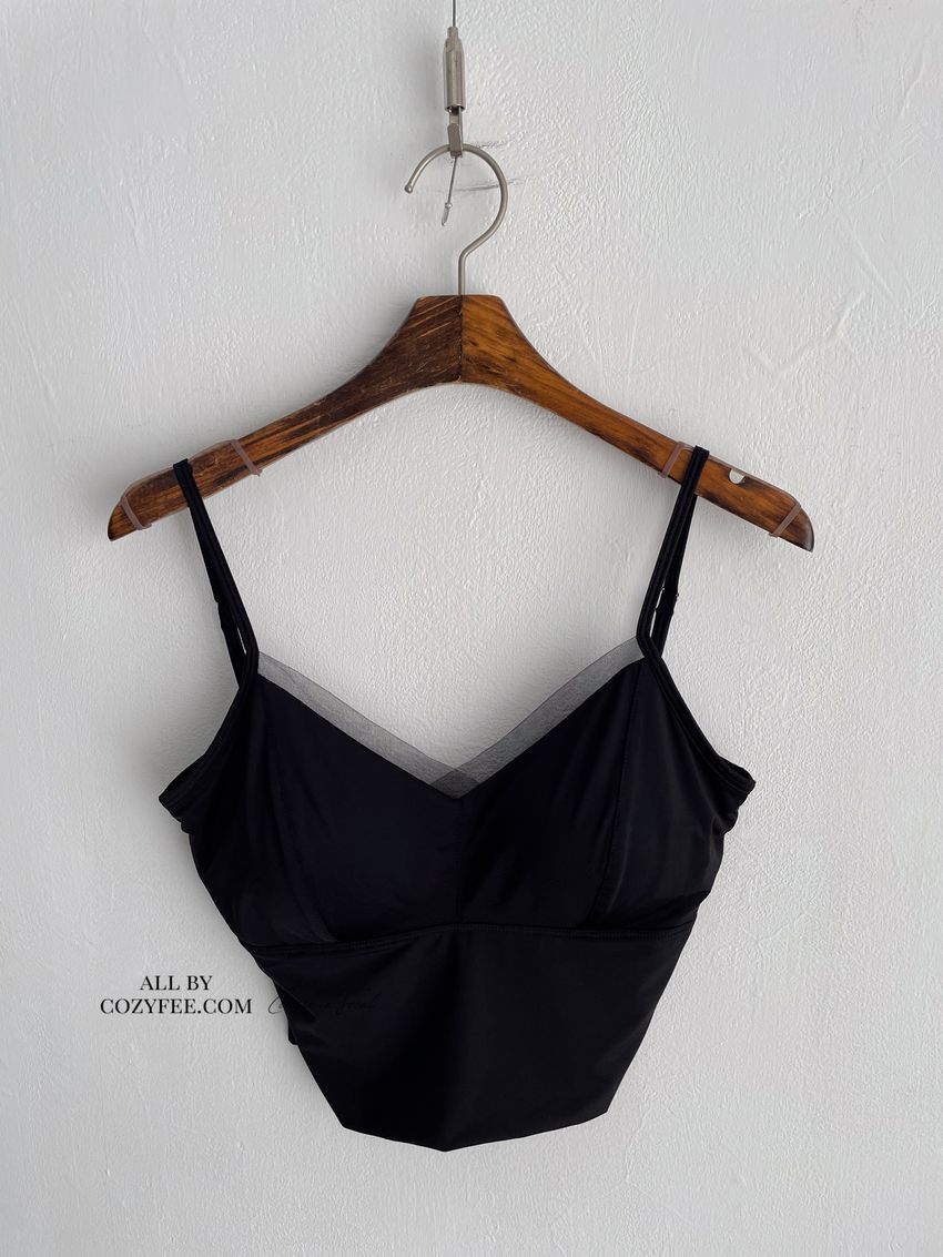 網紗滾邊V領Bra Top(內含墊)(直播款)
