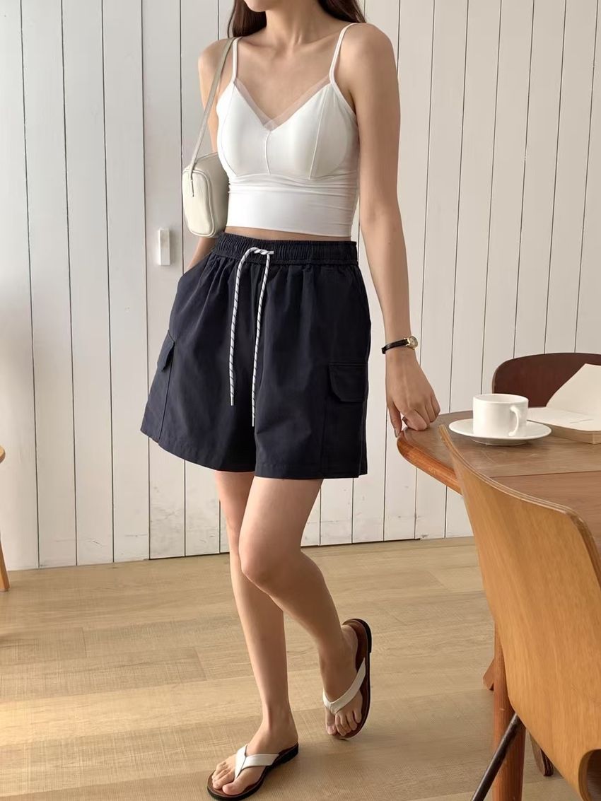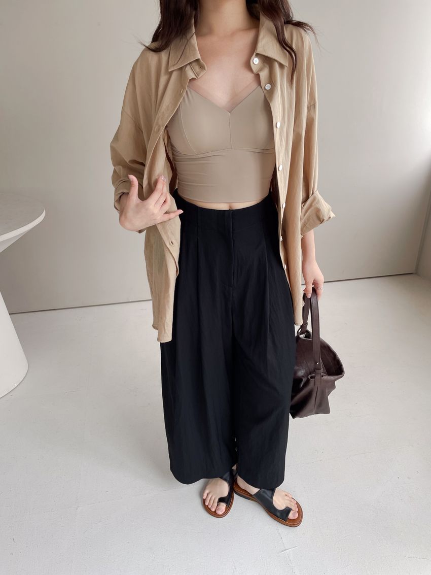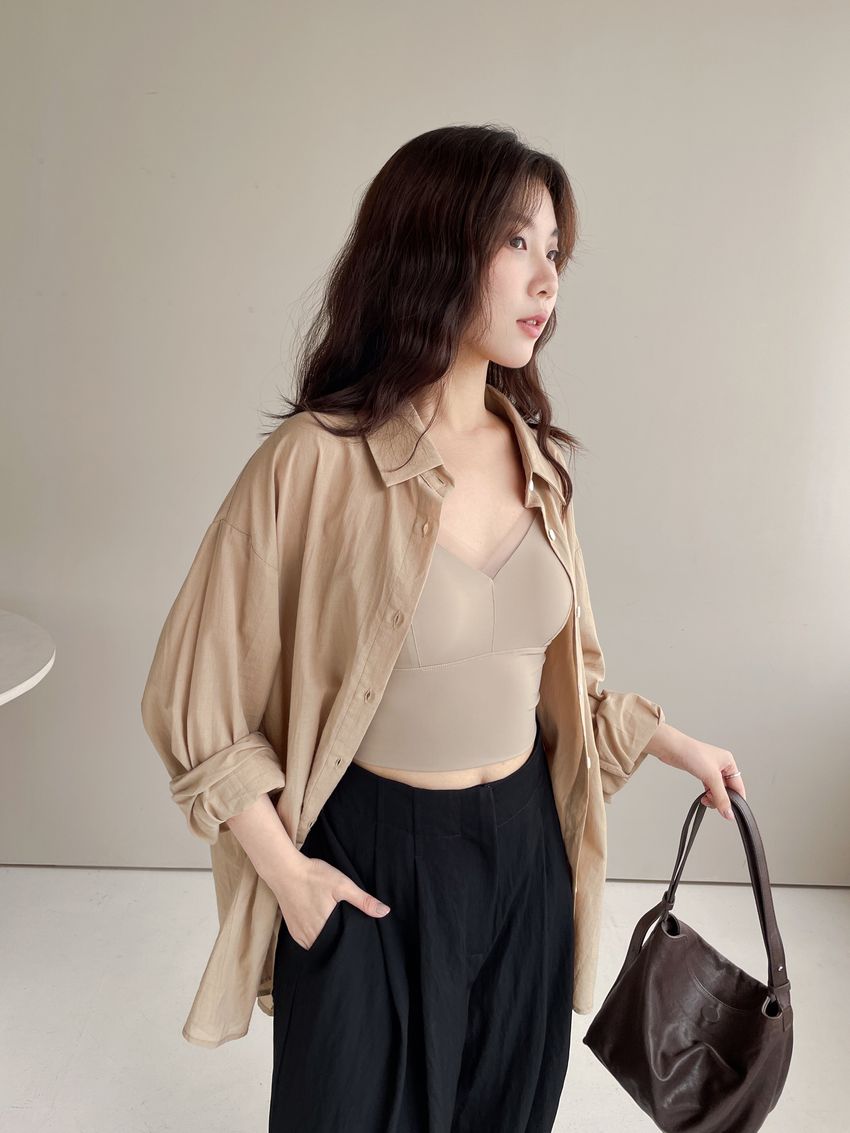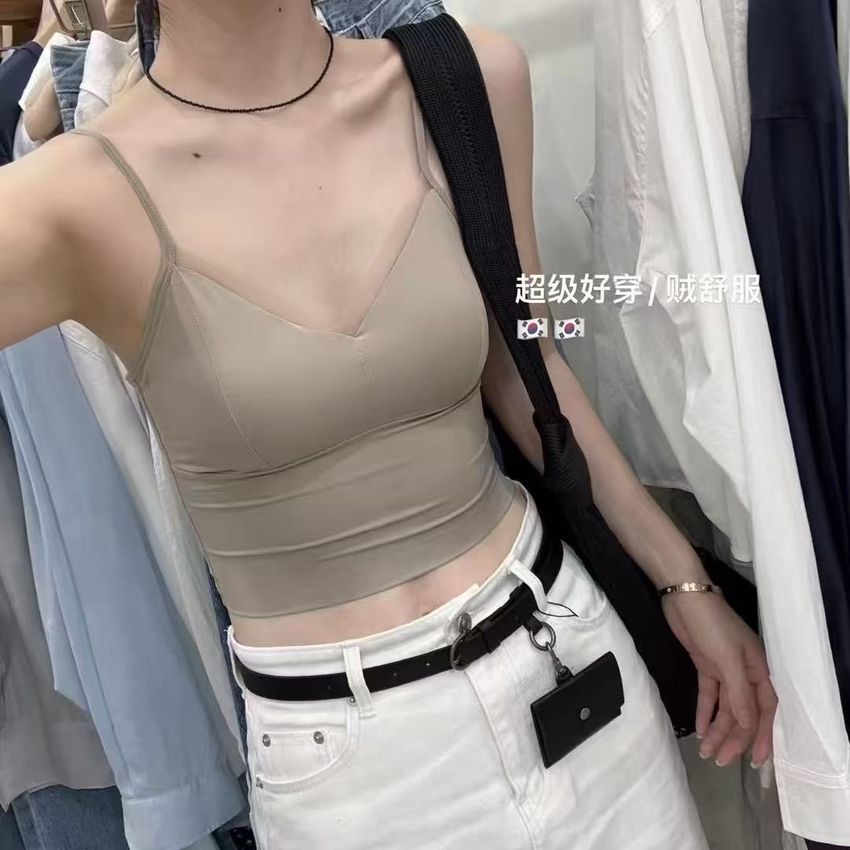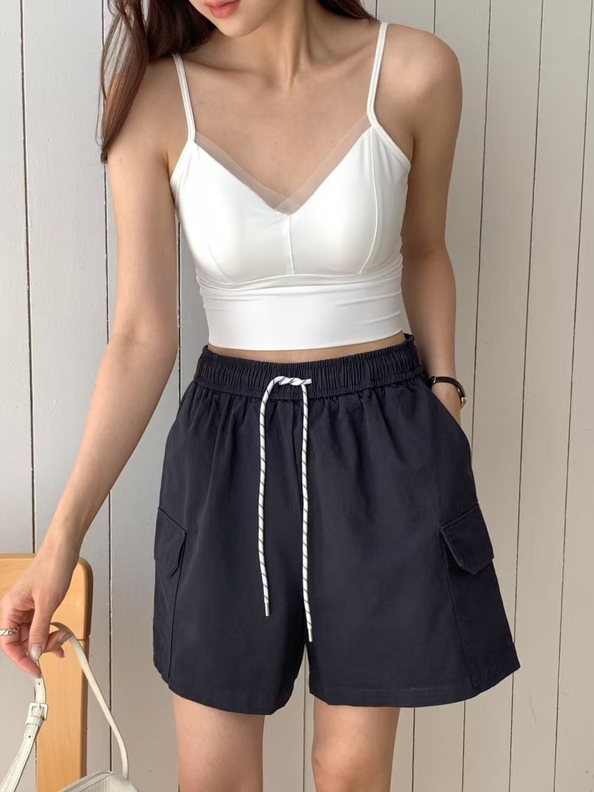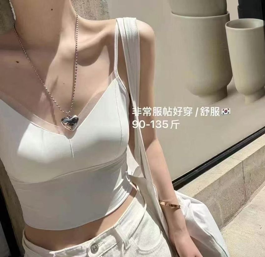 網紗滾邊V領Bra Top(內含墊)(直播款)