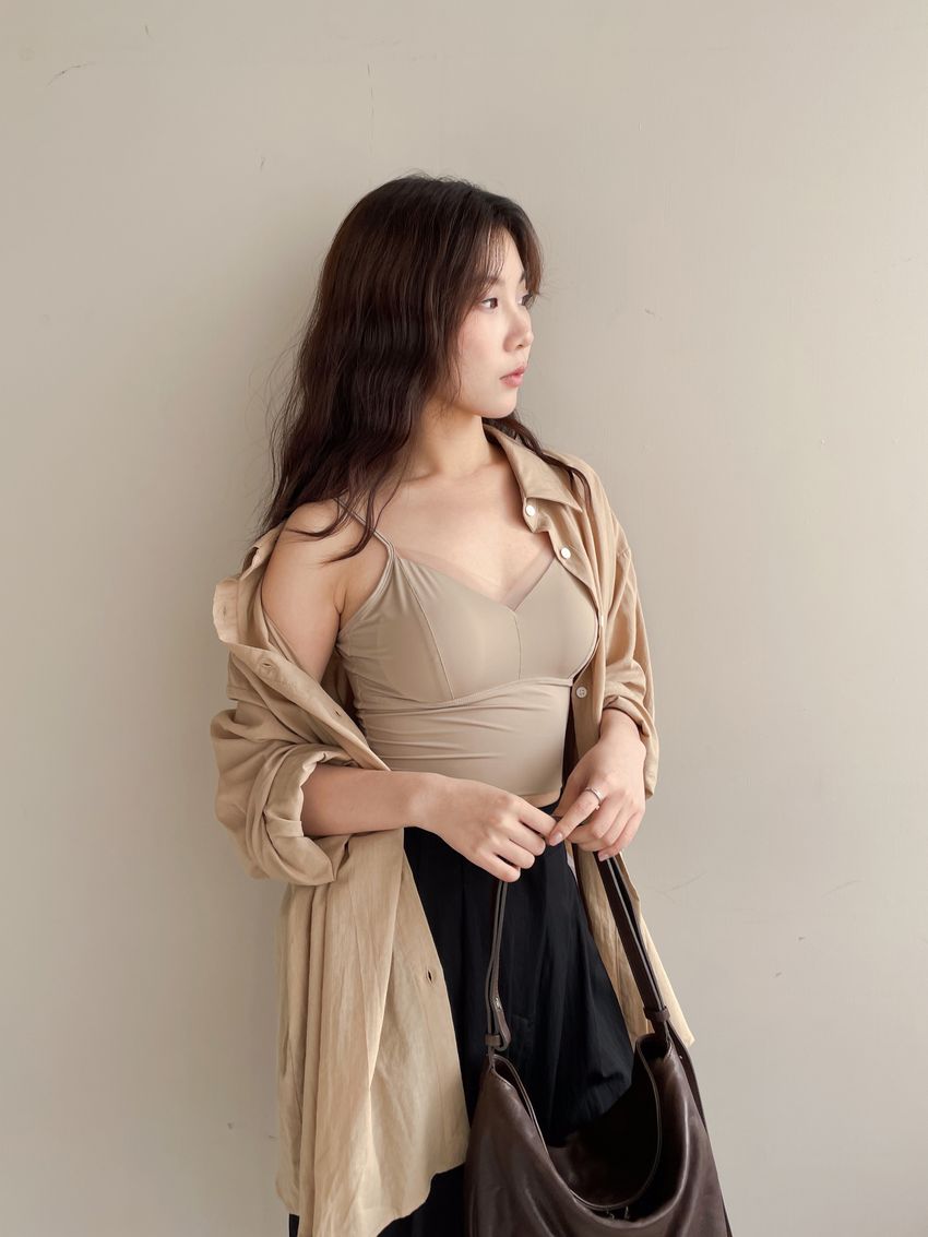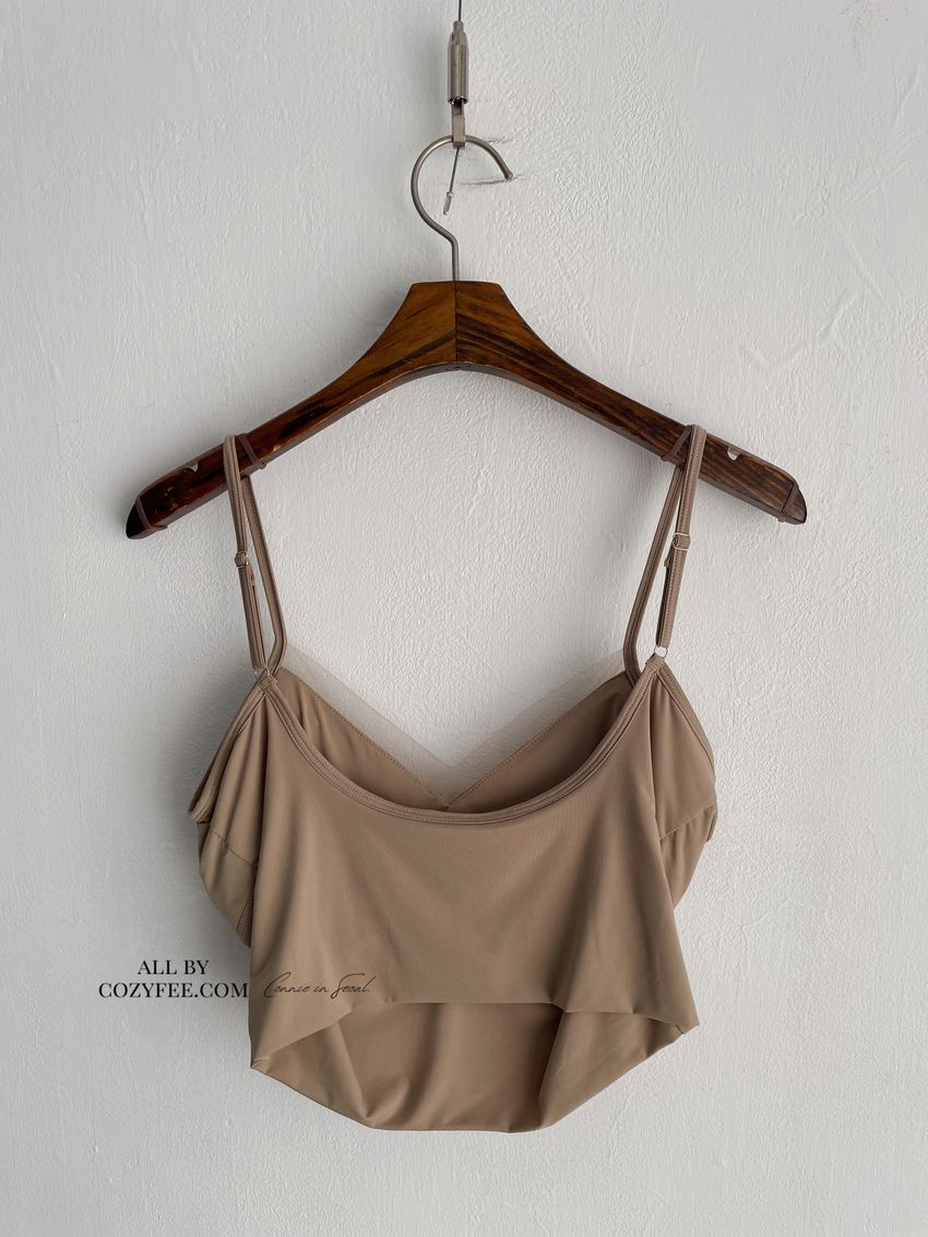 > 網紗滾邊V領Bra Top(內含墊)(直播款)