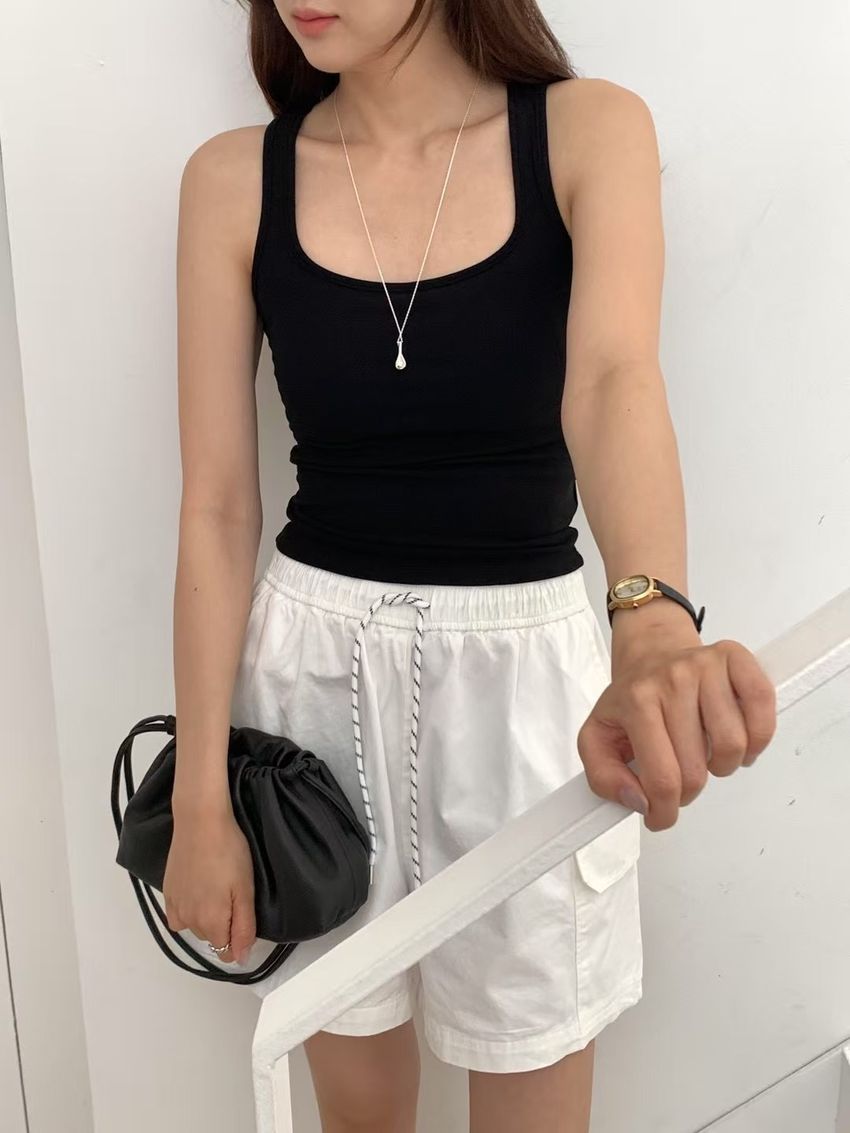 92%viscose 8%span細坑紋面料親膚柔軟彈性非常好胸墊已經車縫固定 不能拆胸墊屬於薄杯 穿起來胸型自然後Y字設計 直接單穿也很好看黑色 / 深灰色 / 白色model / Yen - 159cm / 44kg 腰24 臀34