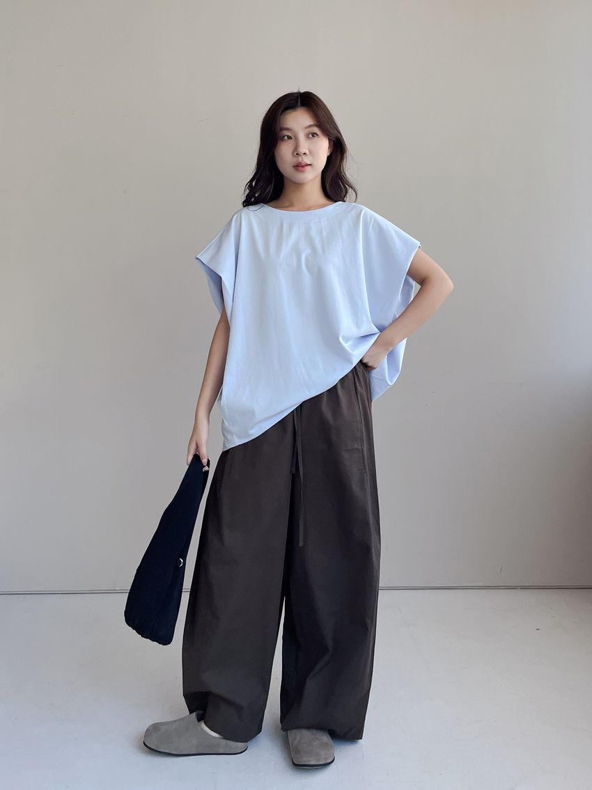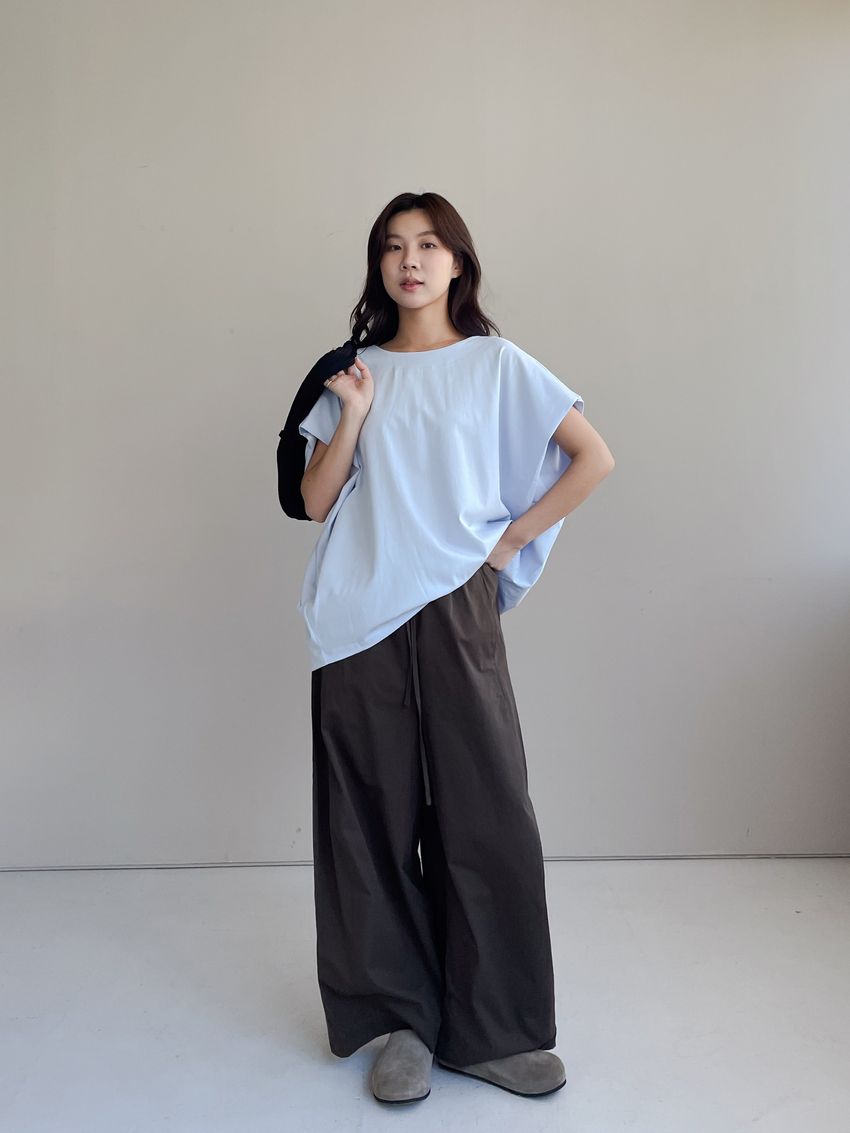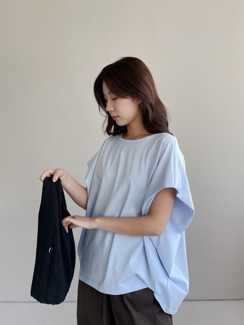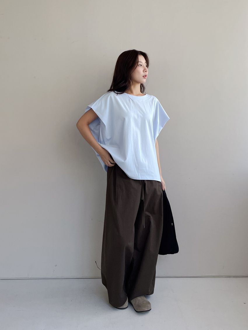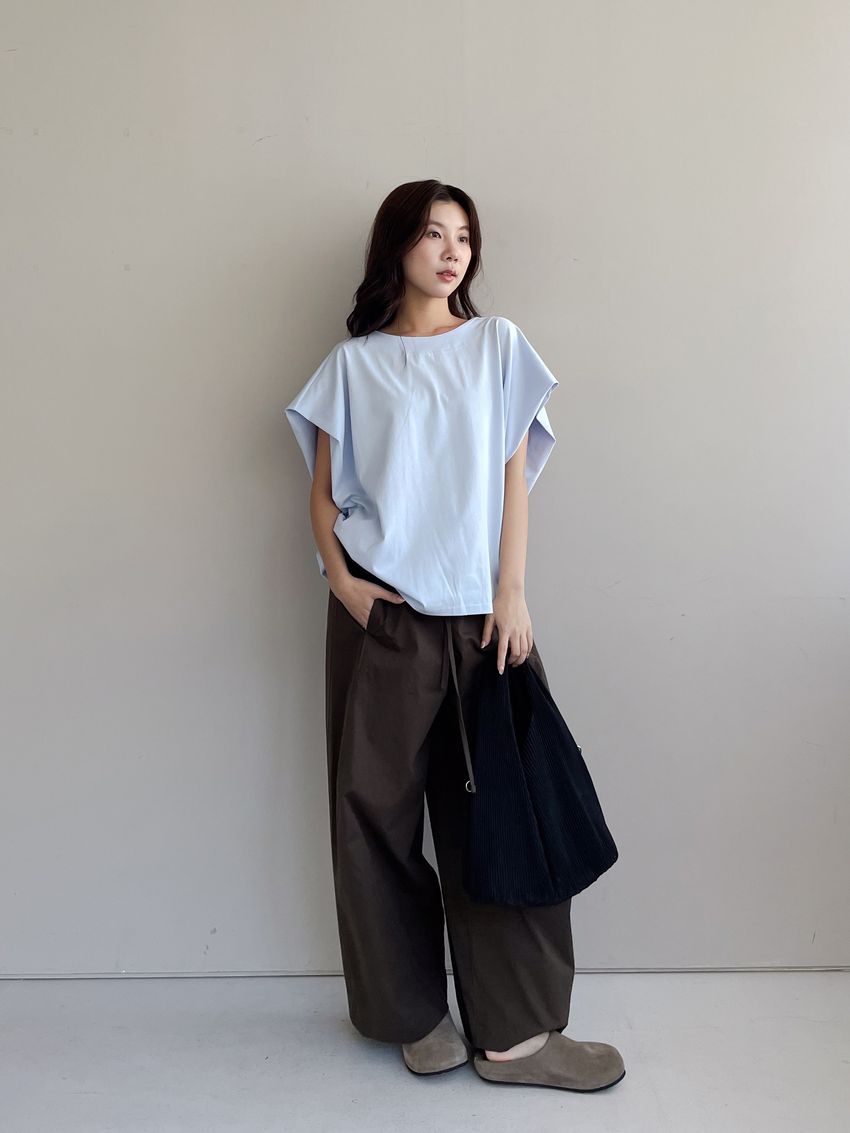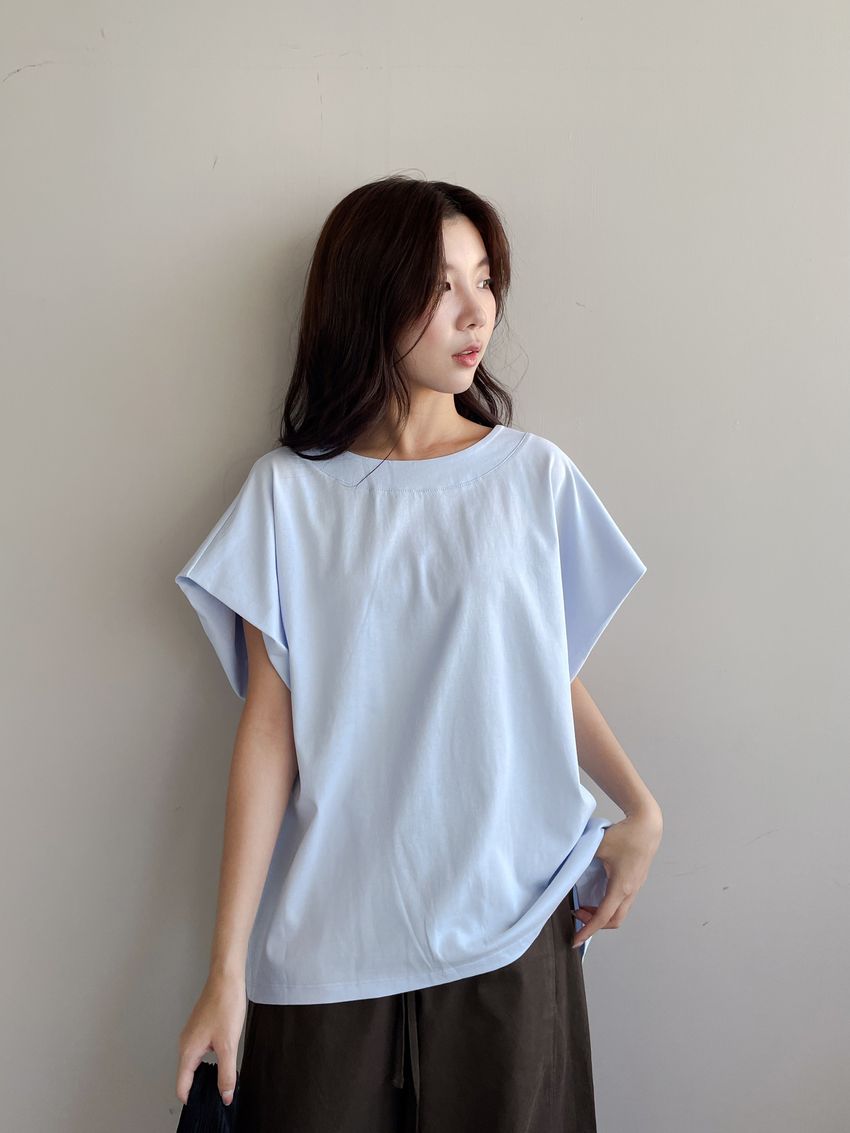 > 内摺切袖短T