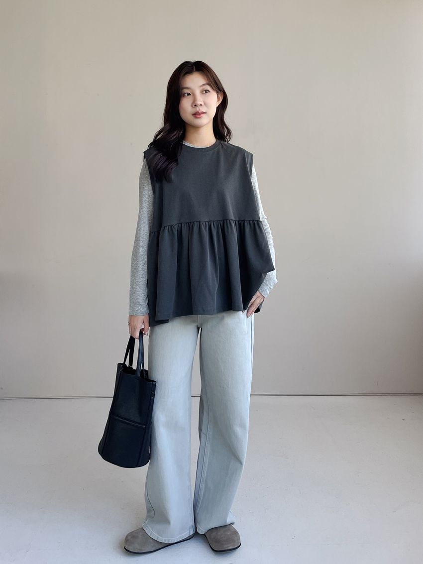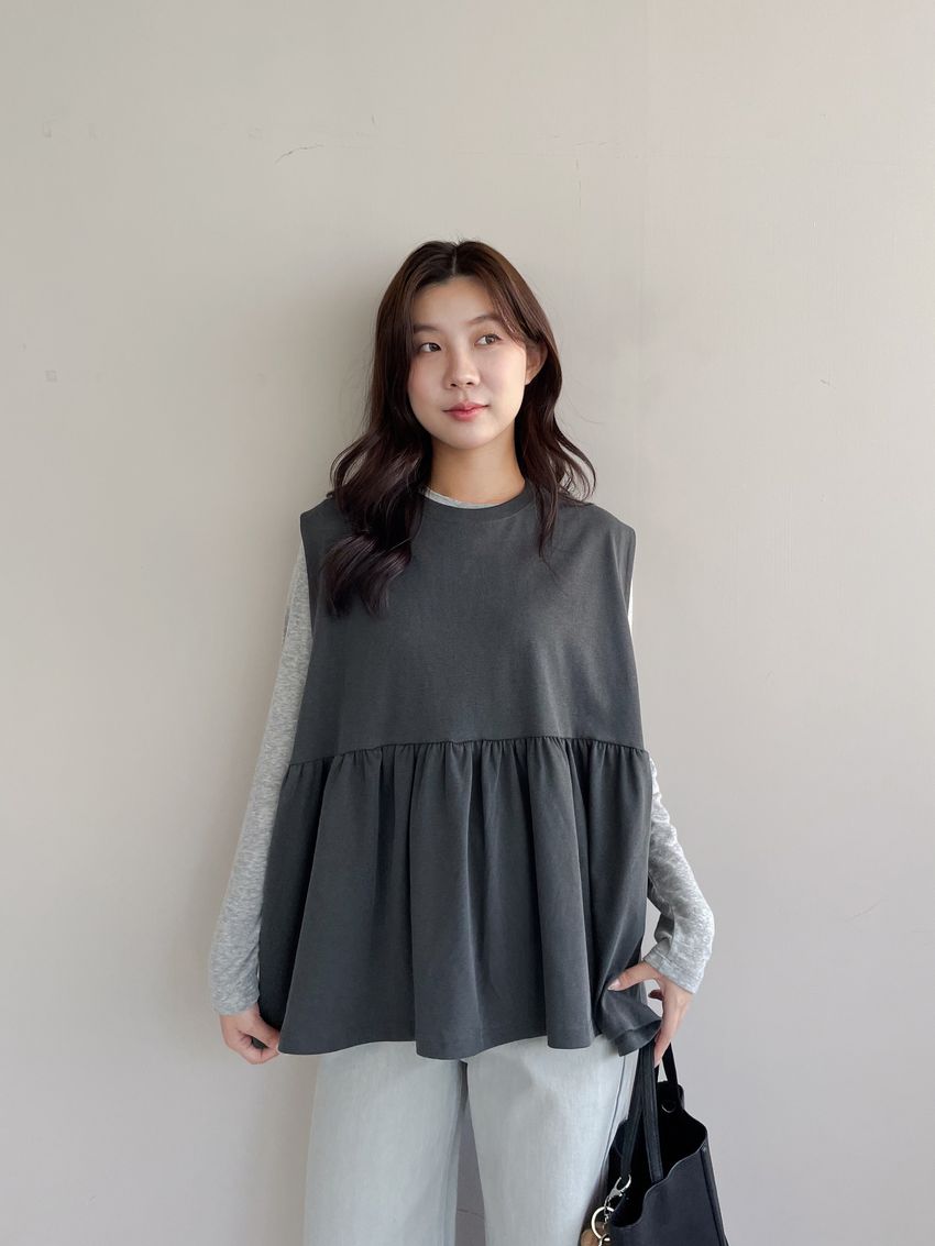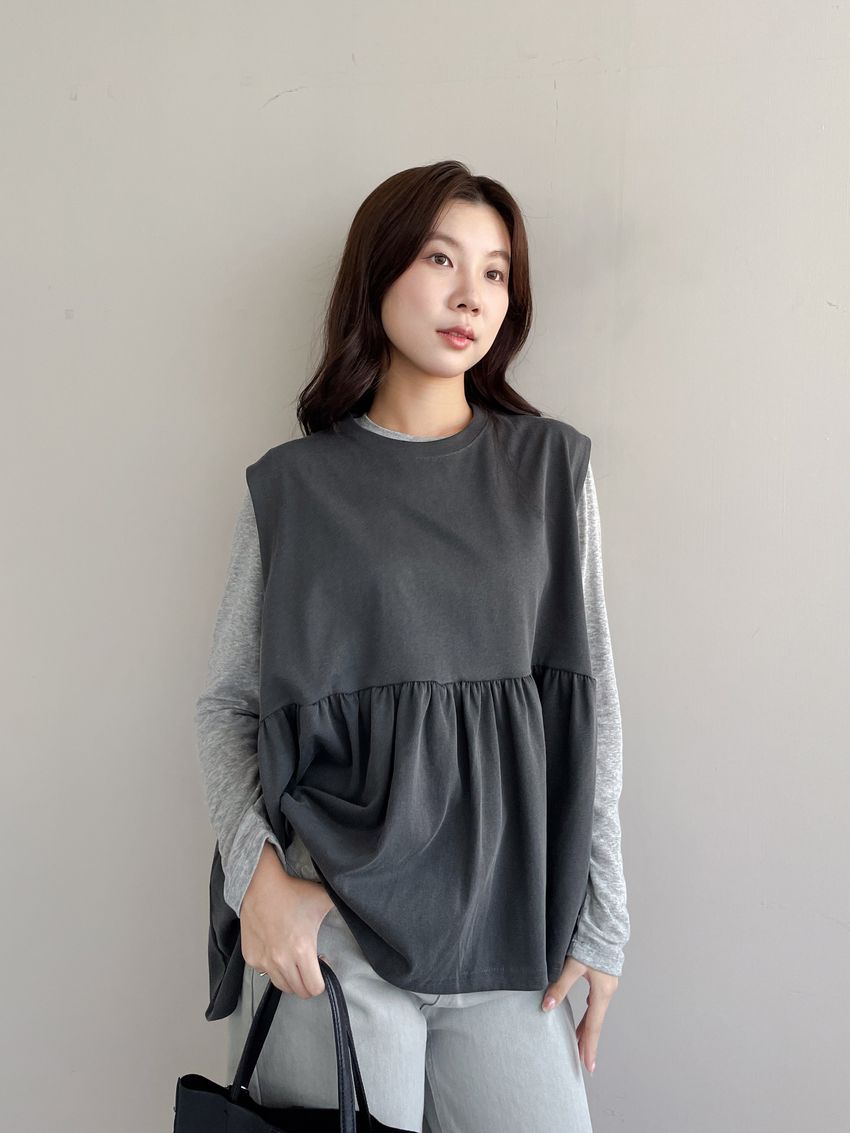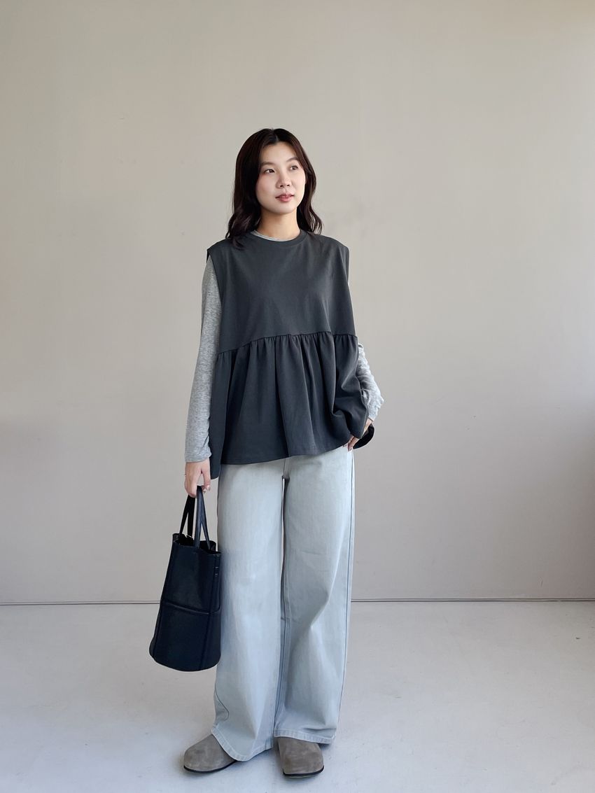 > 寬袖攏傘擺娃娃背心(特)