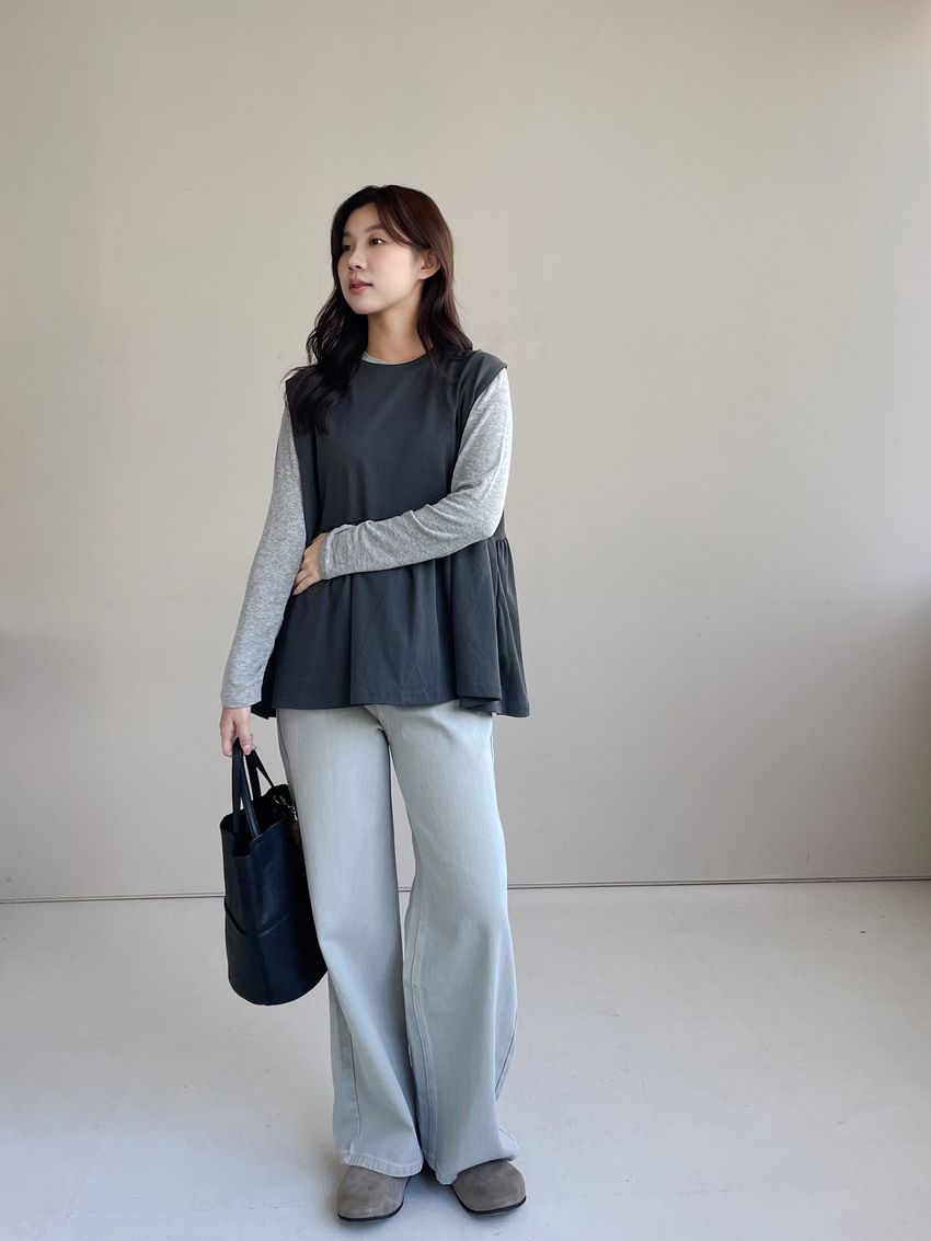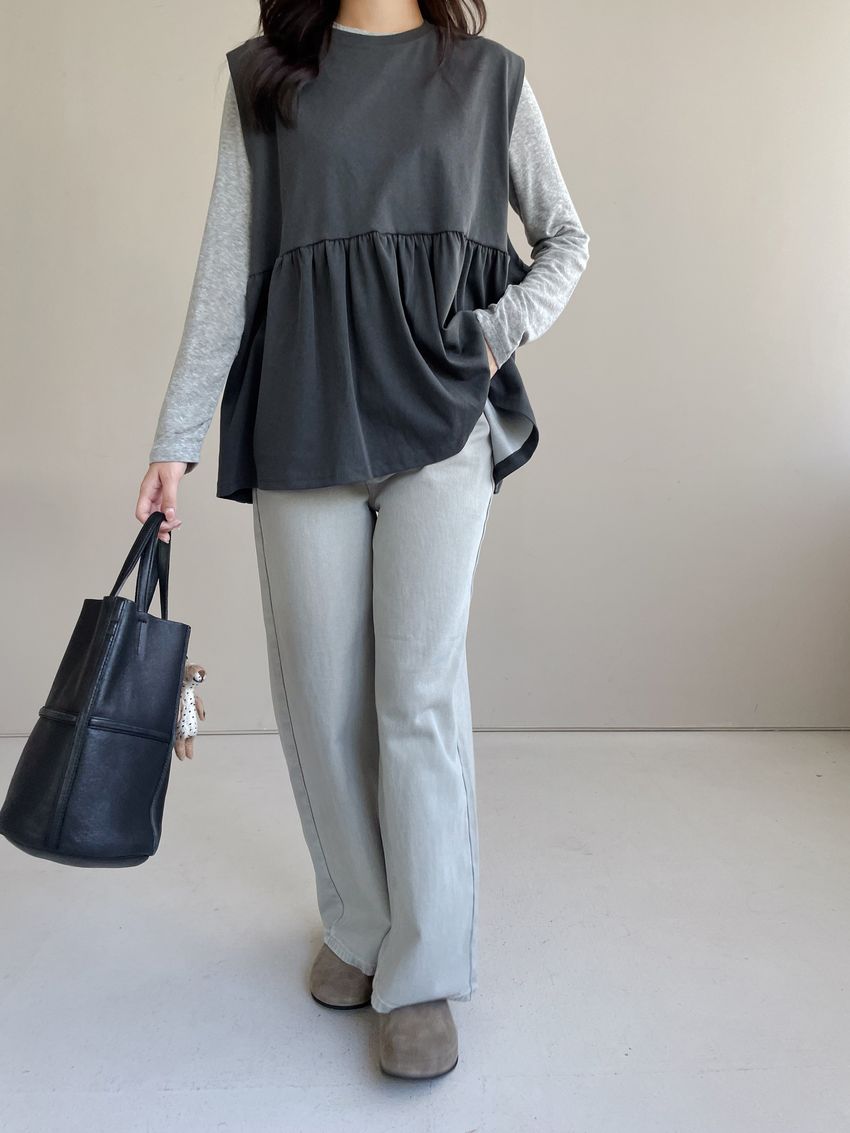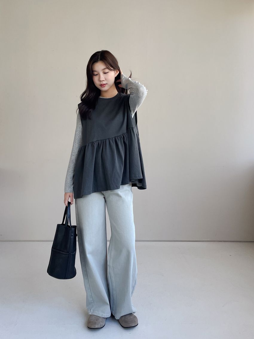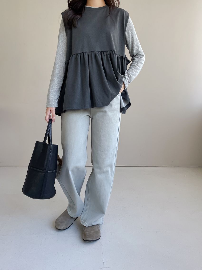 > 寬袖攏傘擺娃娃背心(特)