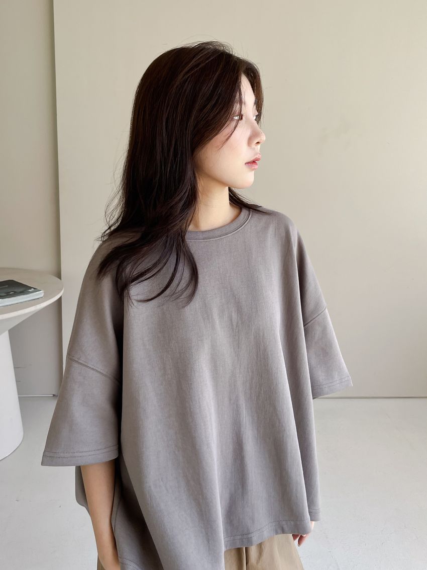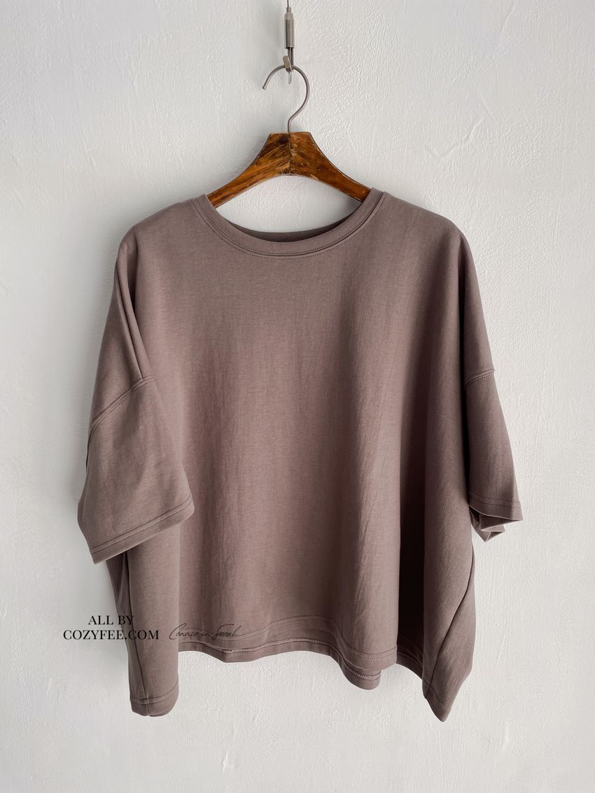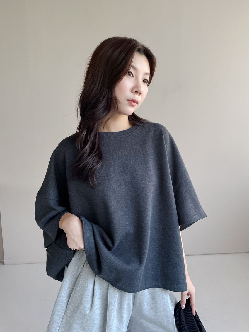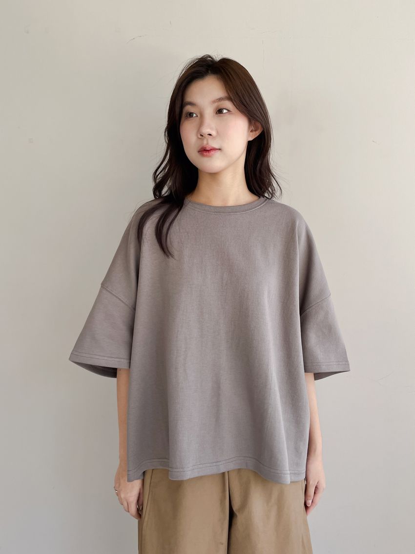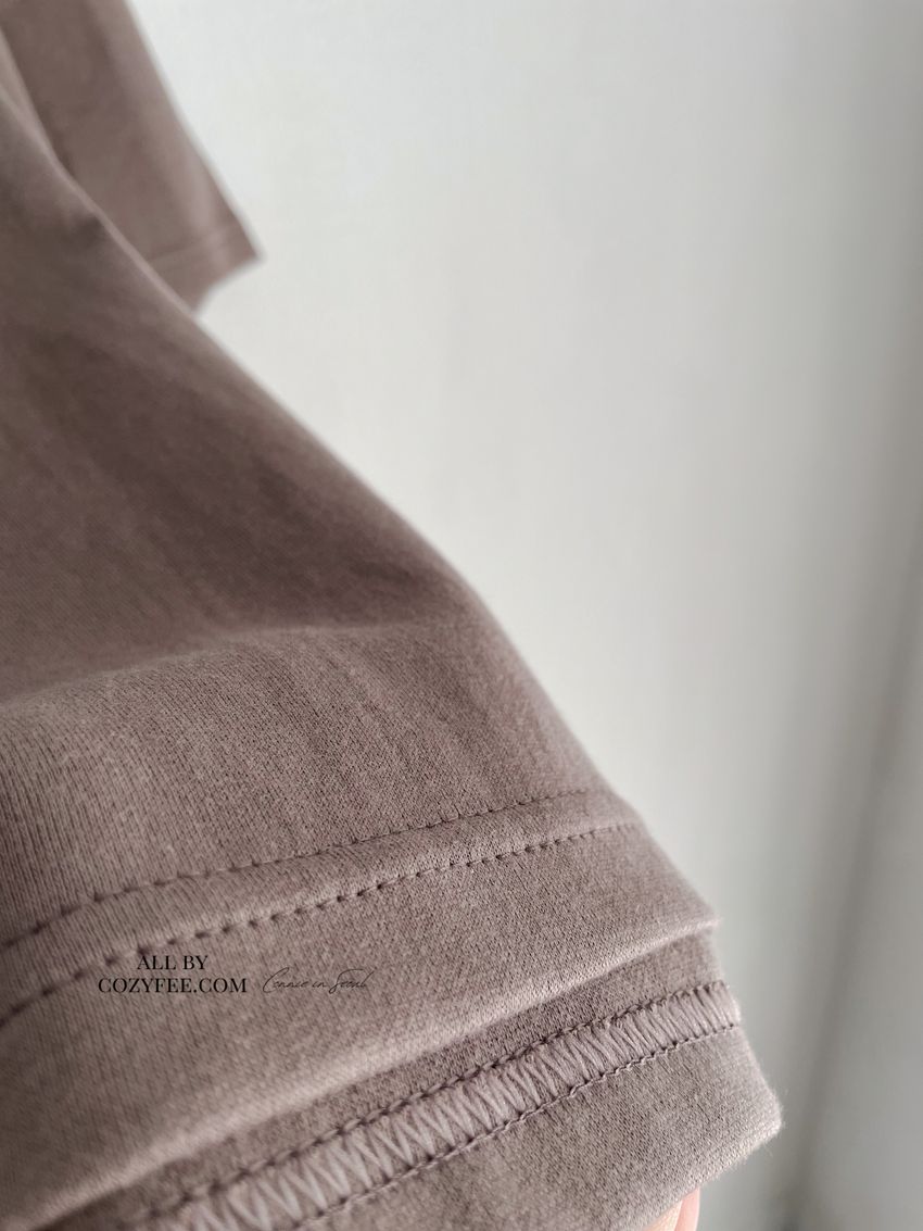 70%cotton 20%poly 10%nylon鬆弛感必備的廓形落肩T布料有挺度 穿起來有很漂亮的傘狀版型特別要推薦他的袖子袖口的長度穿起來有前短後長的設計穿起來前段手臂會露出更多肌膚 視覺上會更加顯瘦!肩線做雙壓線設計 讓整體版型更有挺度雖然是素T 但細節滿滿墨灰色 / 深可可咖色model / Yen - 159cm / 44kg 腰24 臀34