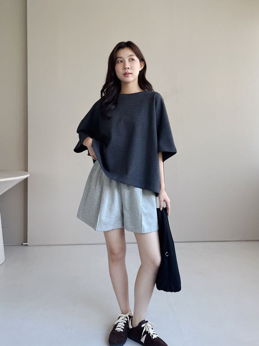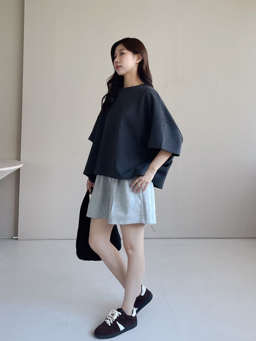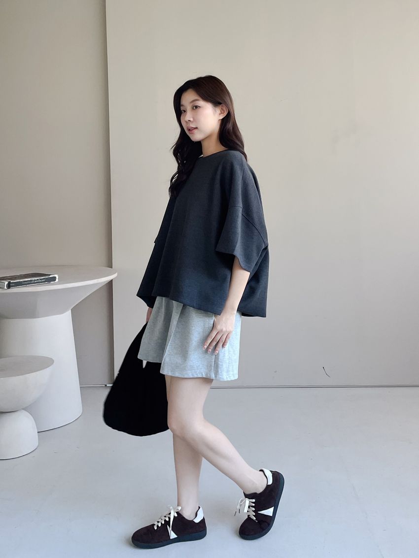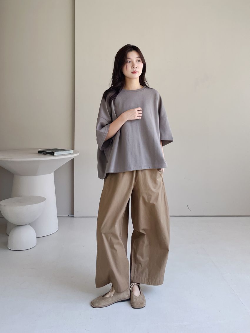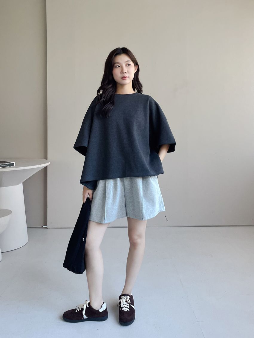 70%cotton 20%poly 10%nylon鬆弛感必備的廓形落肩T布料有挺度 穿起來有很漂亮的傘狀版型特別要推薦他的袖子袖口的長度穿起來有前短後長的設計穿起來前段手臂會露出更多肌膚 視覺上會更加顯瘦!肩線做雙壓線設計 讓整體版型更有挺度雖然是素T 但細節滿滿墨灰色 / 深可可咖色model / Yen - 159cm / 44kg 腰24 臀34