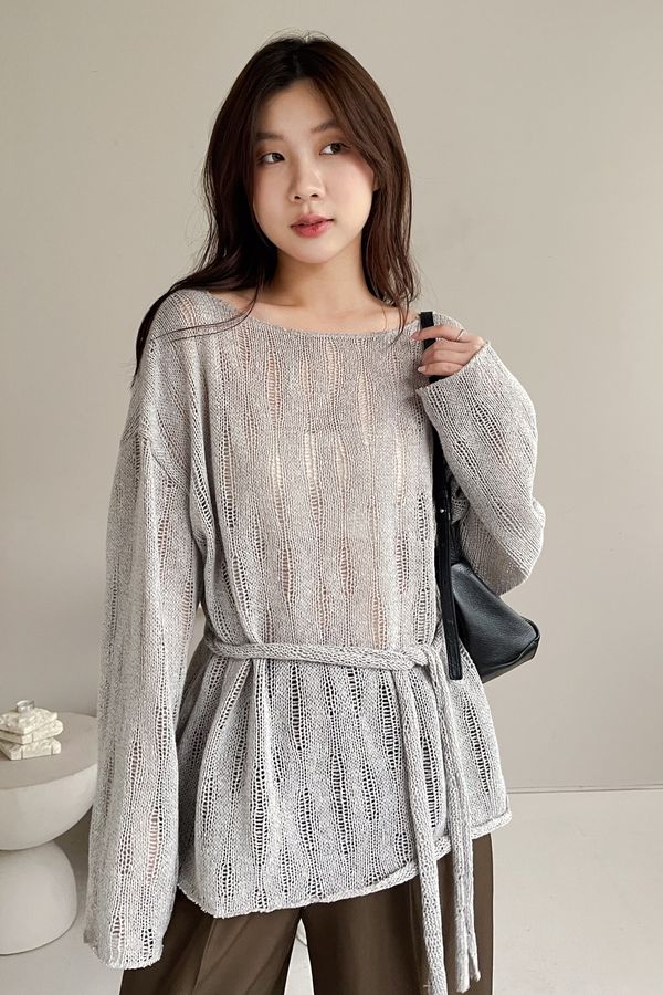 Connie推薦款!混色破損感針織衫(附綁帶)