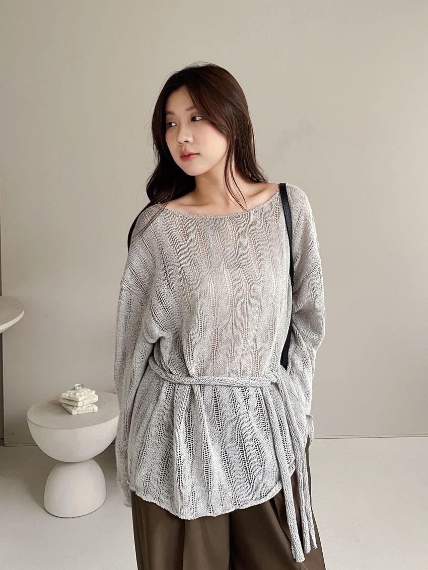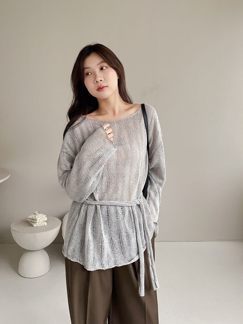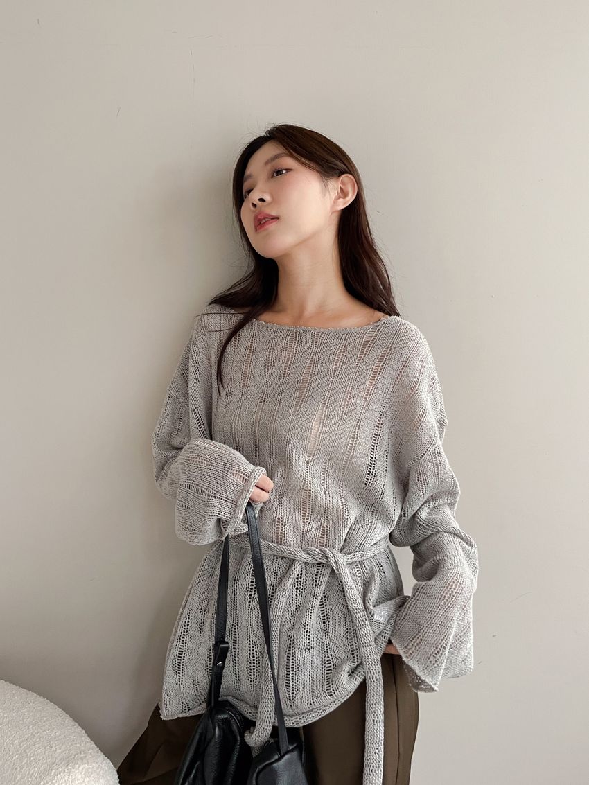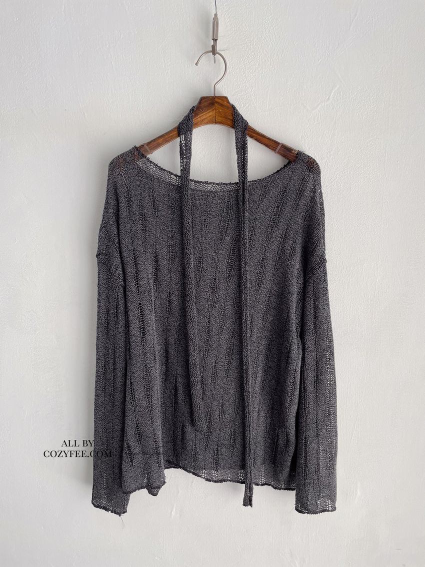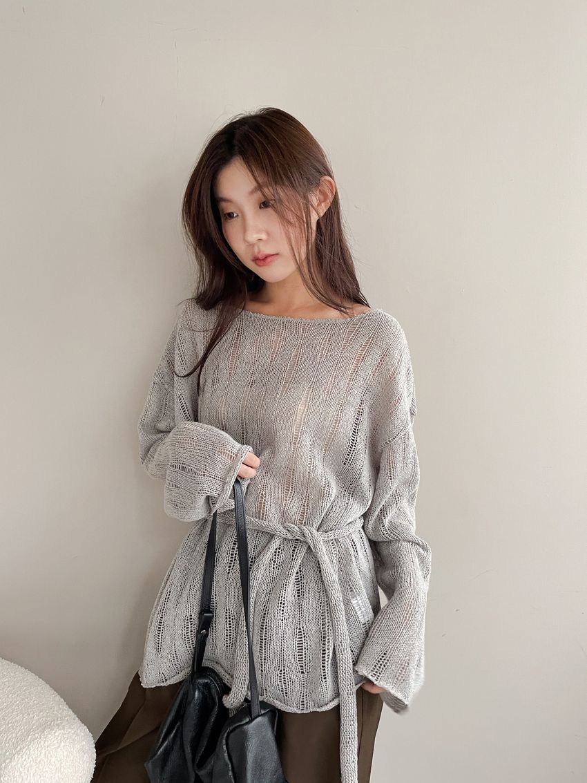 > Connie推薦款!混色破損感針織衫(附綁帶)(直播款)