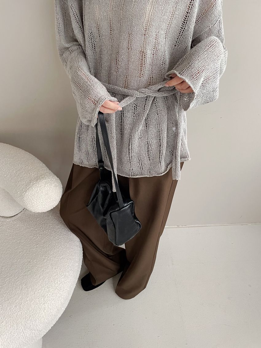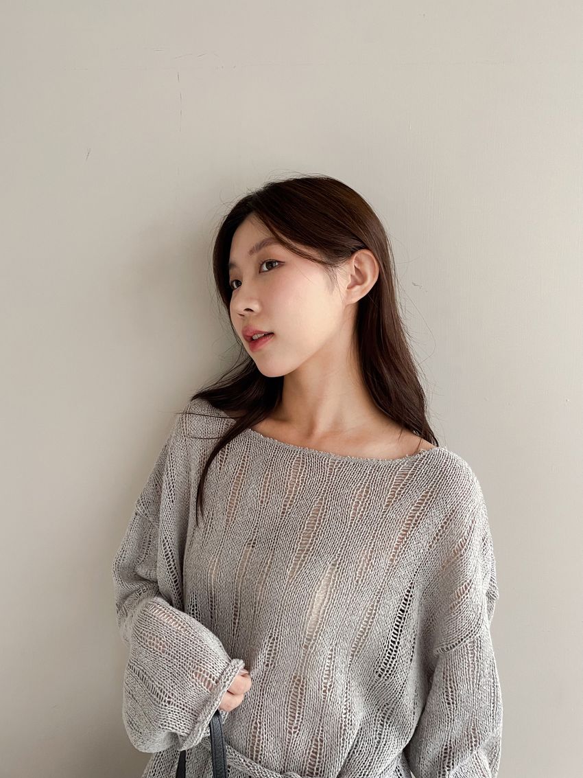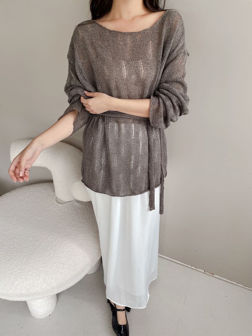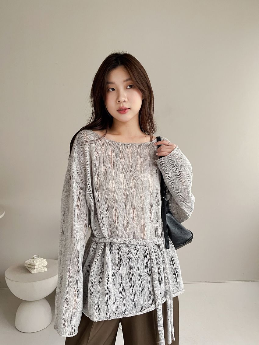 > Connie推薦款!混色破損感針織衫(附綁帶)(直播款)