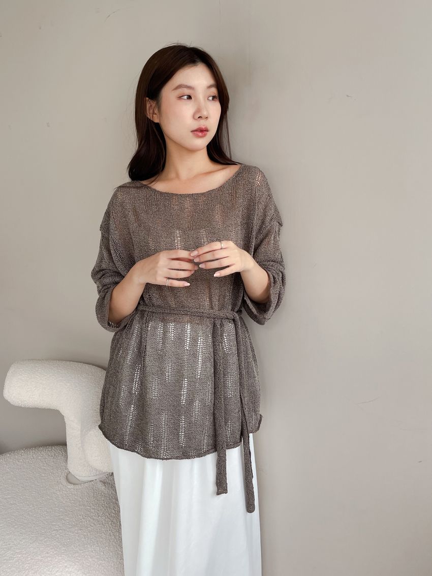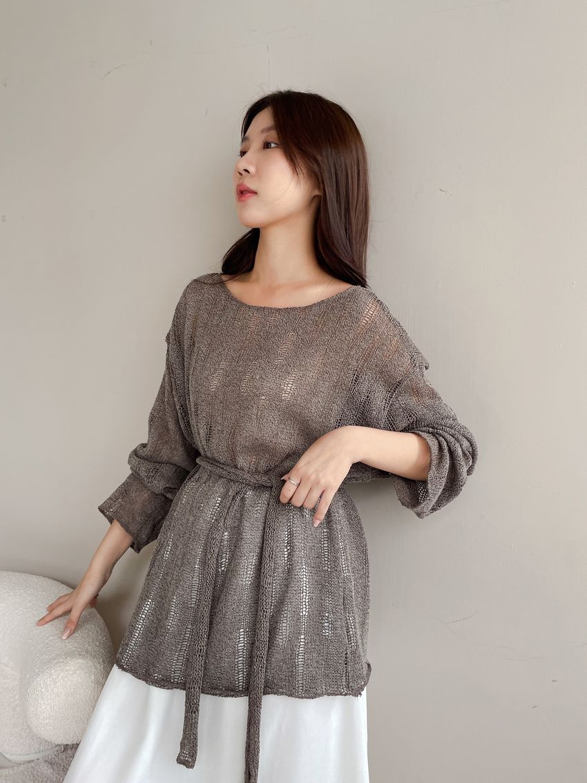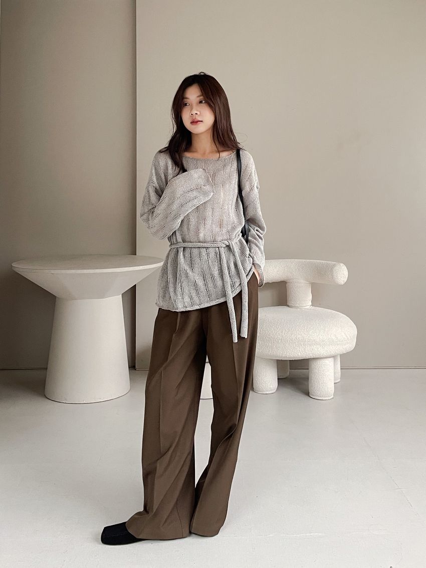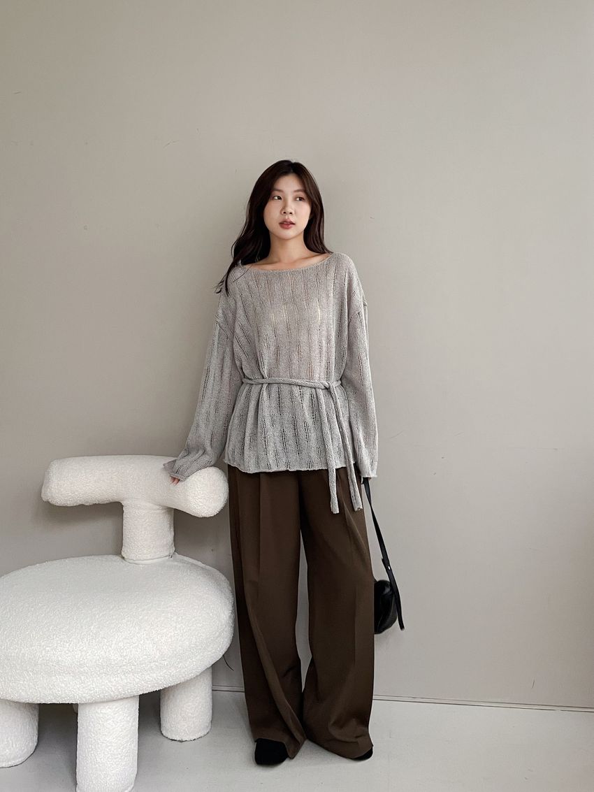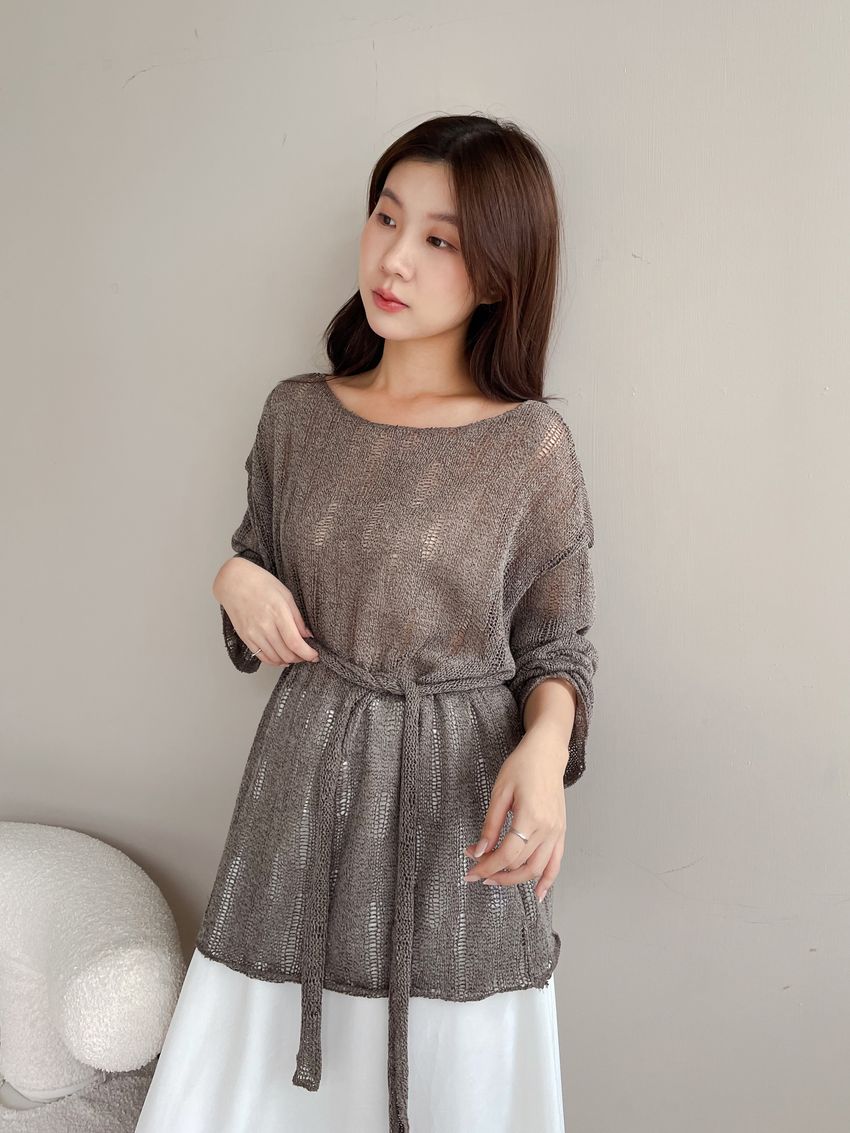 > Connie推薦款!混色破損感針織衫(附綁帶)(直播款)