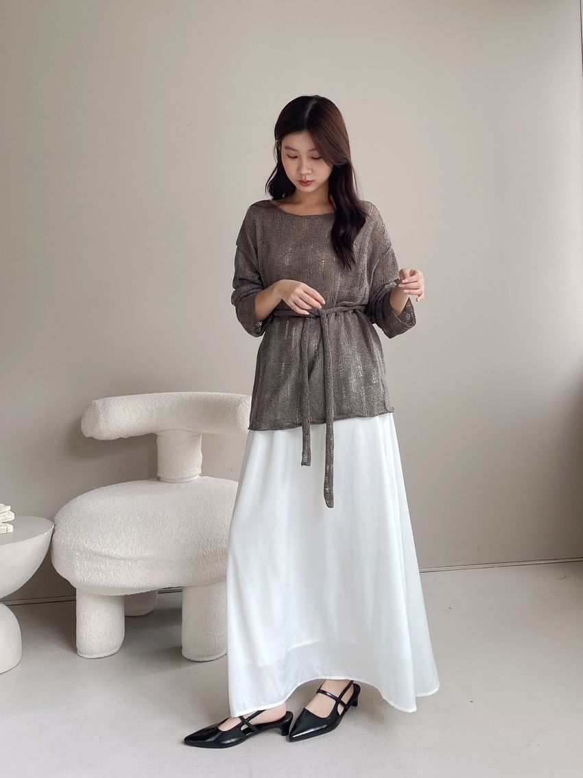 Connie推薦款!混色破損感針織衫(附綁帶)(直播款)