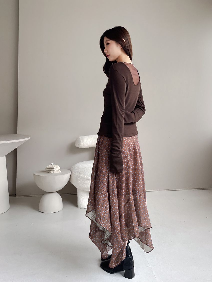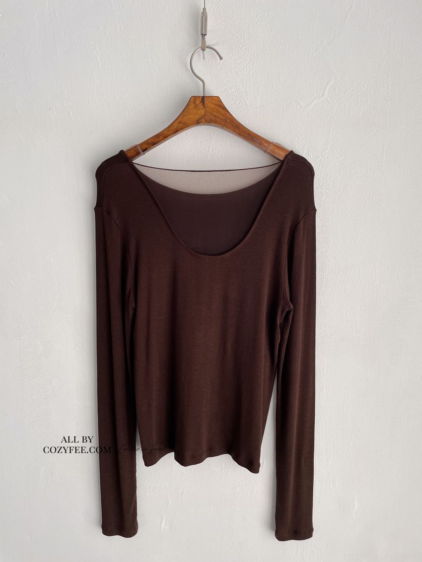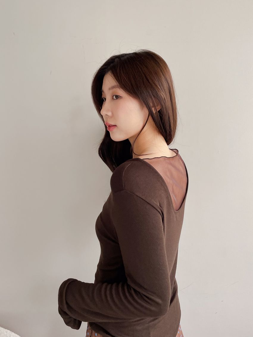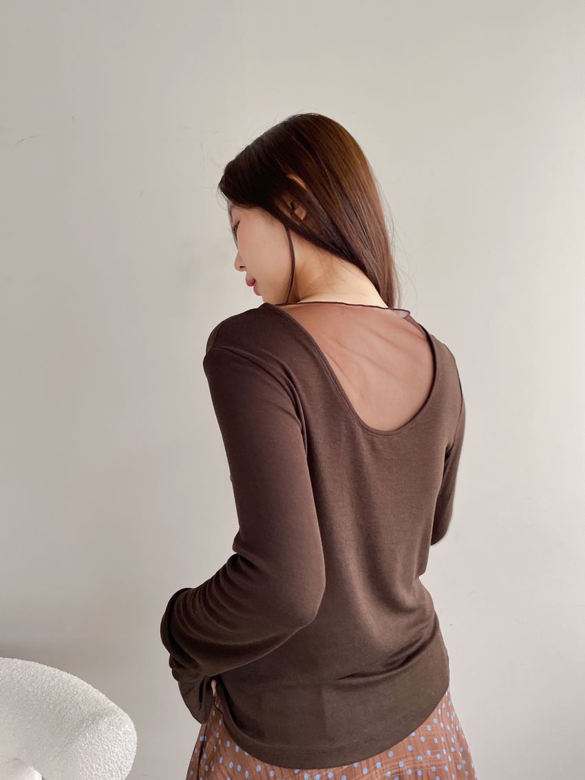 > 後U拼接透紗長T(直播款)