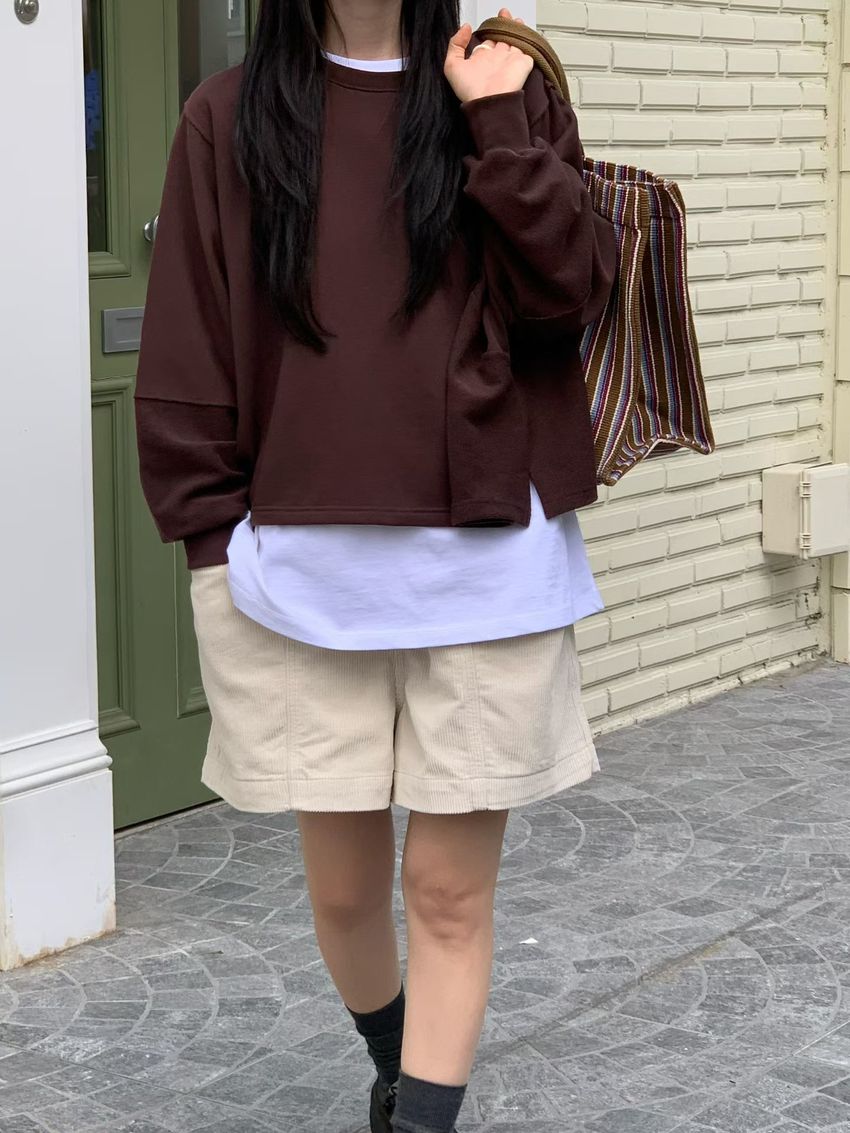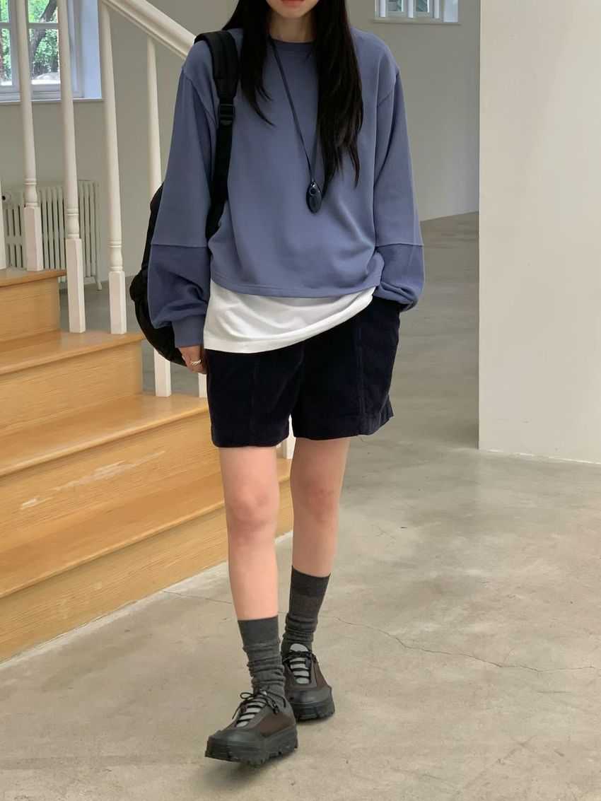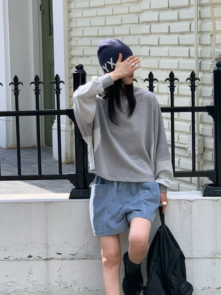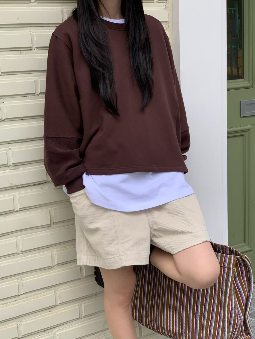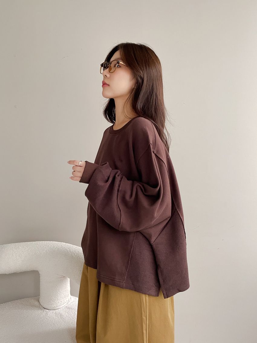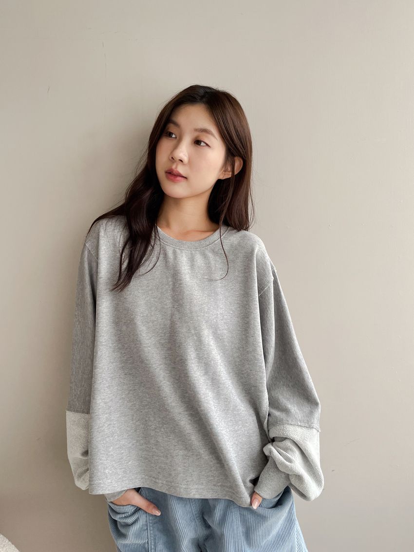 > 不收邊外縫拼接毛圈大學T(直播款)