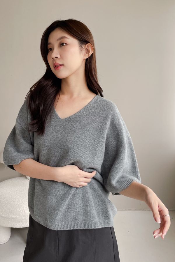 羊絨V領五分袖針織衫