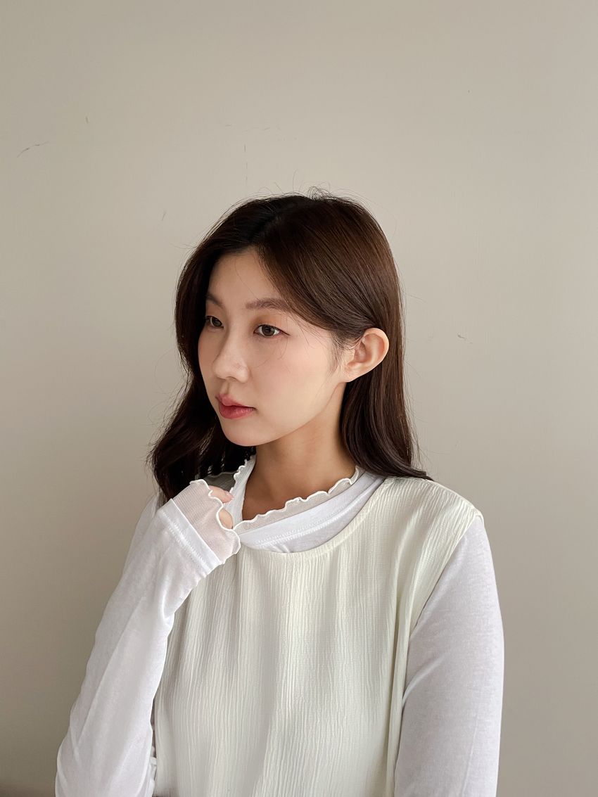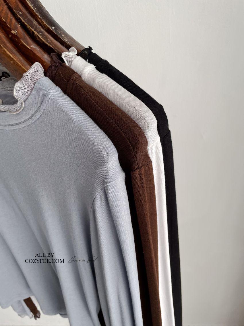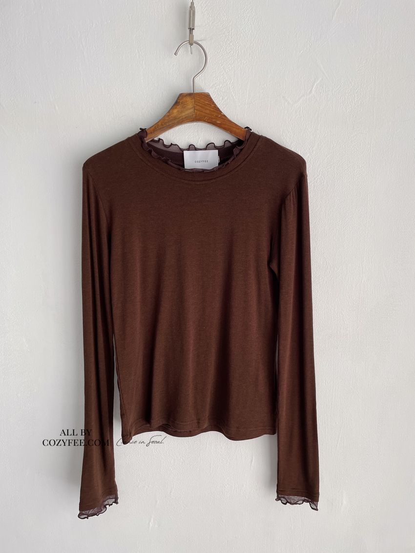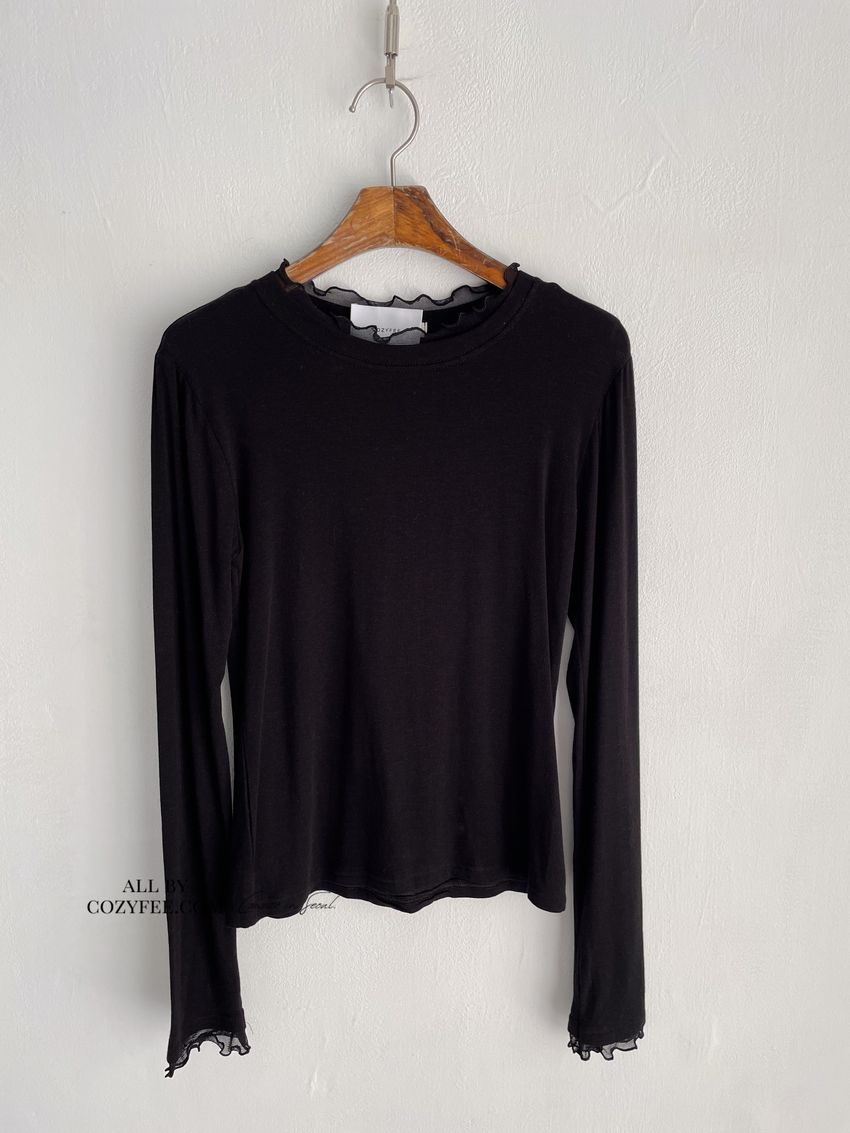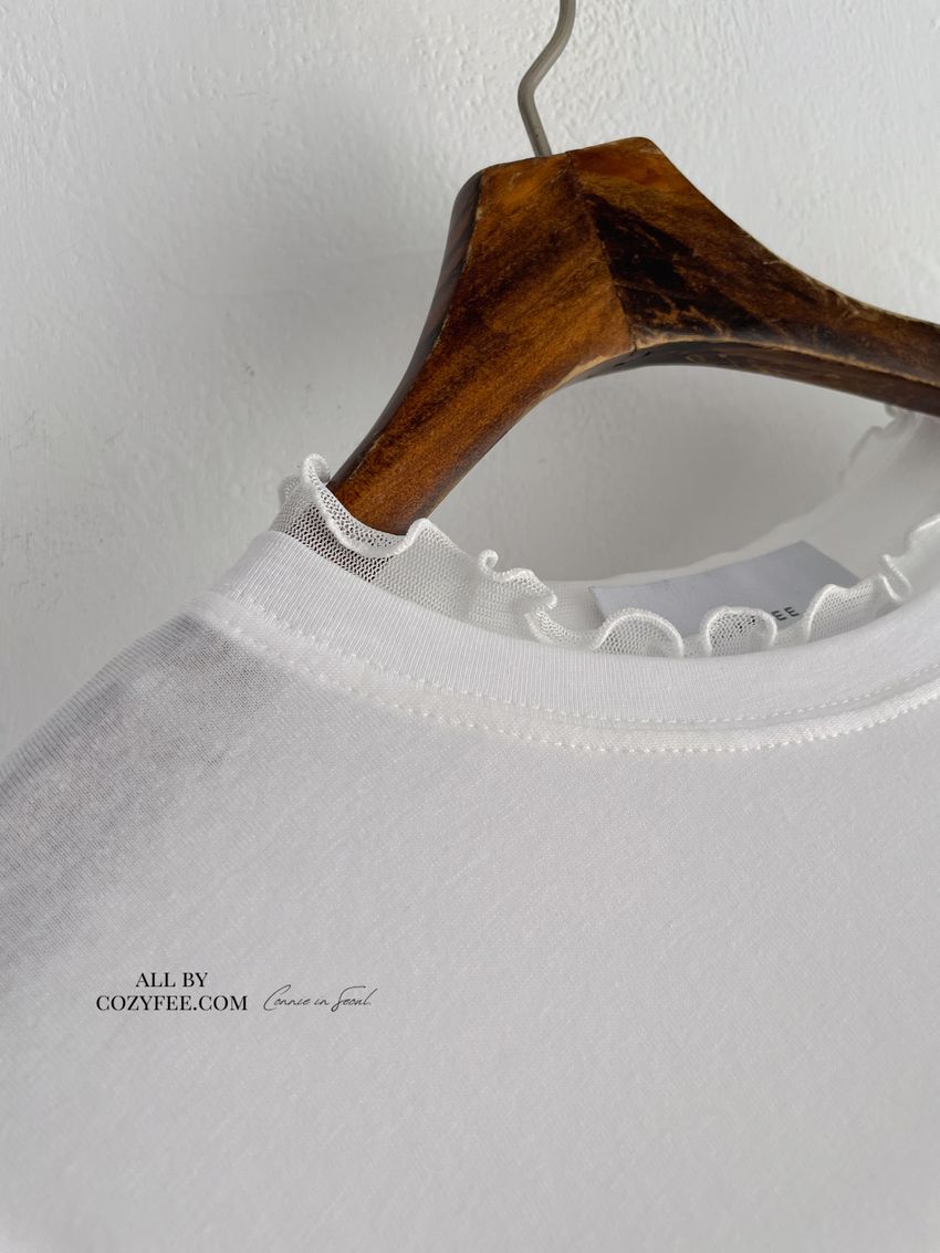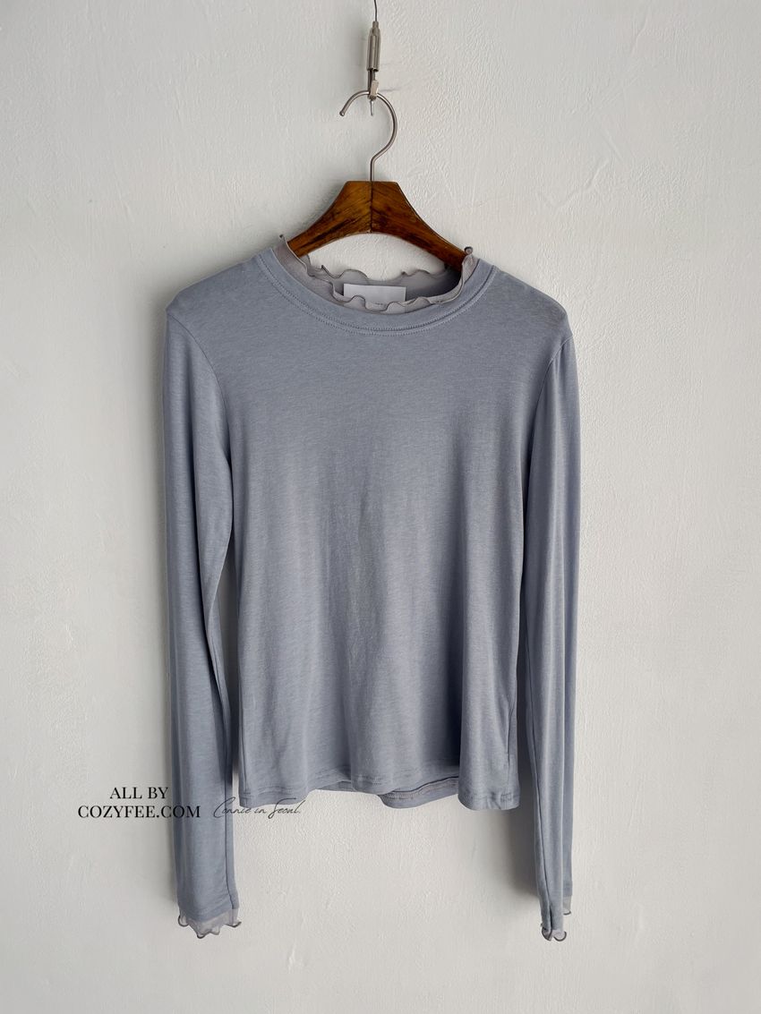 > Connie推薦款!拚接紗料捲邊天絲T(直播款)