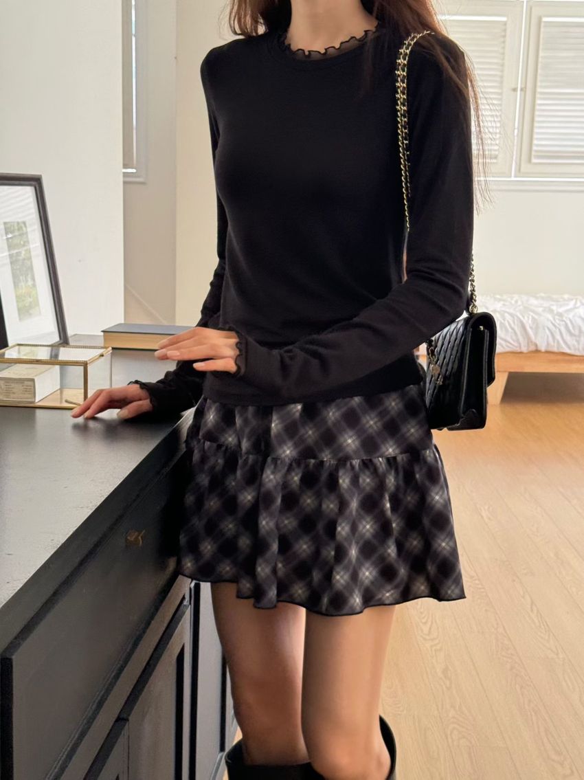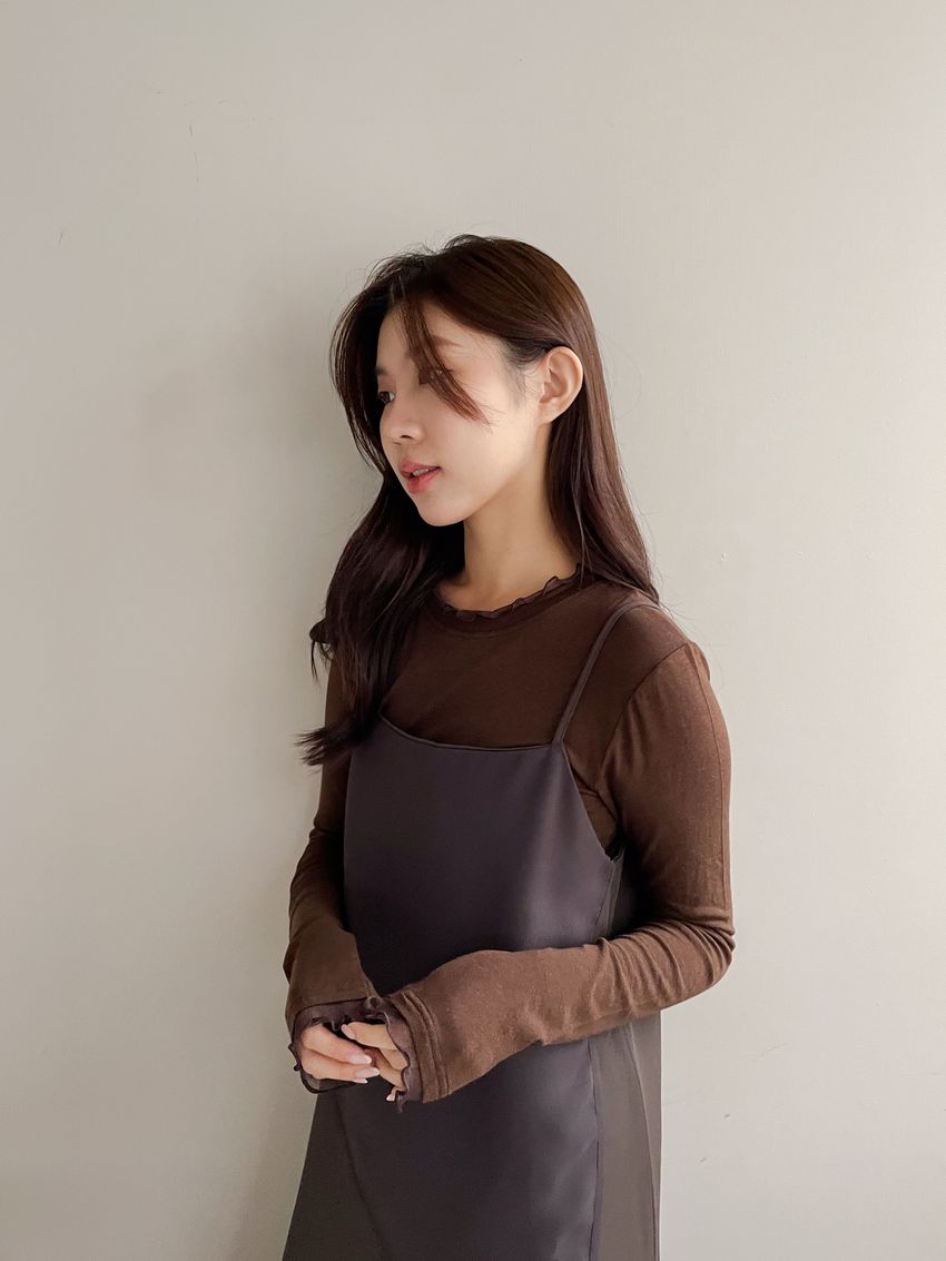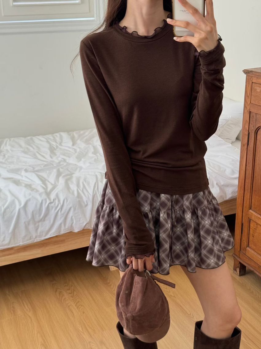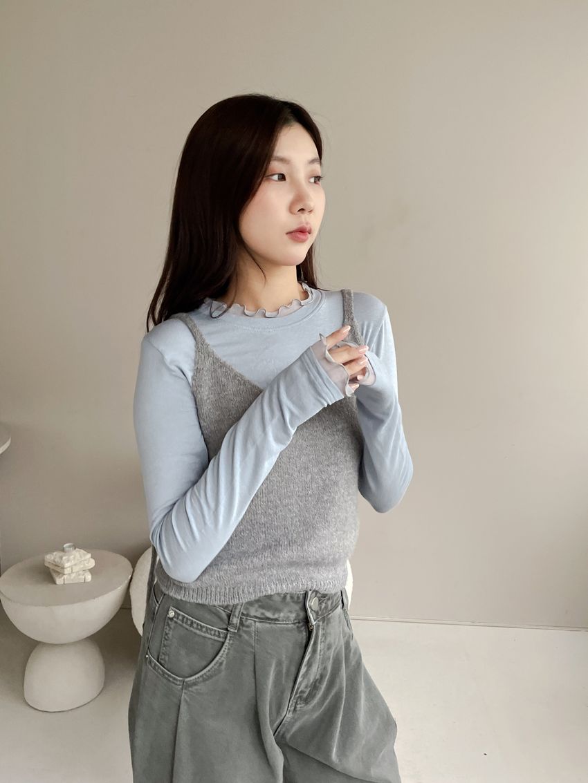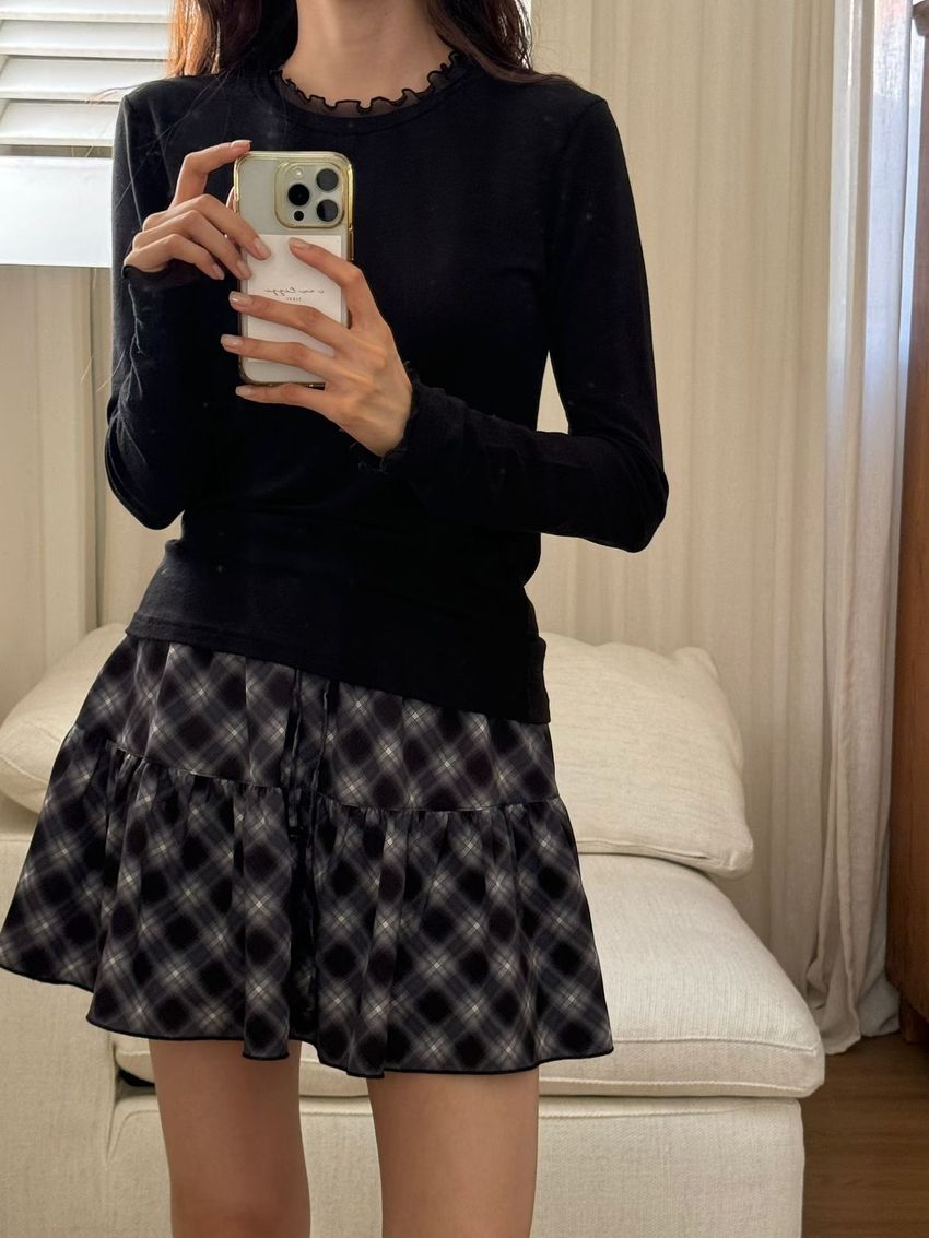 > Connie推薦款!拚接紗料捲邊天絲T(直播款)