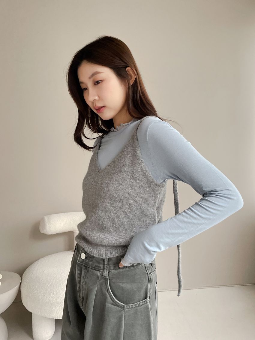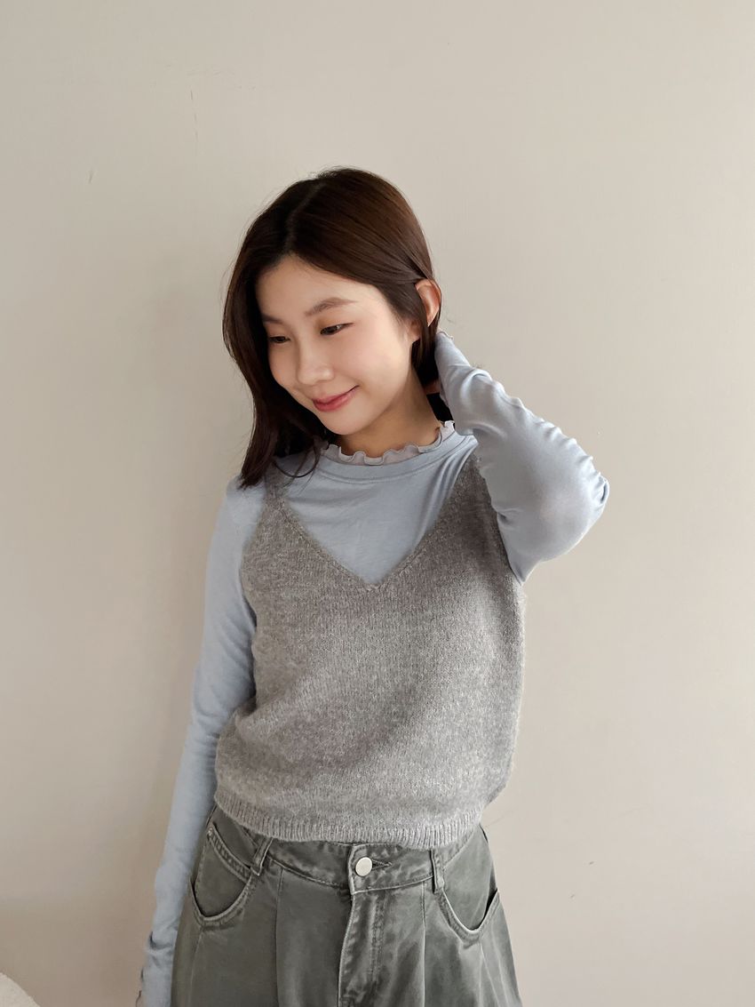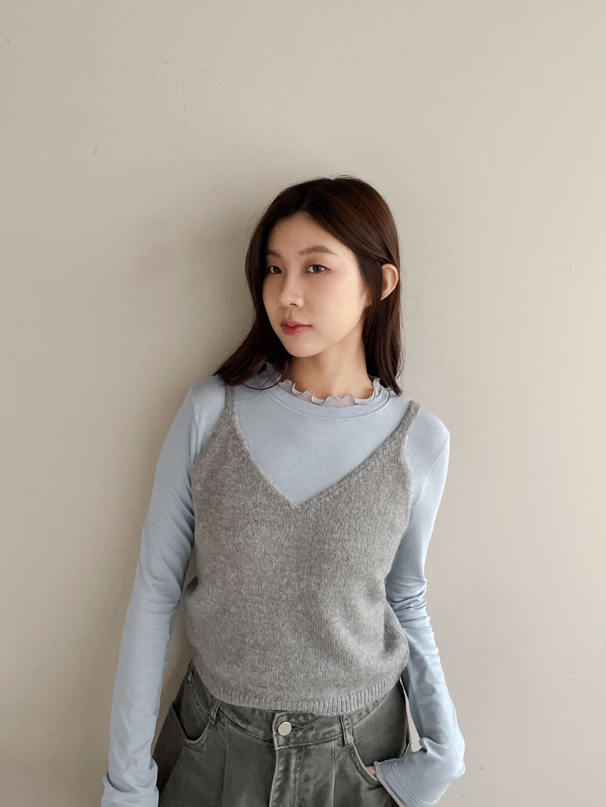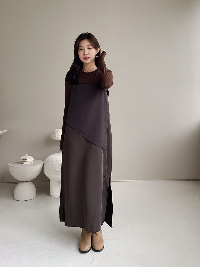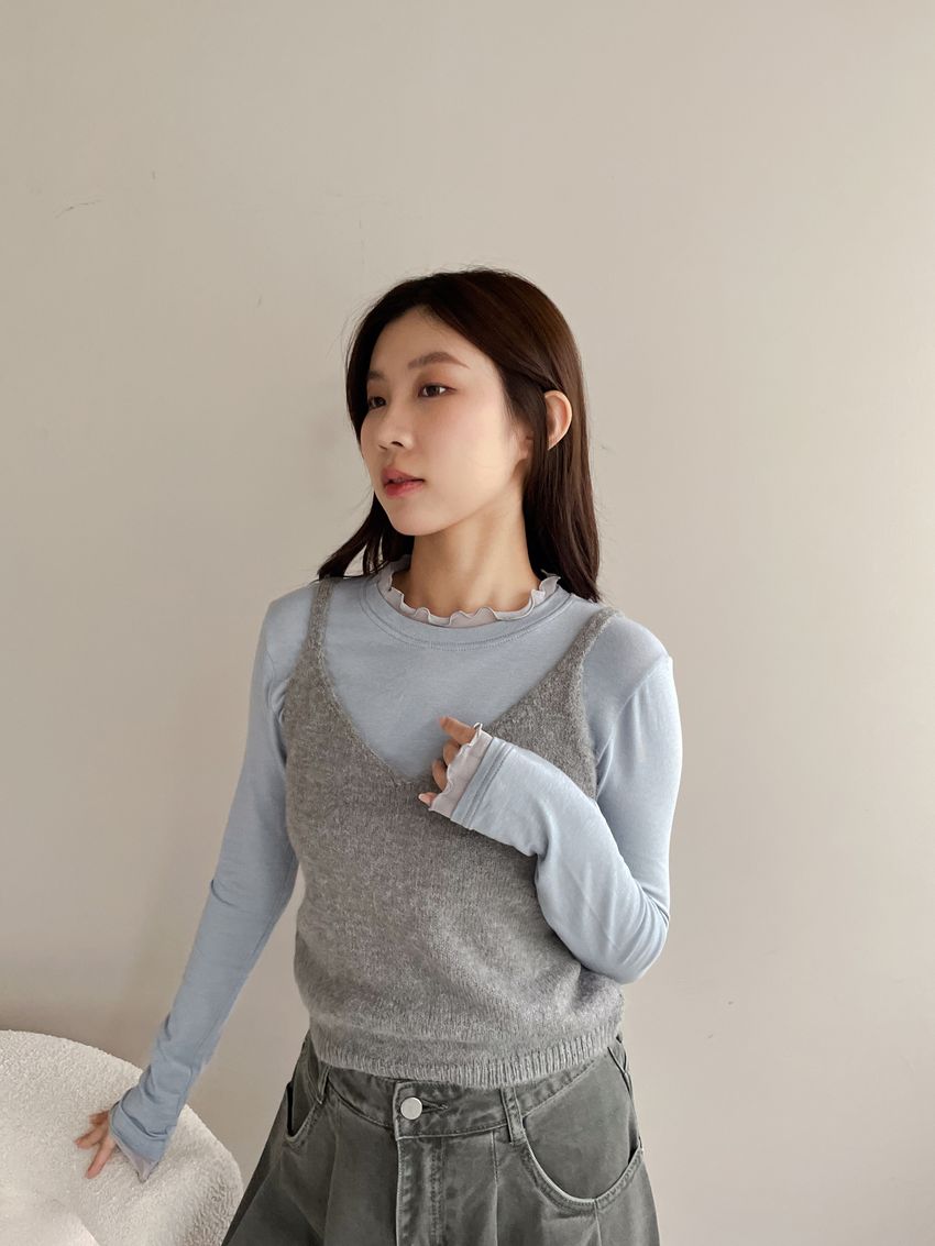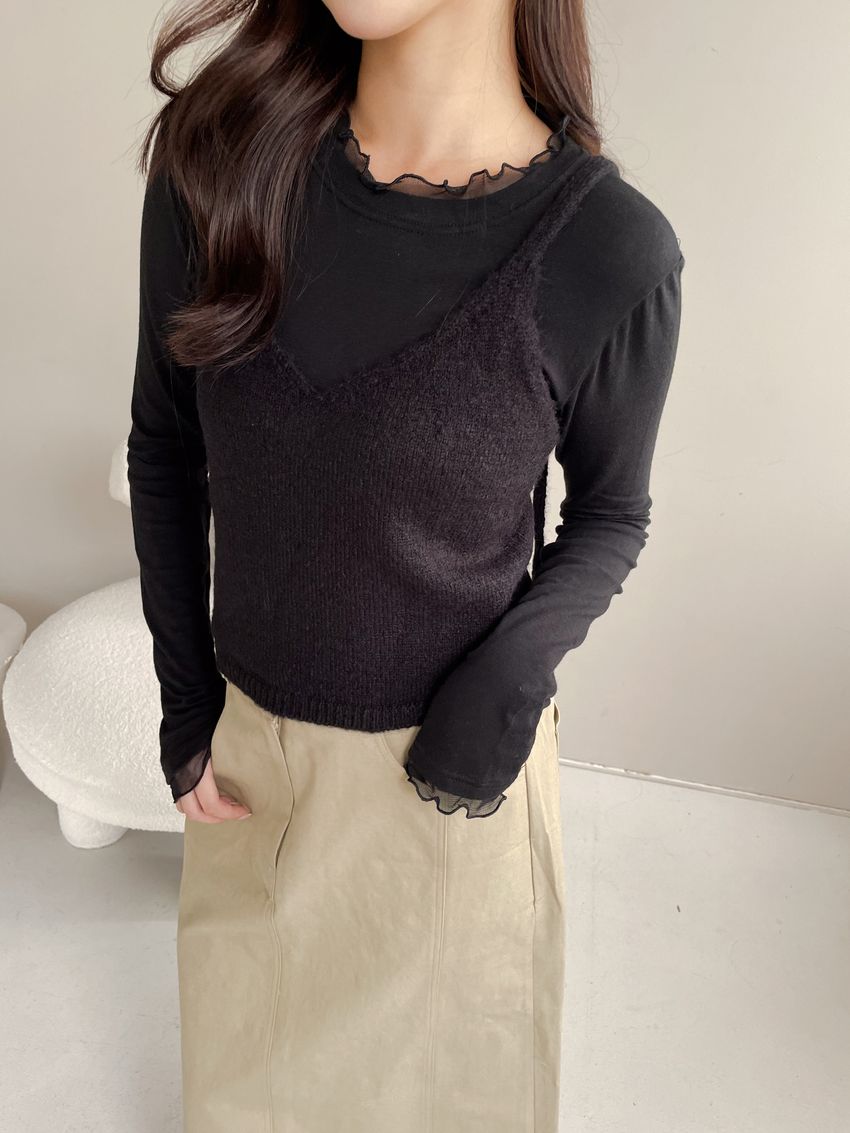 > Connie推薦款!拚接紗料捲邊天絲T(直播款)