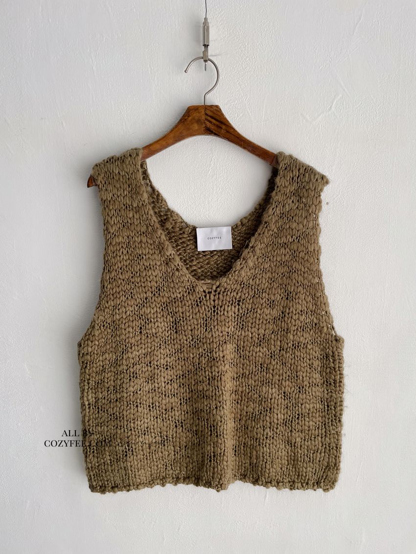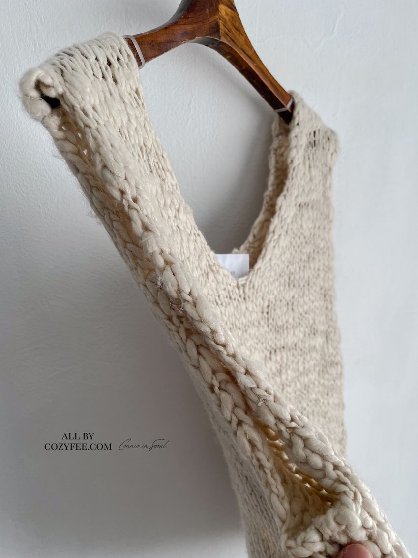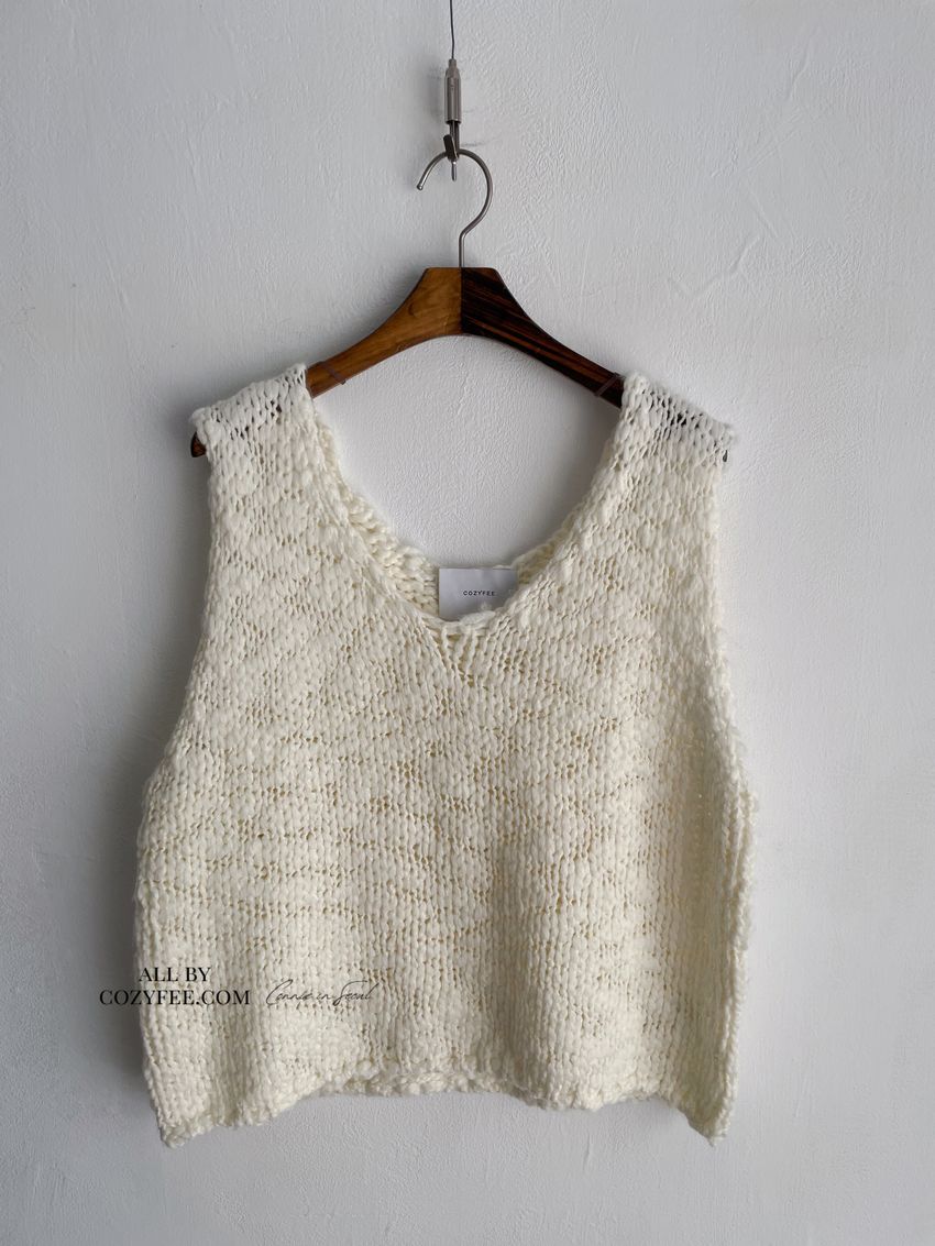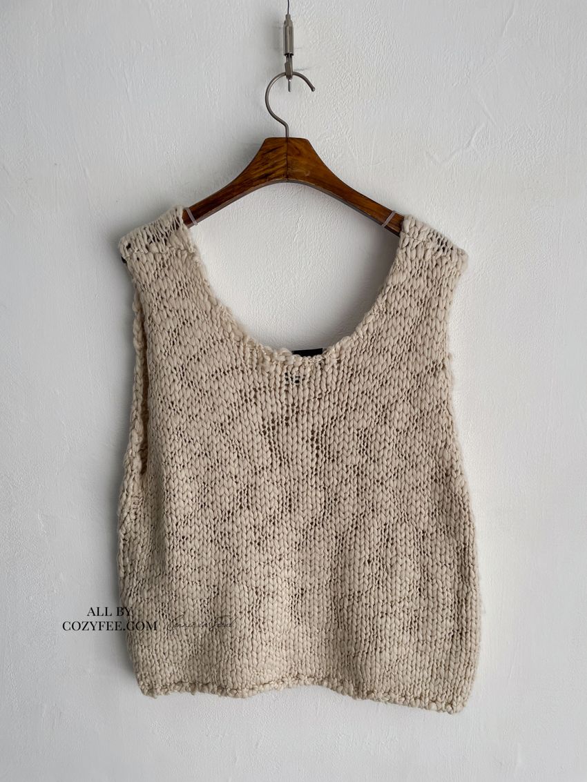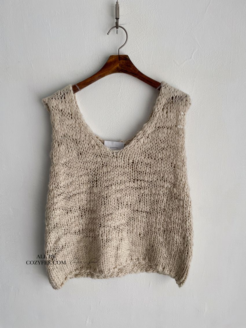 > 手工粗鉤織羊毛V領背心(直播影片)