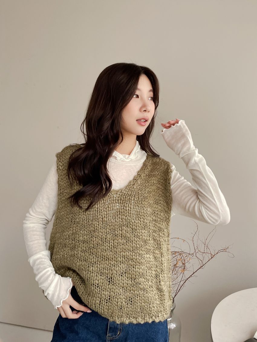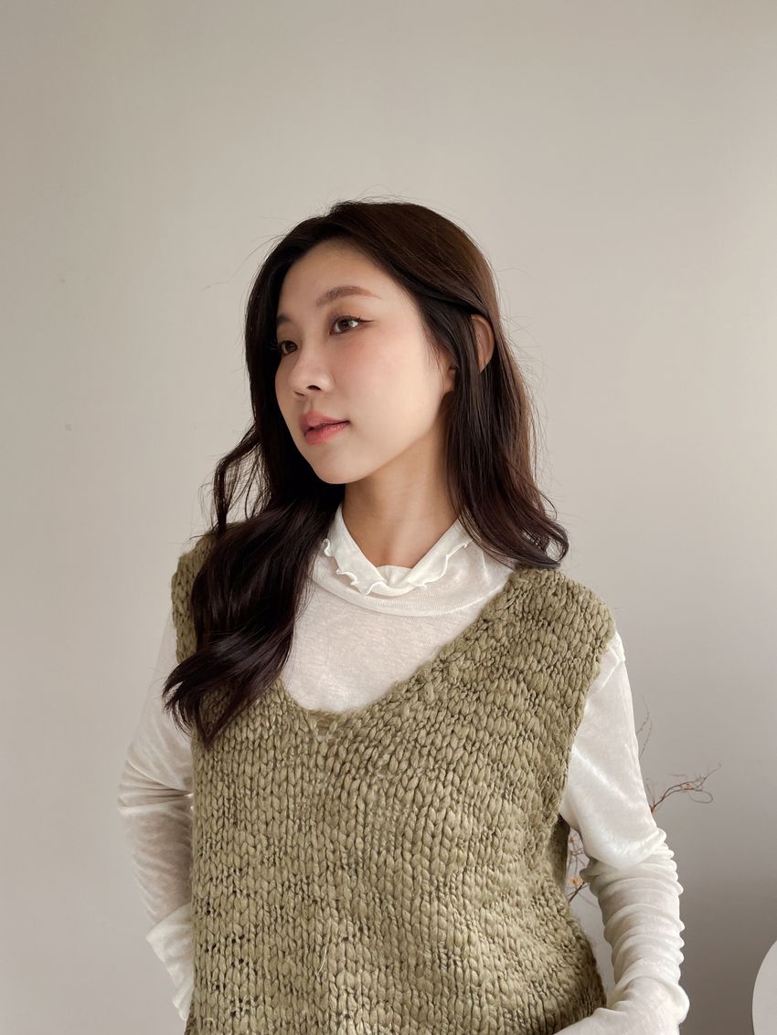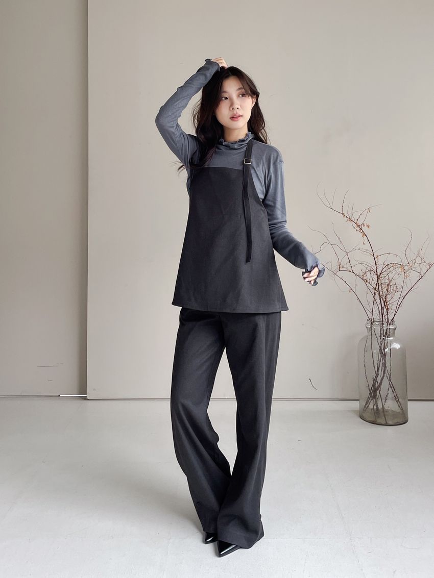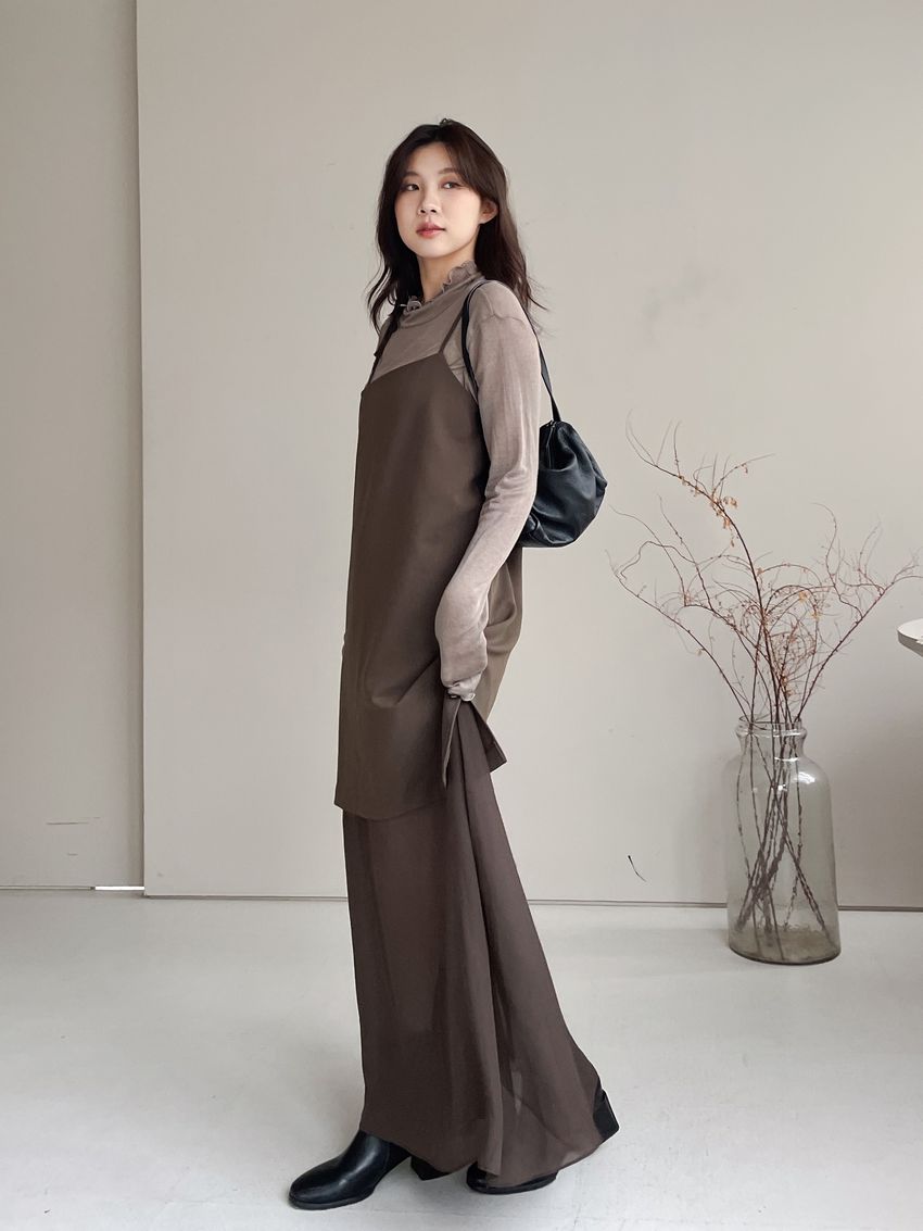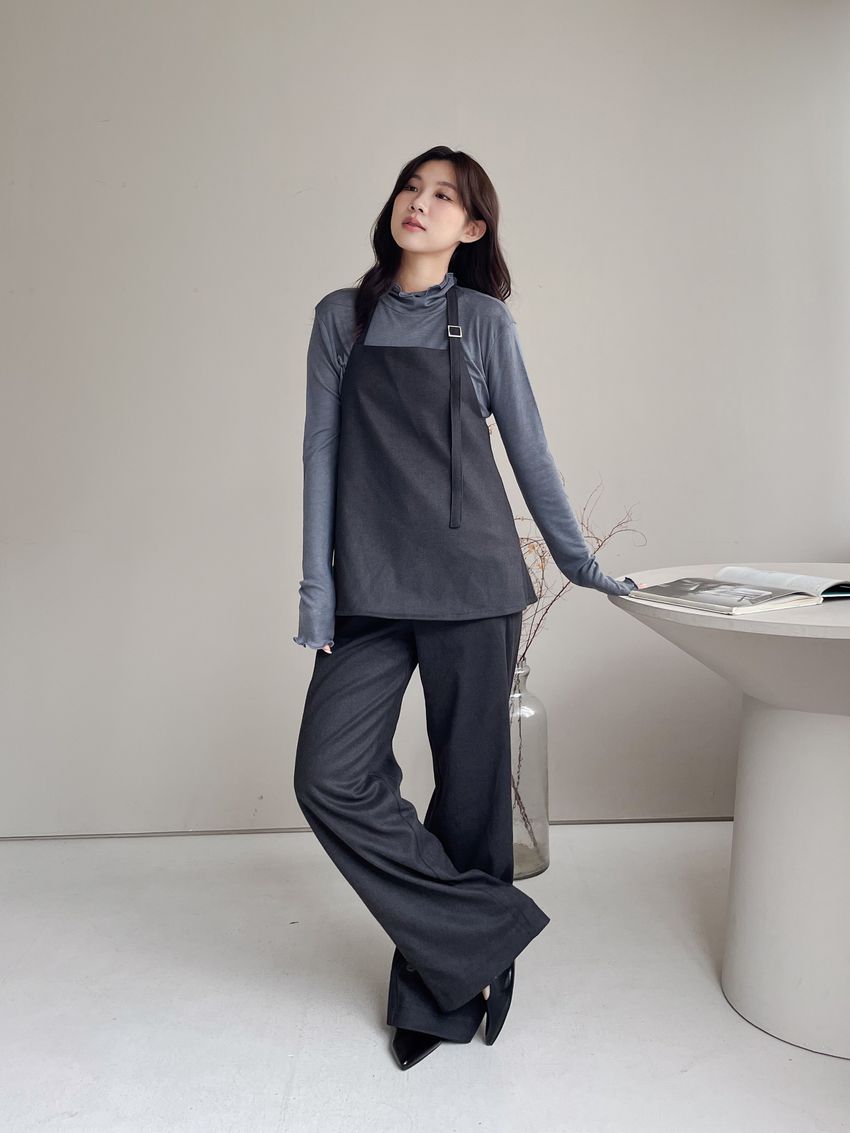 > 捲花邊軟料天絲高領長T