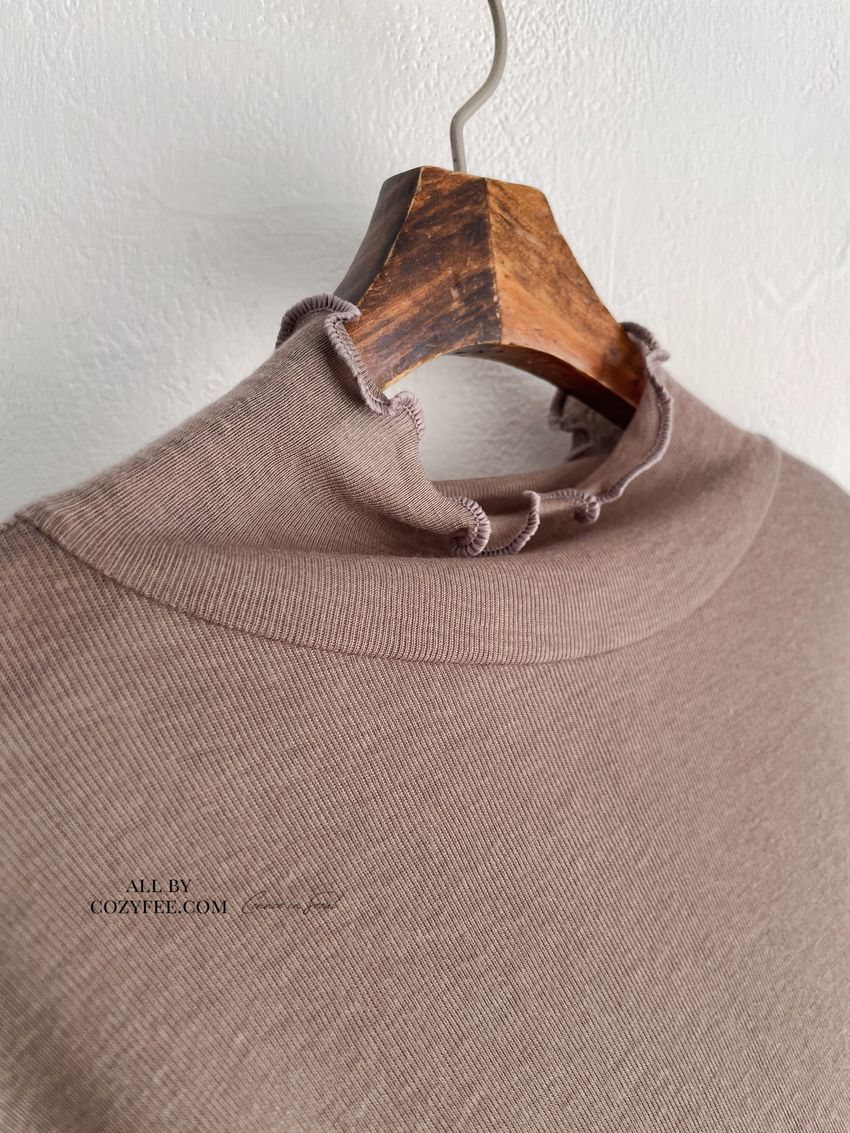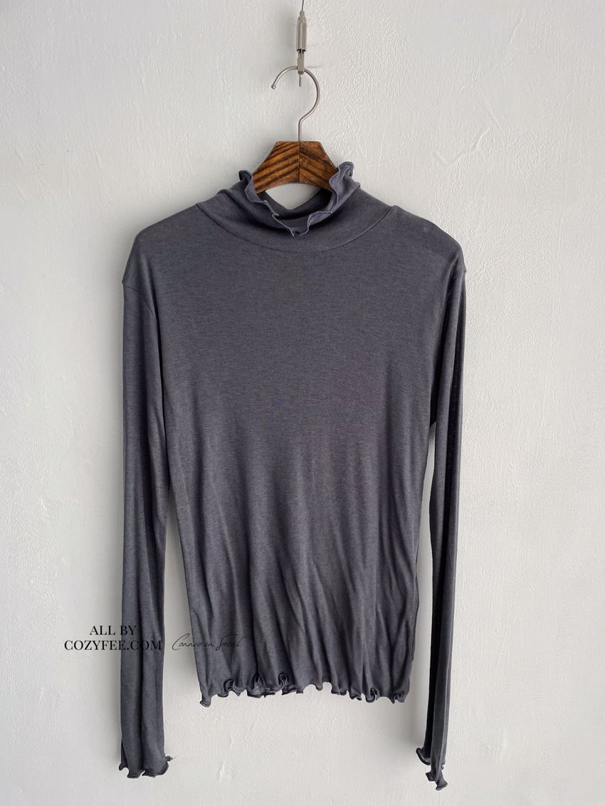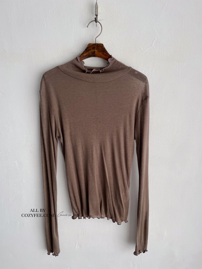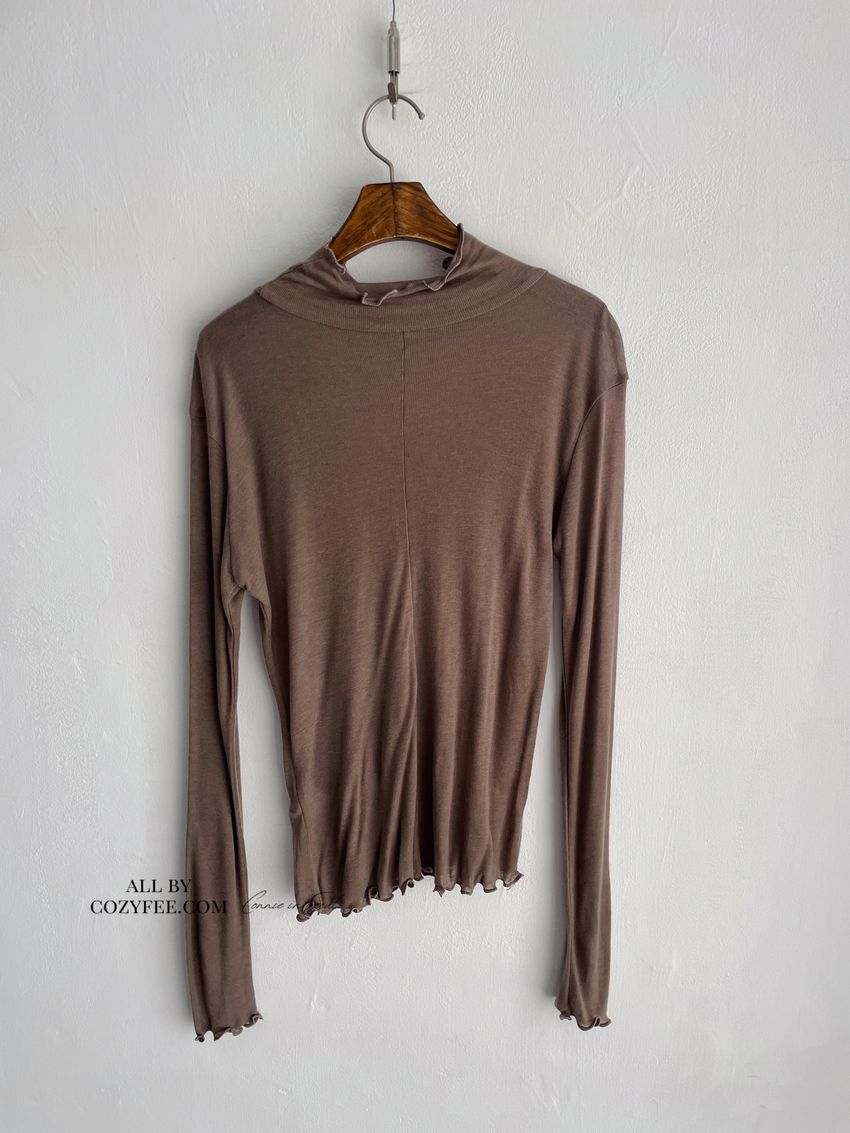 > 捲花邊軟料天絲高領長T(直播款)