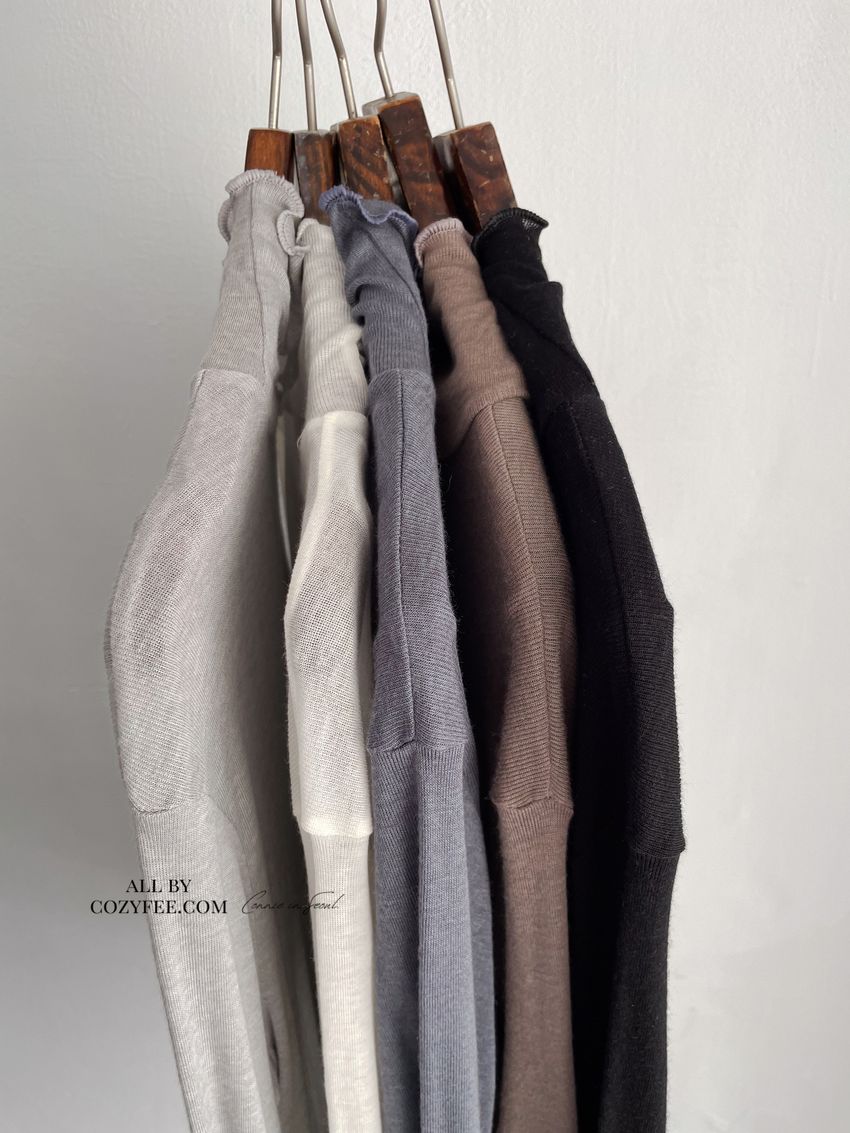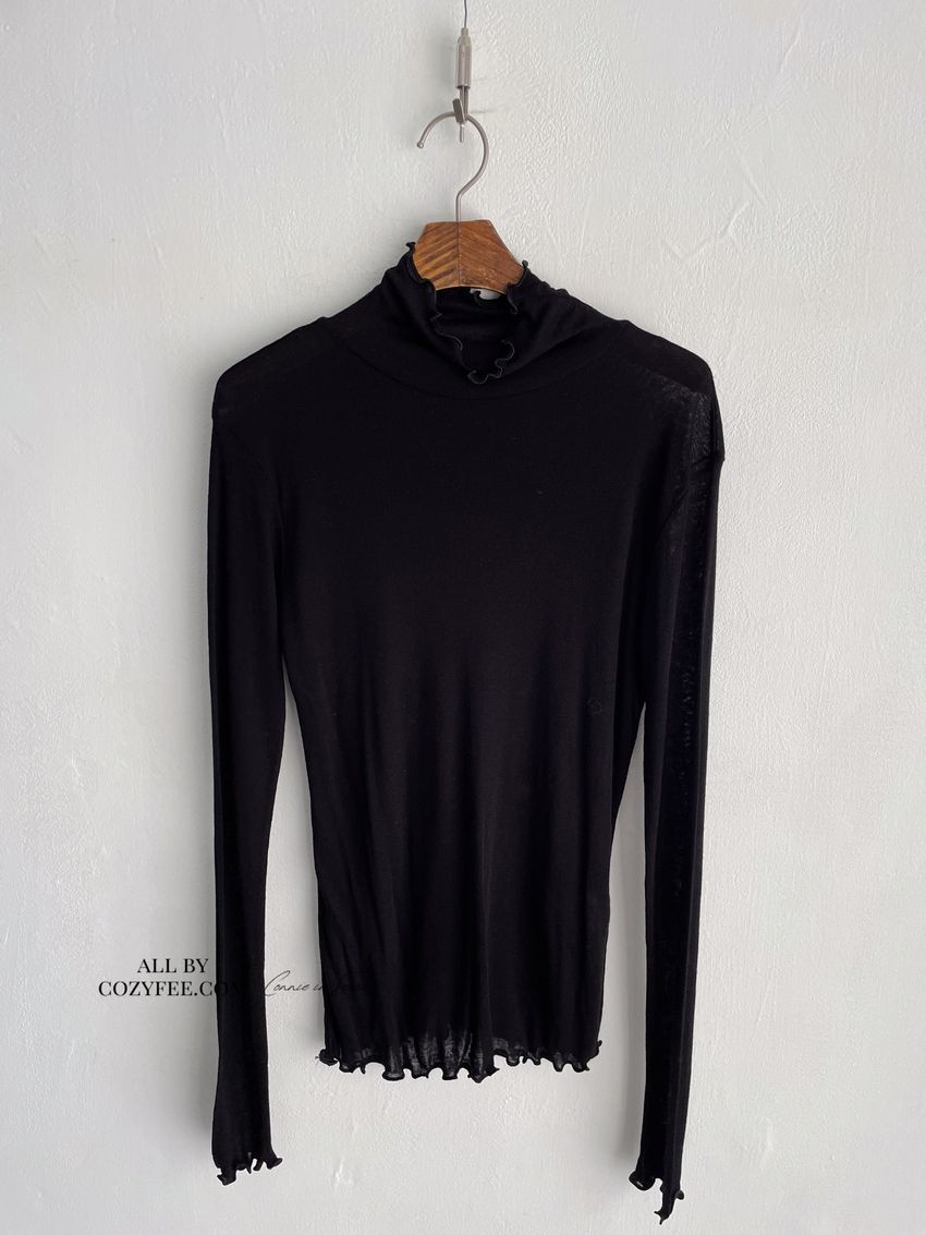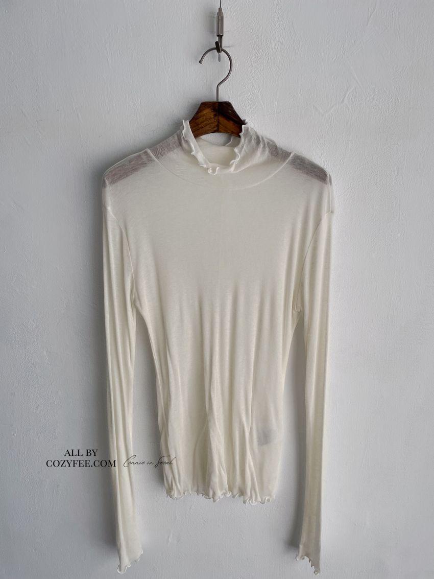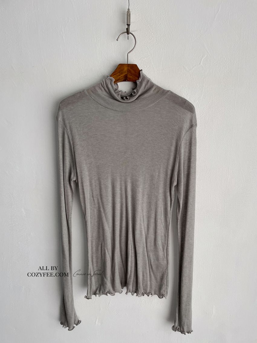 > 捲花邊軟料天絲高領長T(直播款)