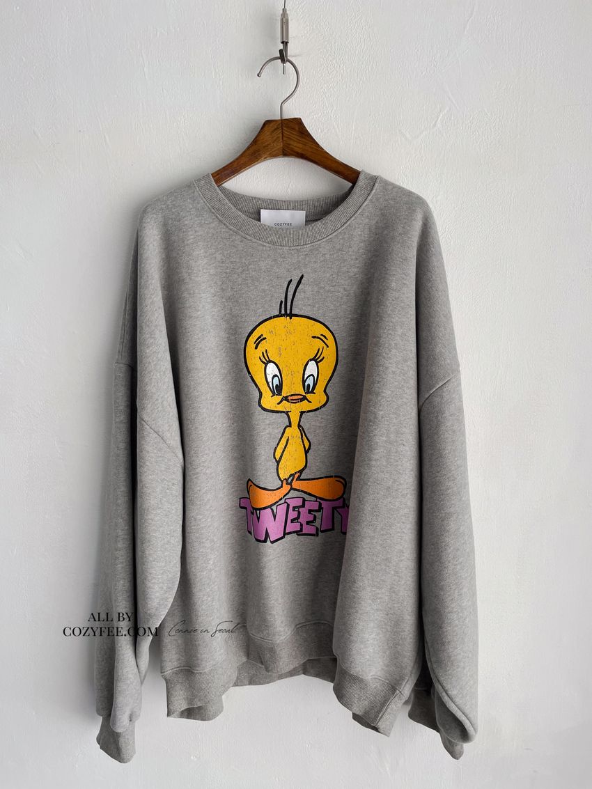 Connie推薦款!Tweety寬版刷毛大學T(直播影片)