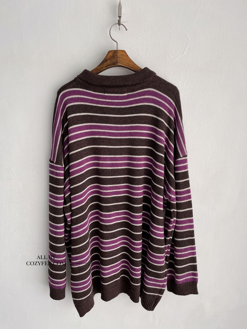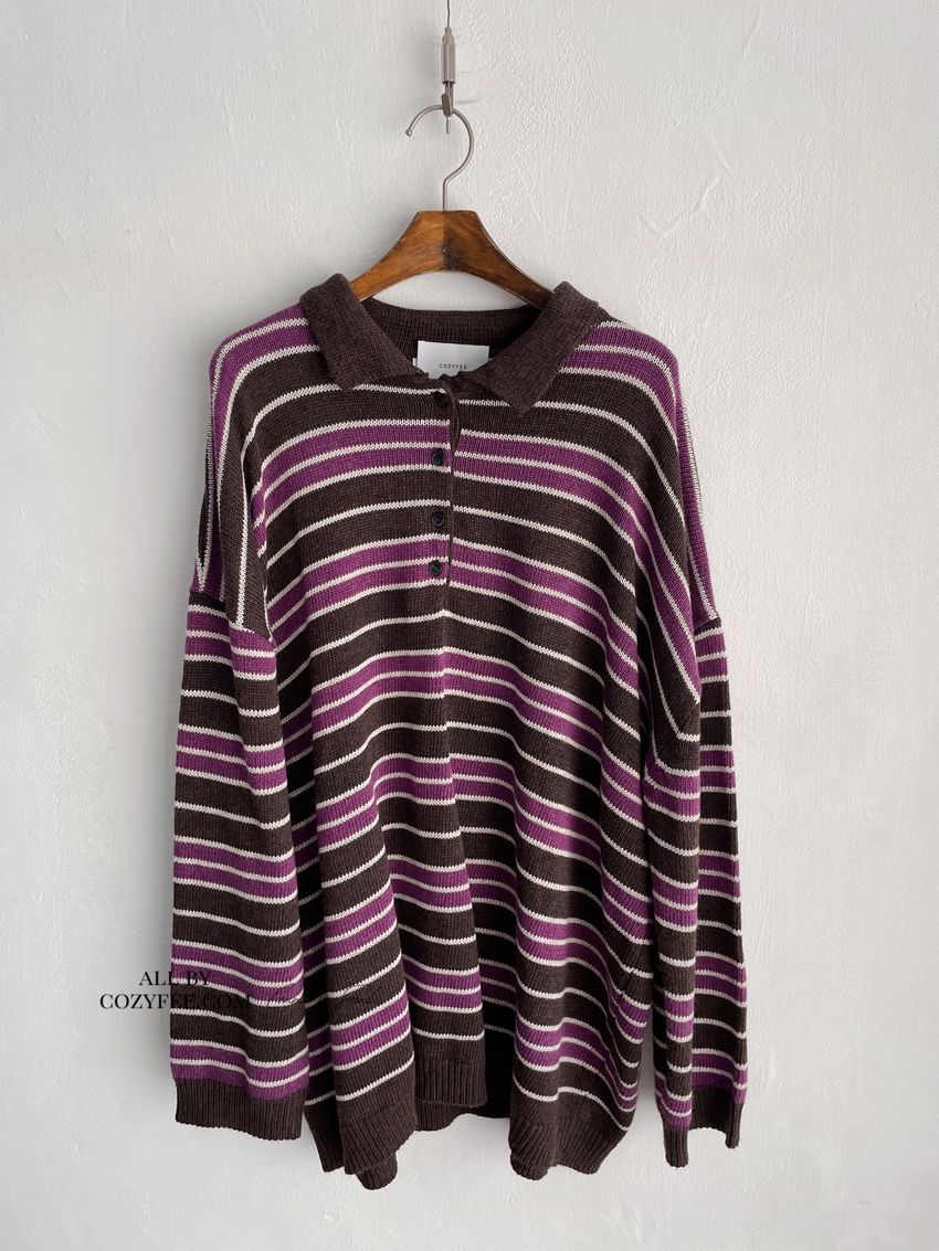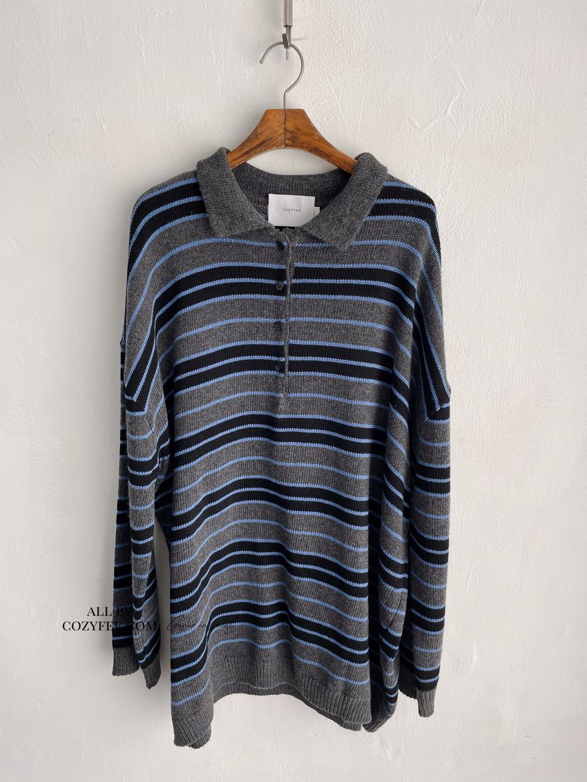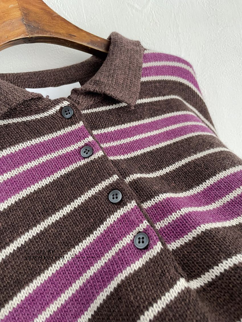 > 撞色條紋翻領polo毛衣