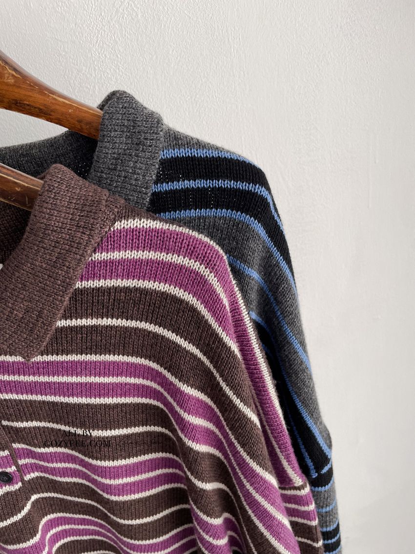 撞色條紋翻領polo毛衣