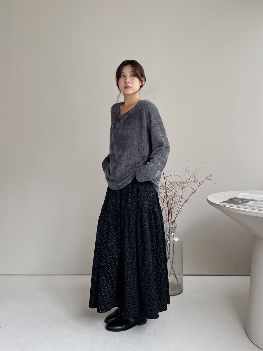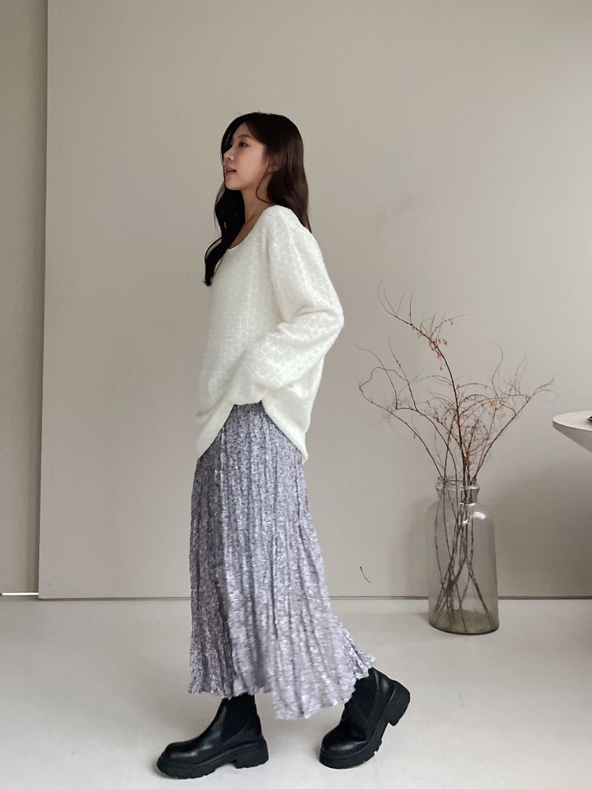 寬領毛海感拷克邊針織衫