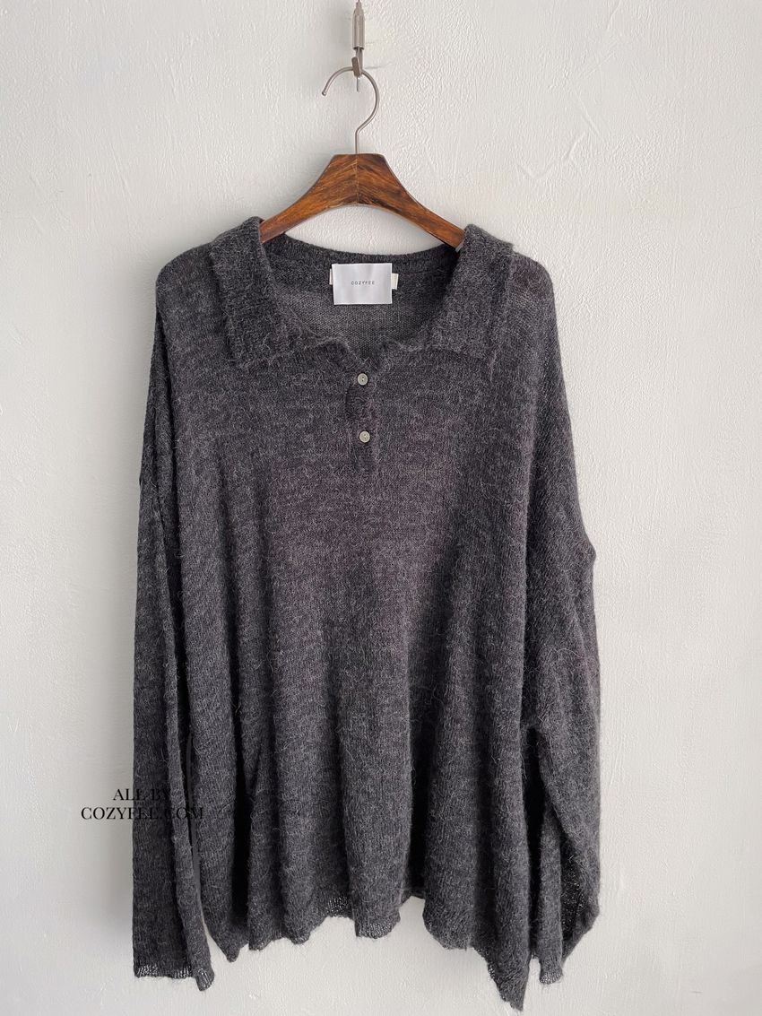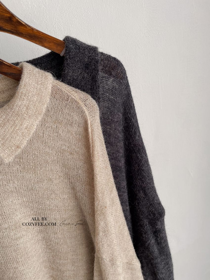 > 透膚感半釦羊駝毛針織衫(直播款)