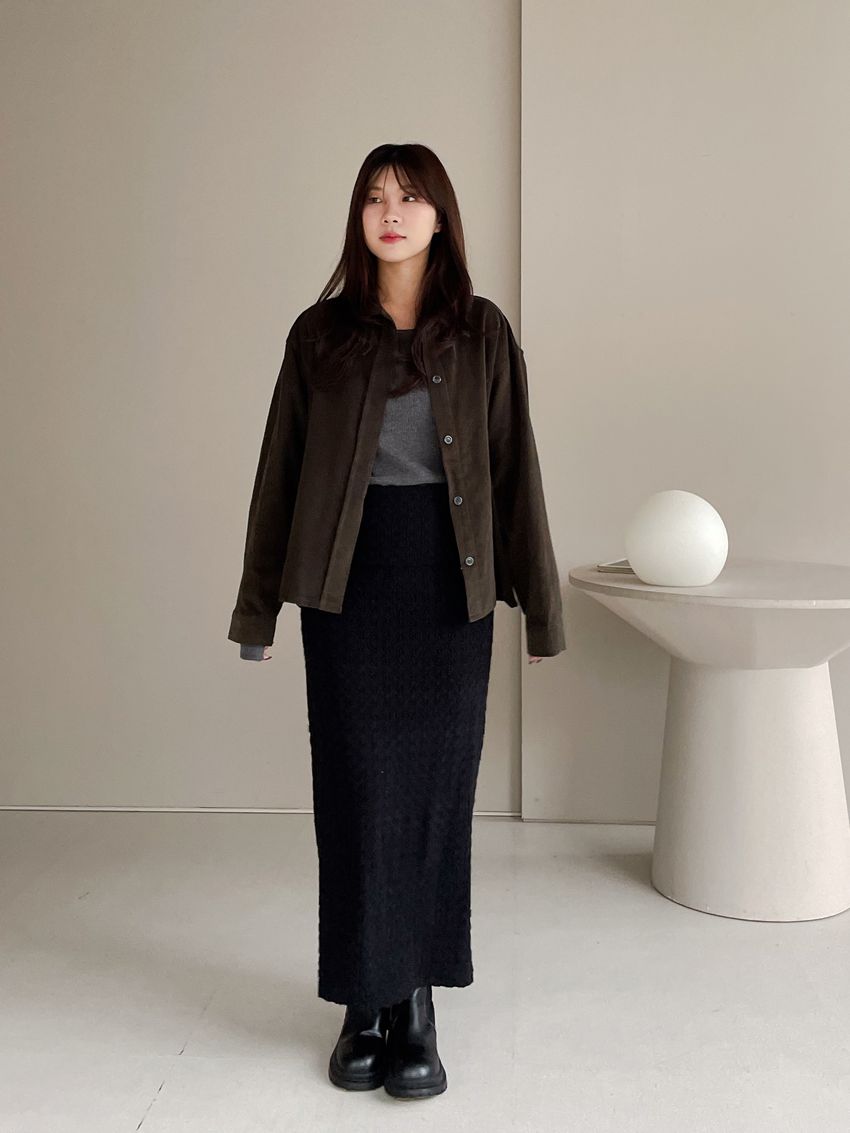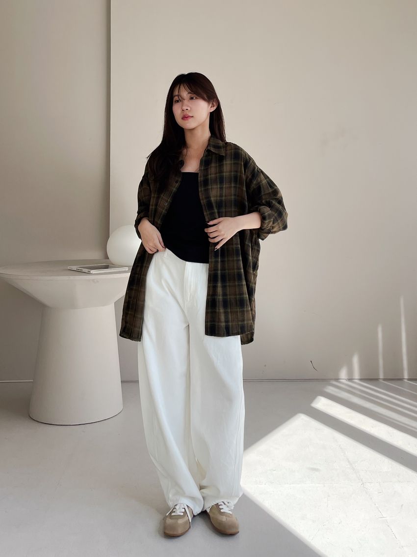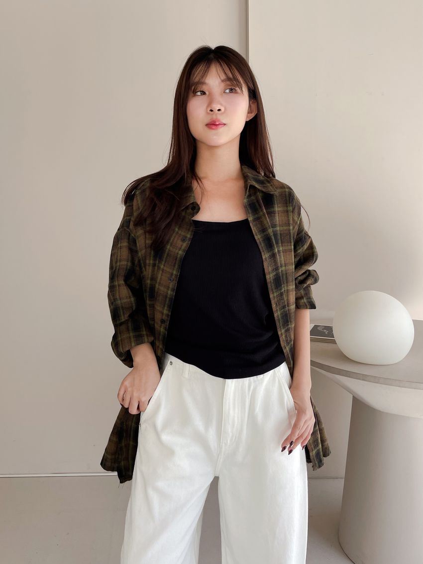 > 側開衩細羅紋長T