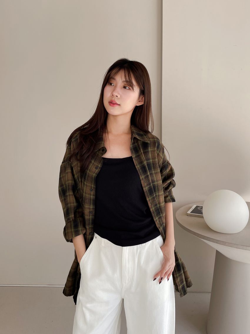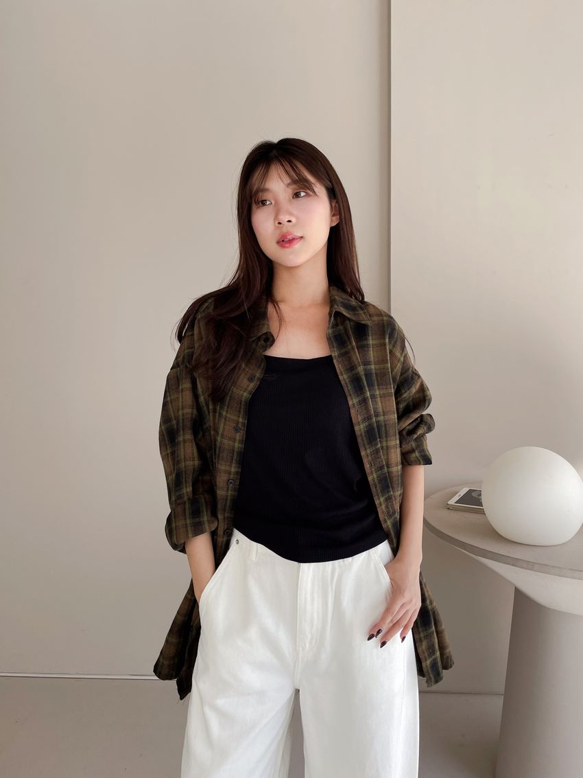 側開衩細羅紋長T