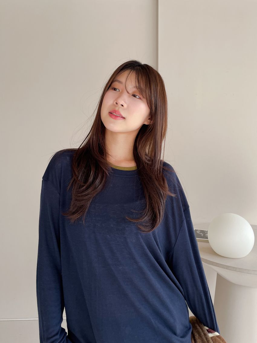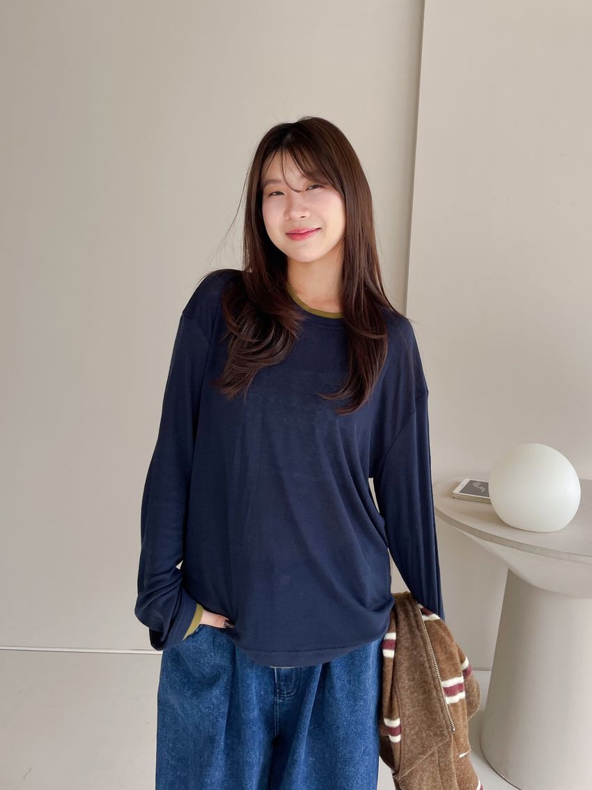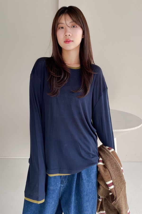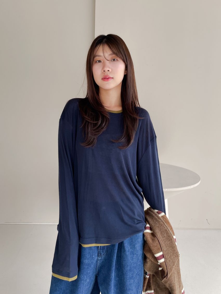 > 雙色拼接假兩件長T