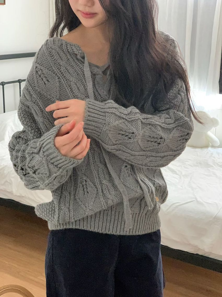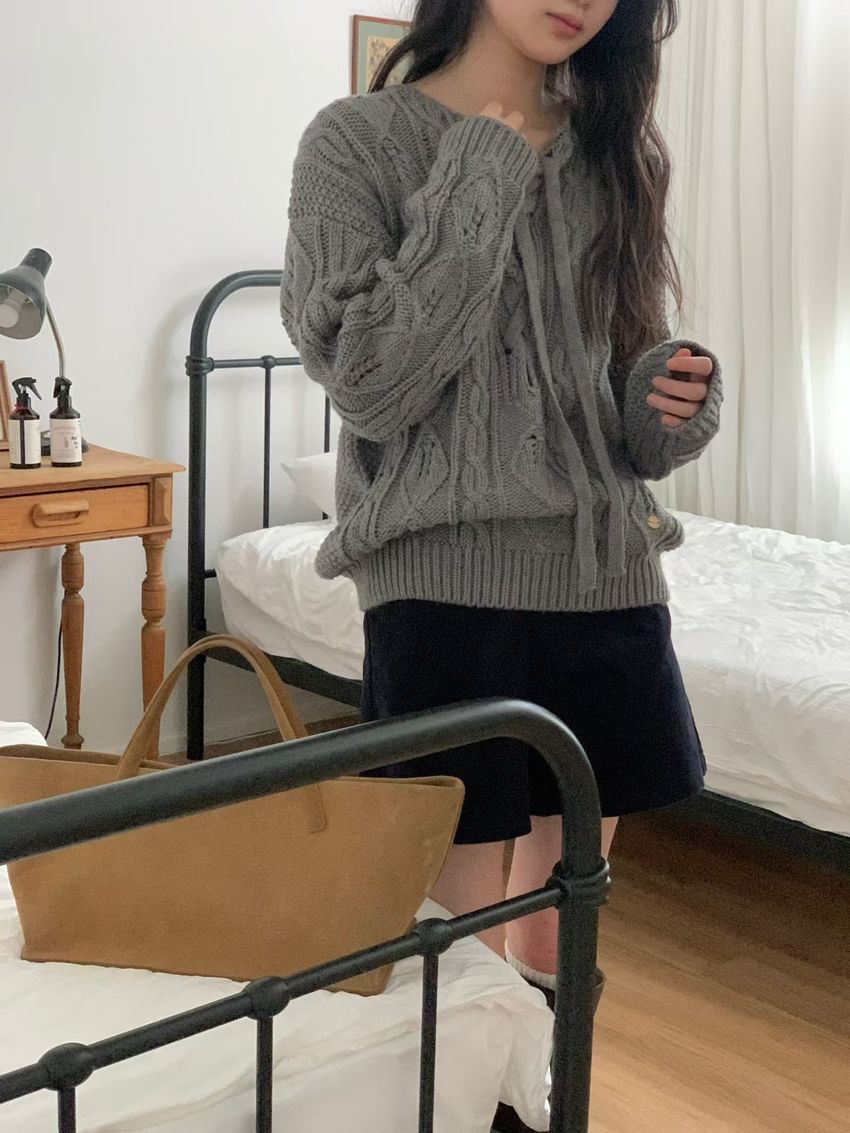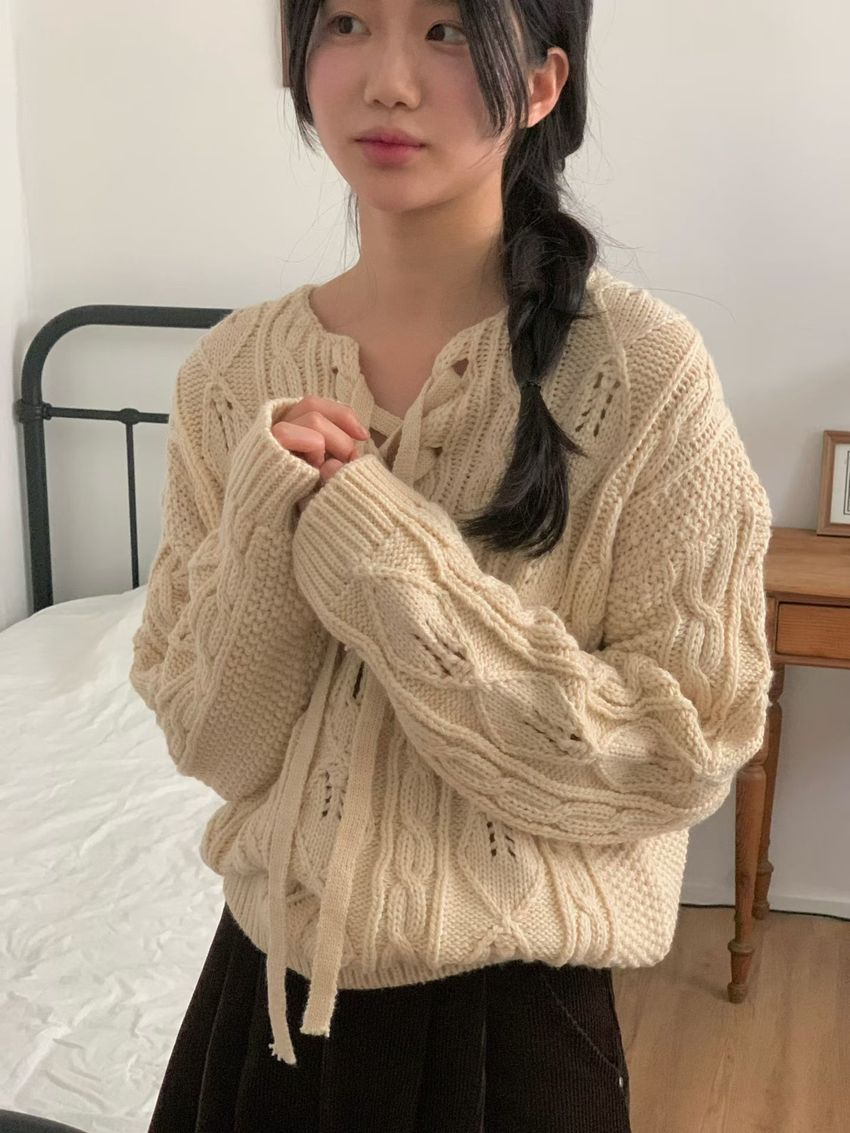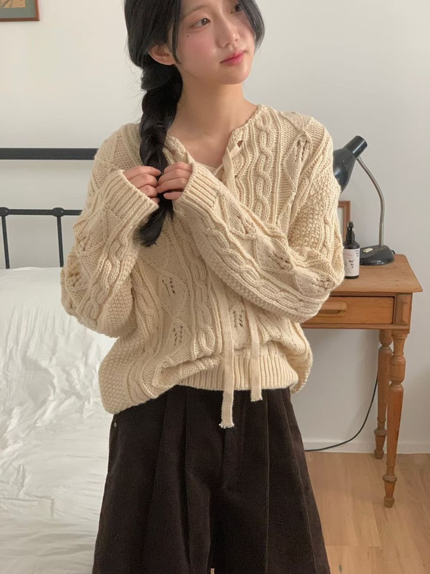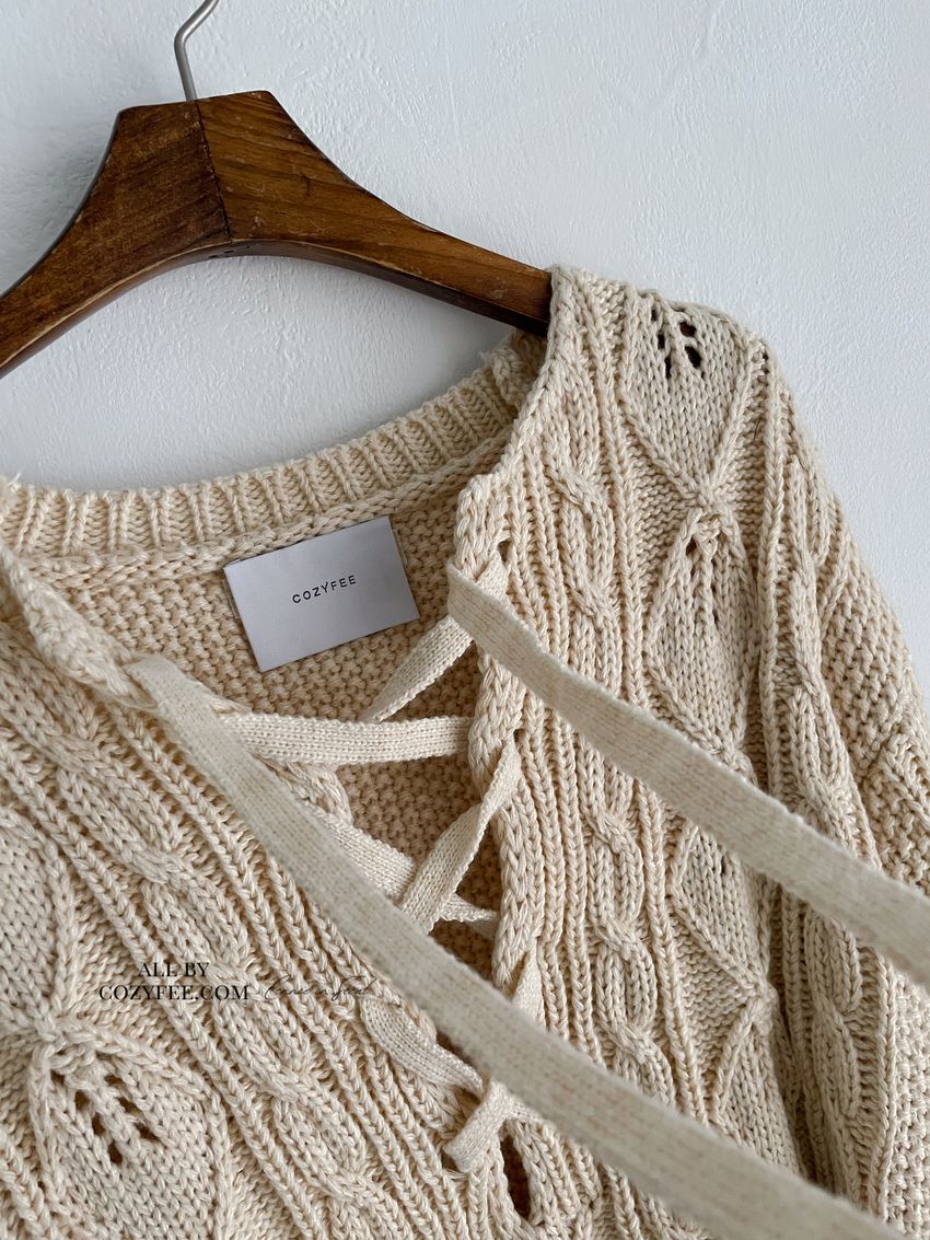 穿繩綁帶麻花針織衫(特)