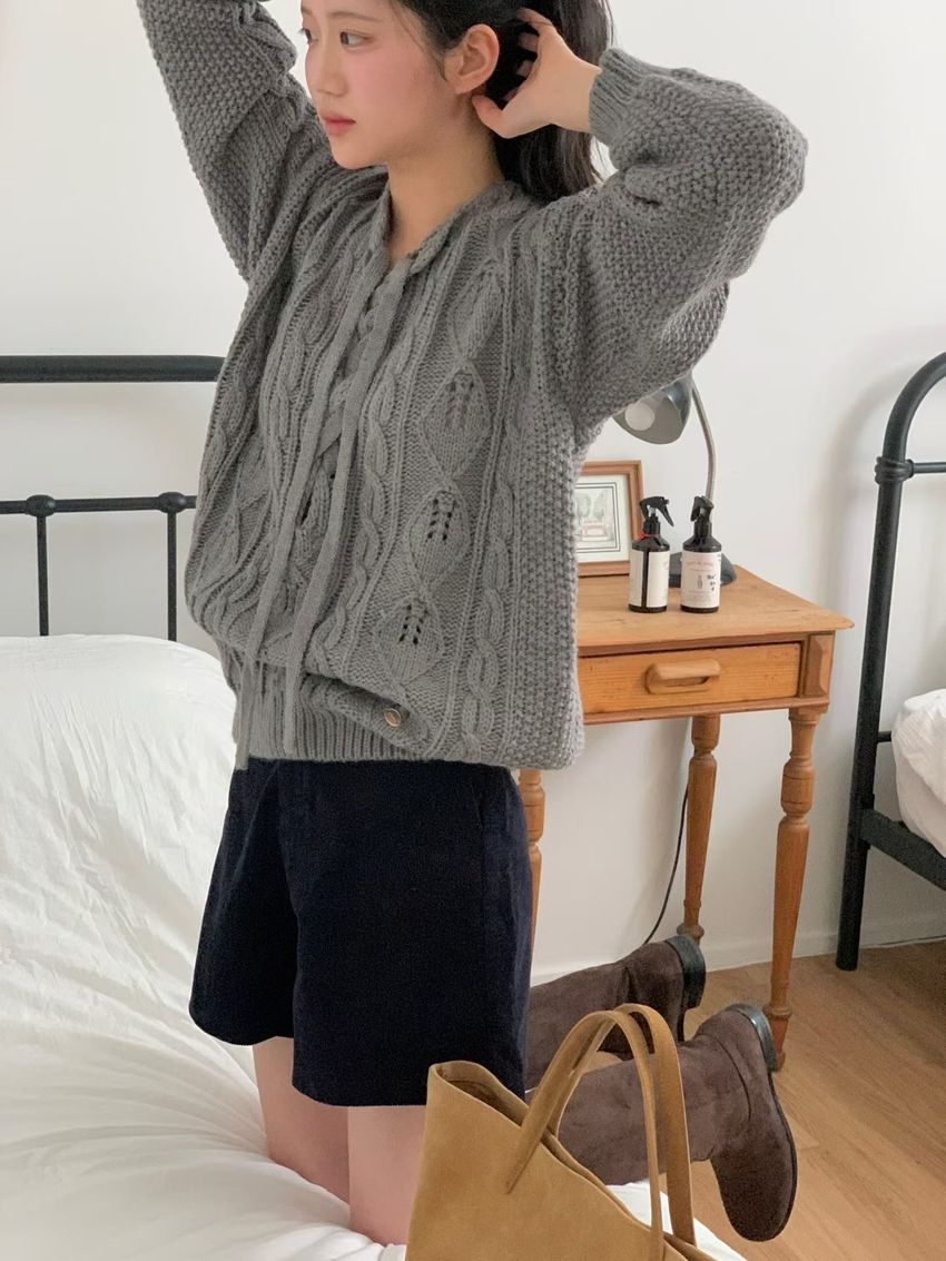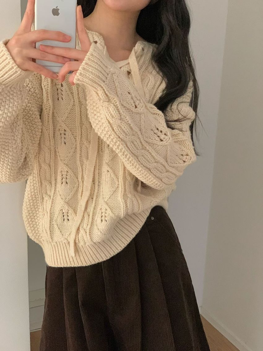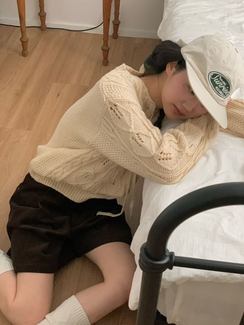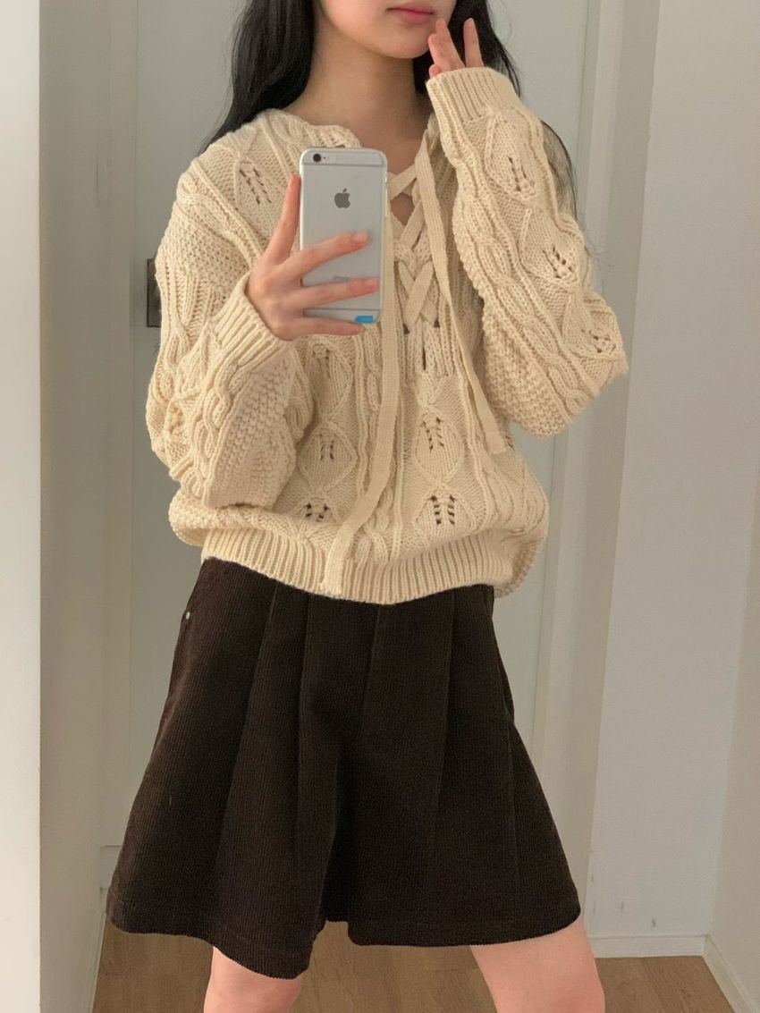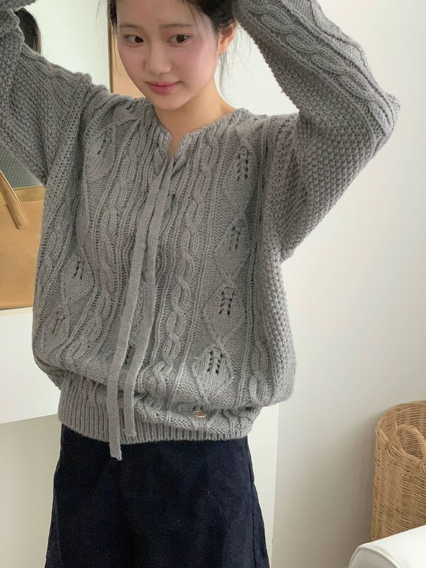 穿繩綁帶麻花針織衫(特)