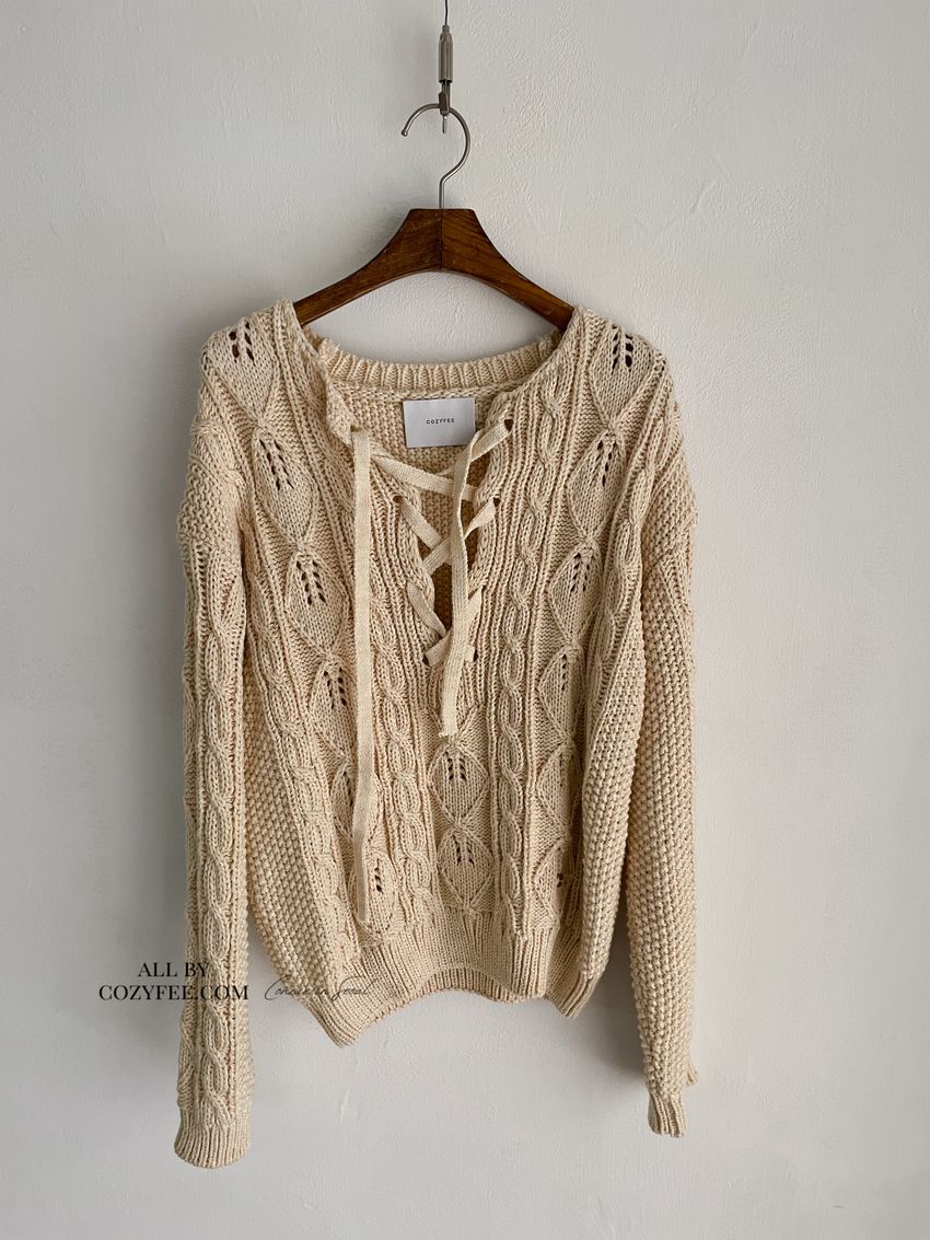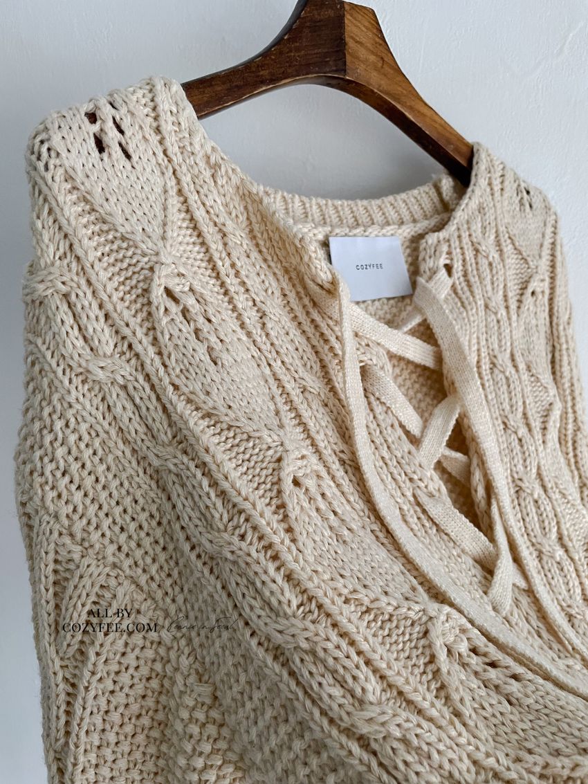 > 穿繩綁帶麻花針織衫(特)