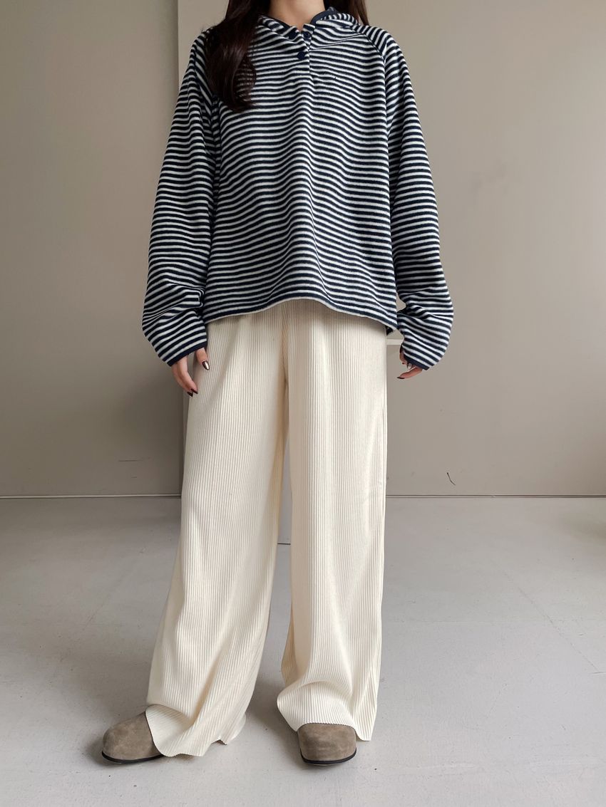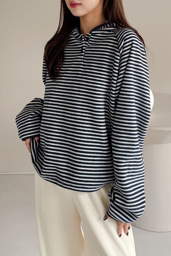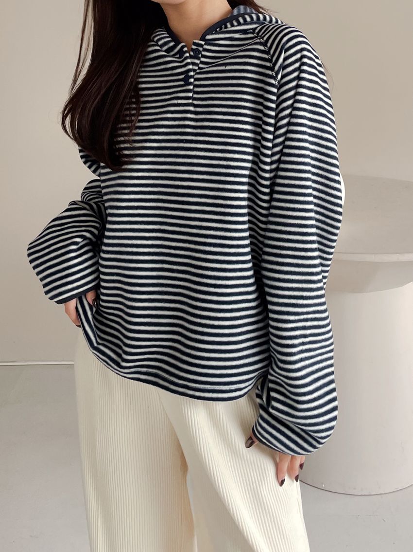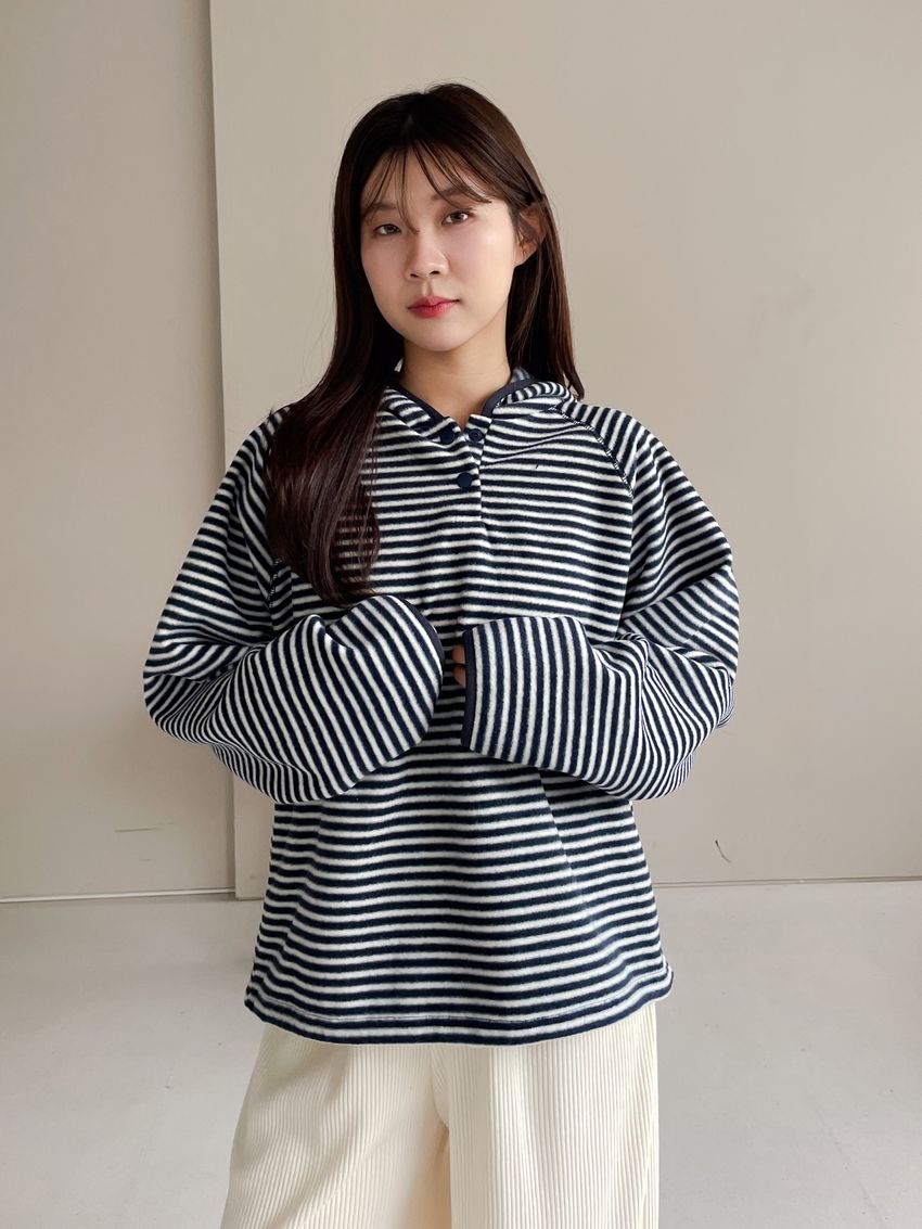 > 壓釦連帽刷絨T