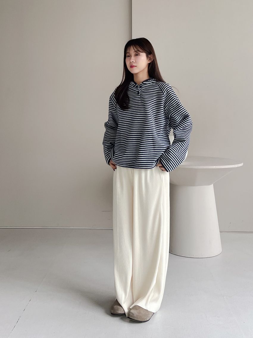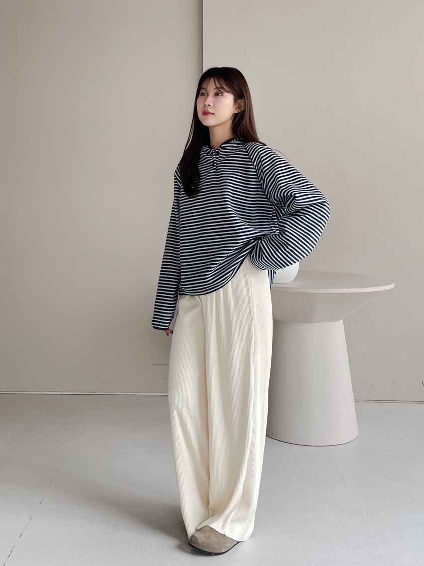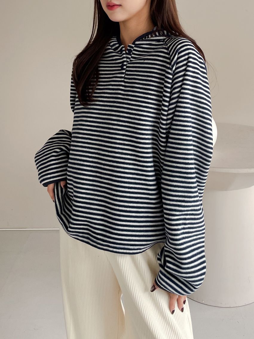 > 壓釦連帽刷絨T
