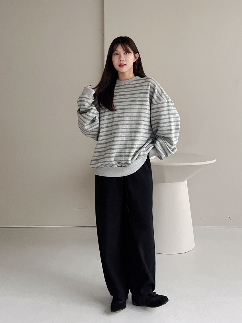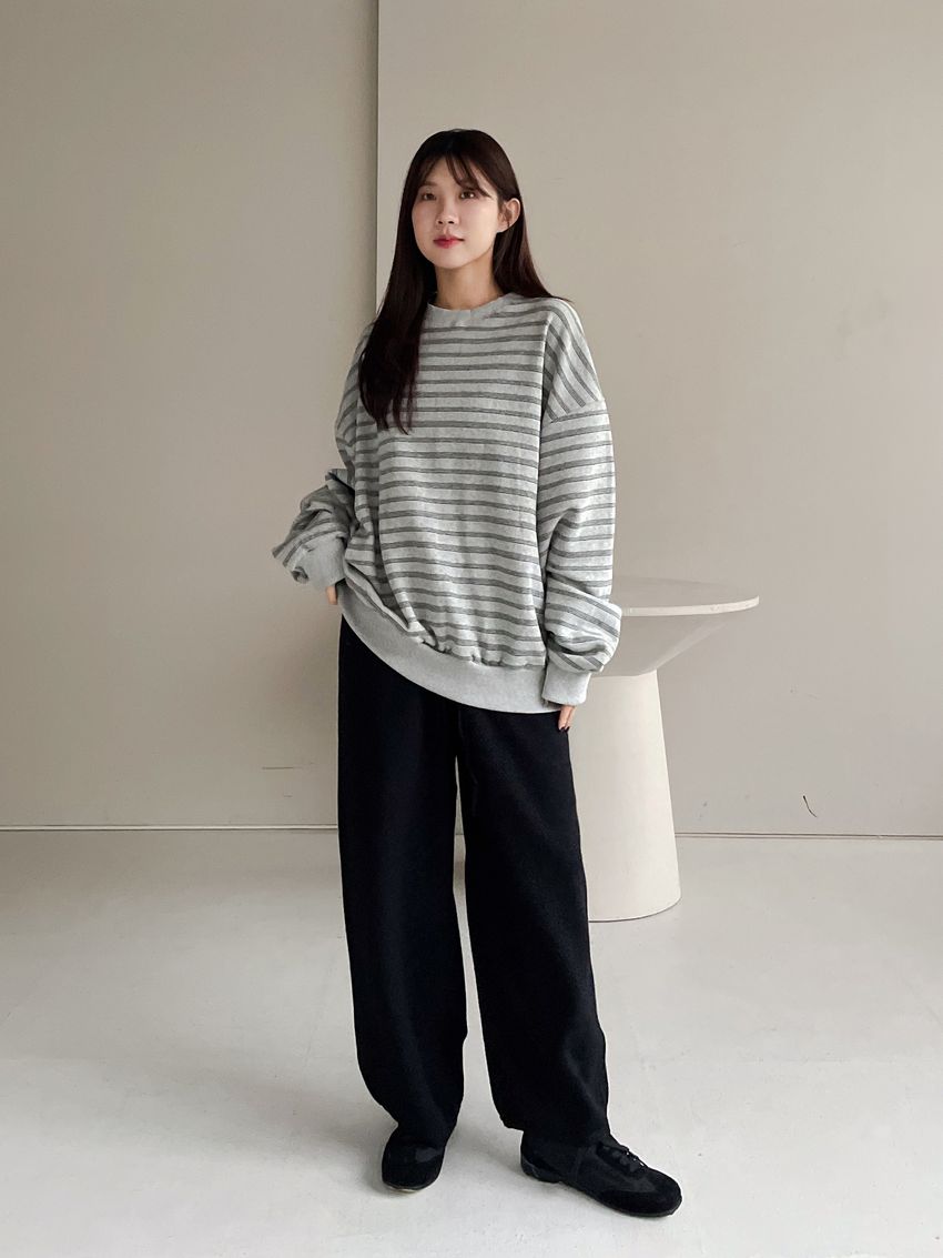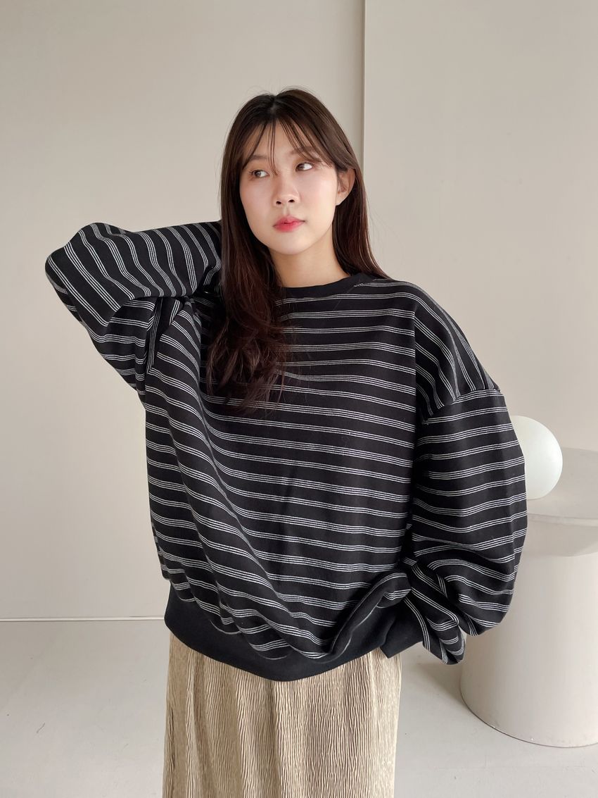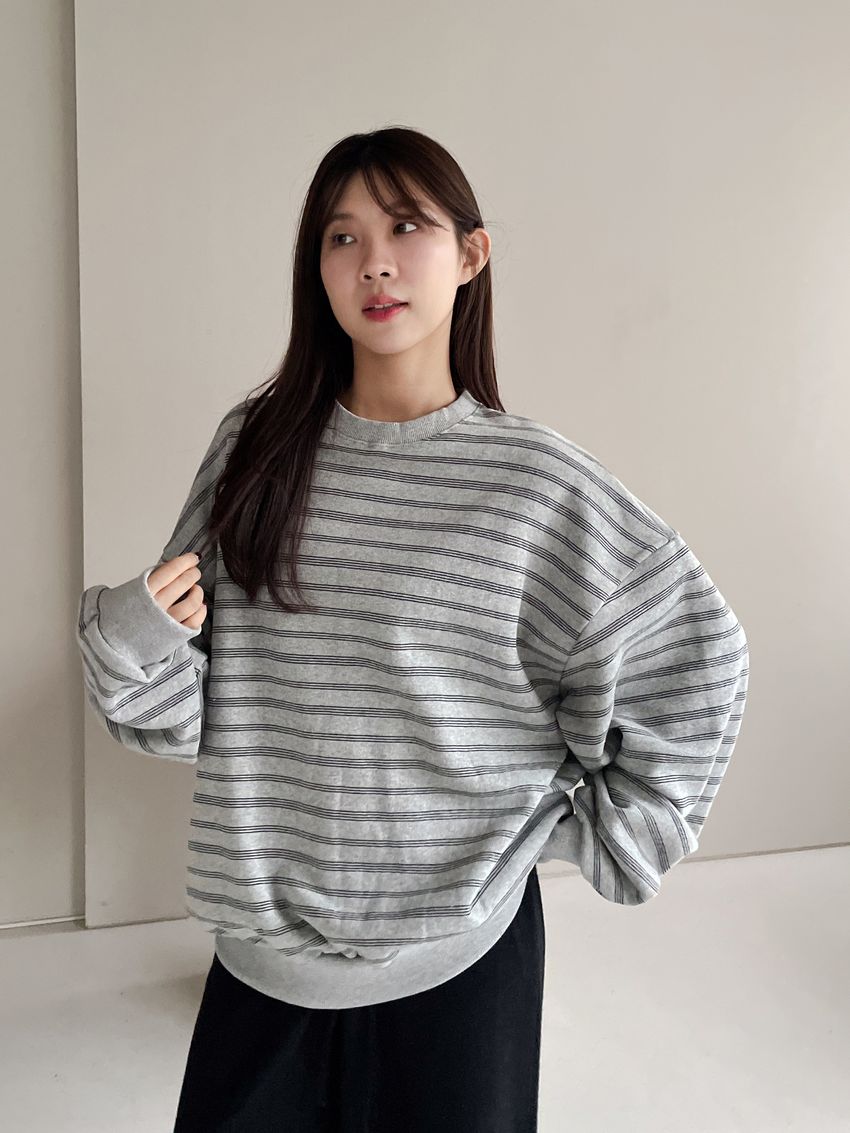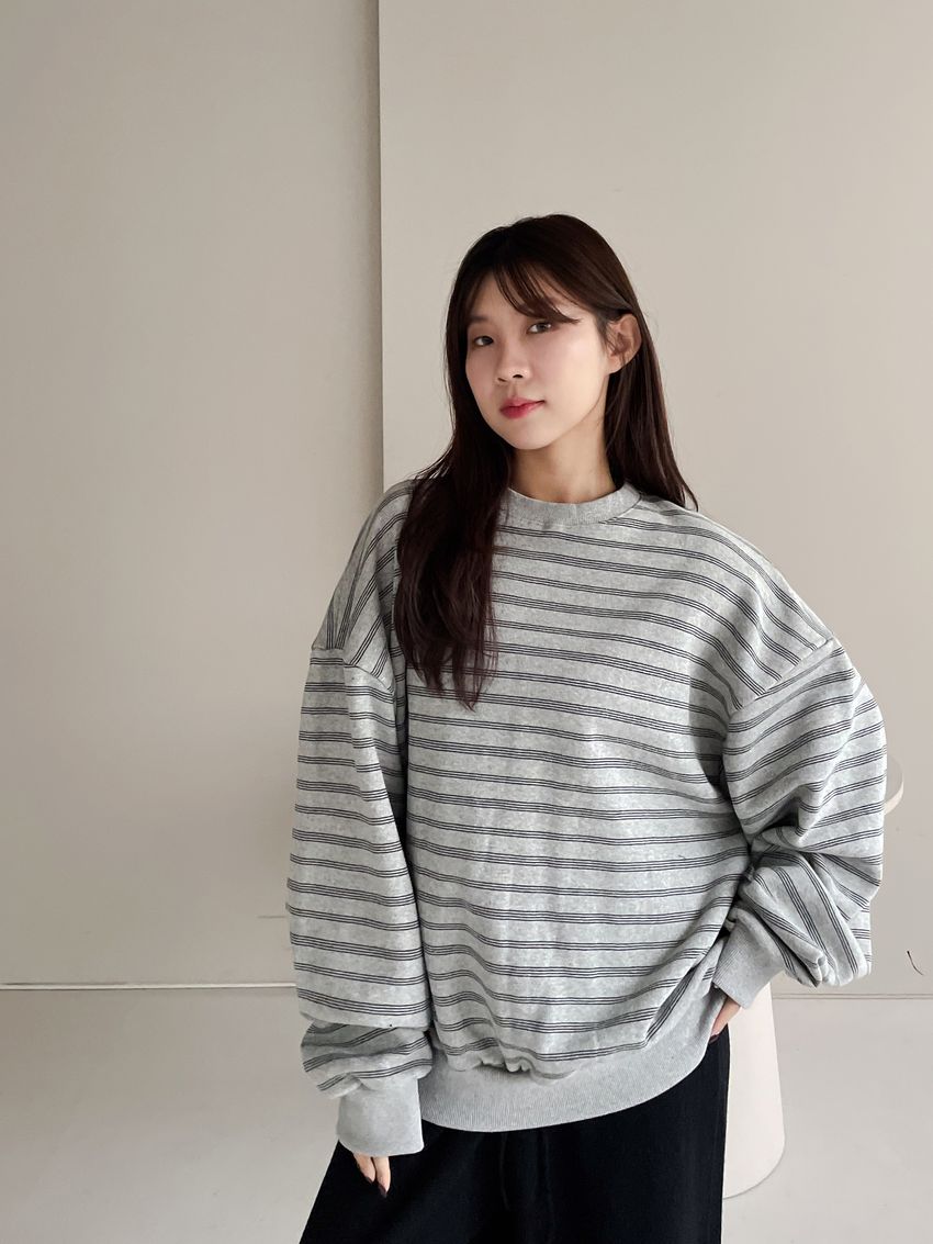 > 三線條刷毛大學T