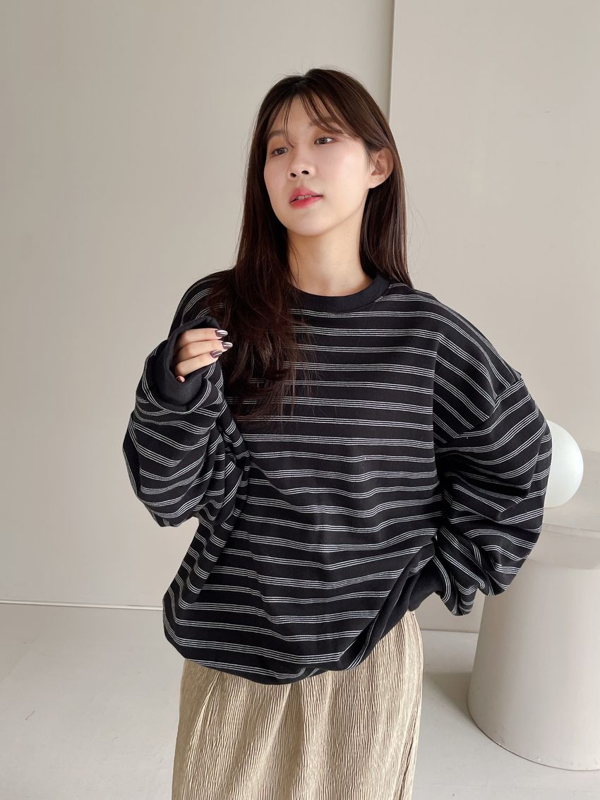 三線條刷毛大學T