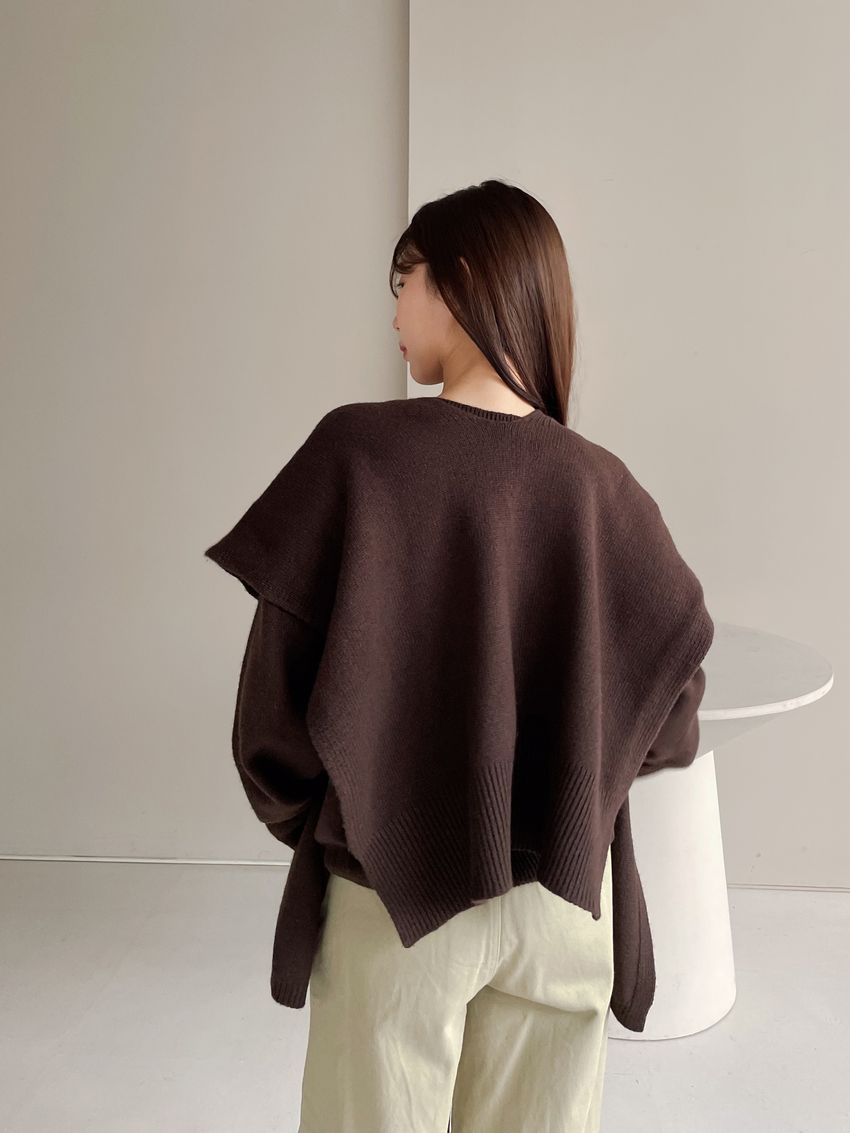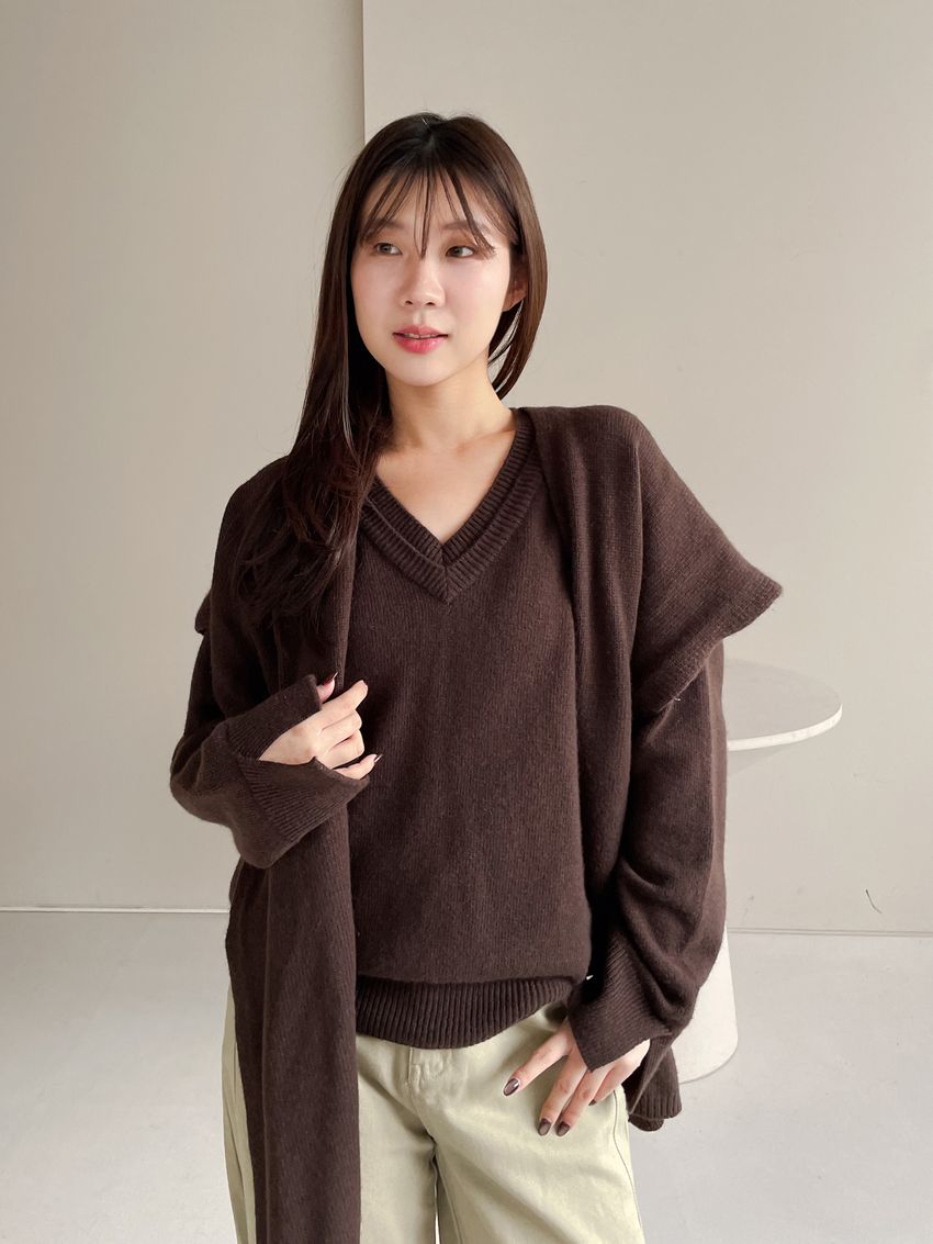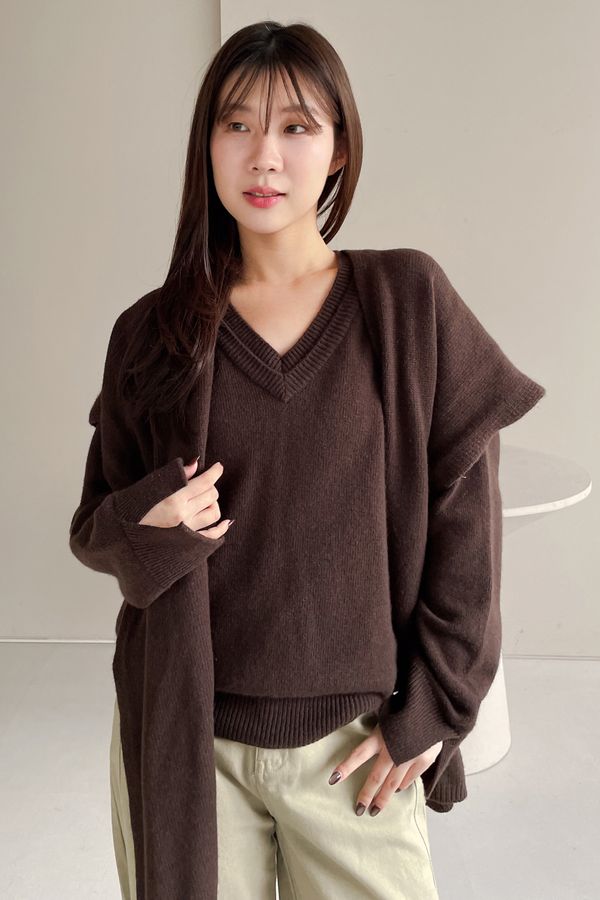 > 雙層V領羊毛衫