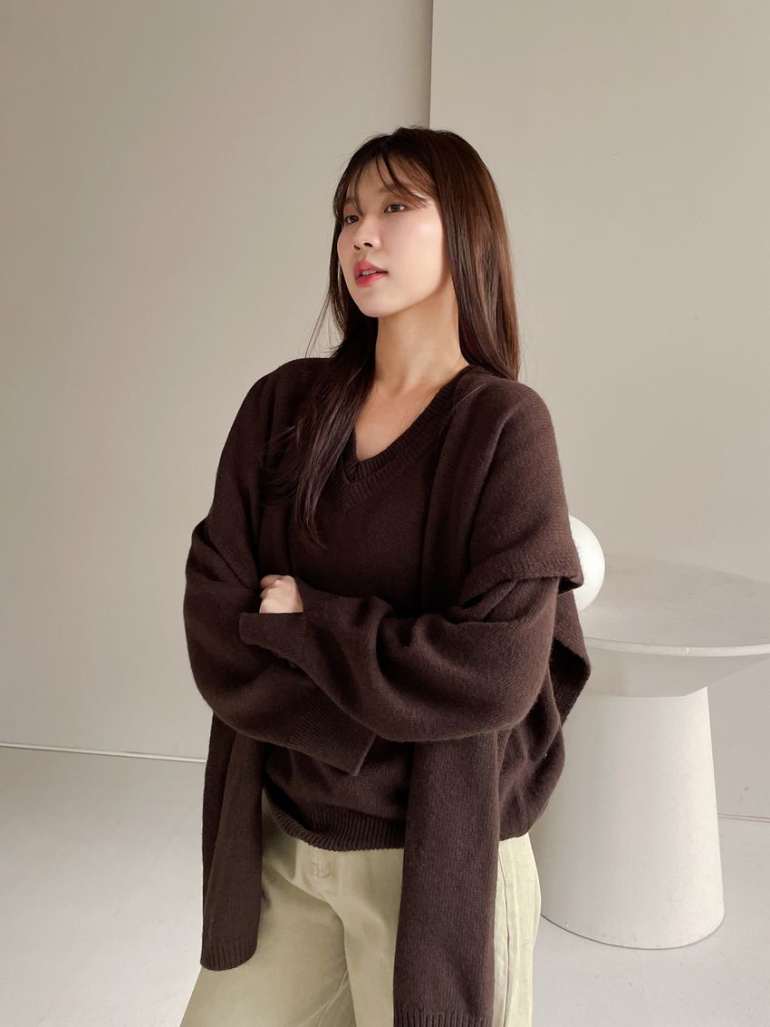 雙層V領羊毛衫