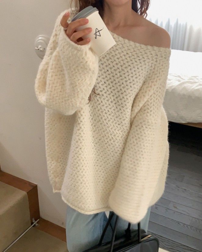 大寬領慵懶寬鬆毛衣(直播款)(特)