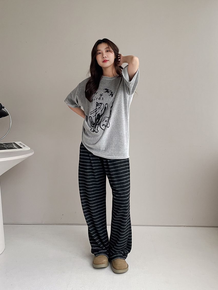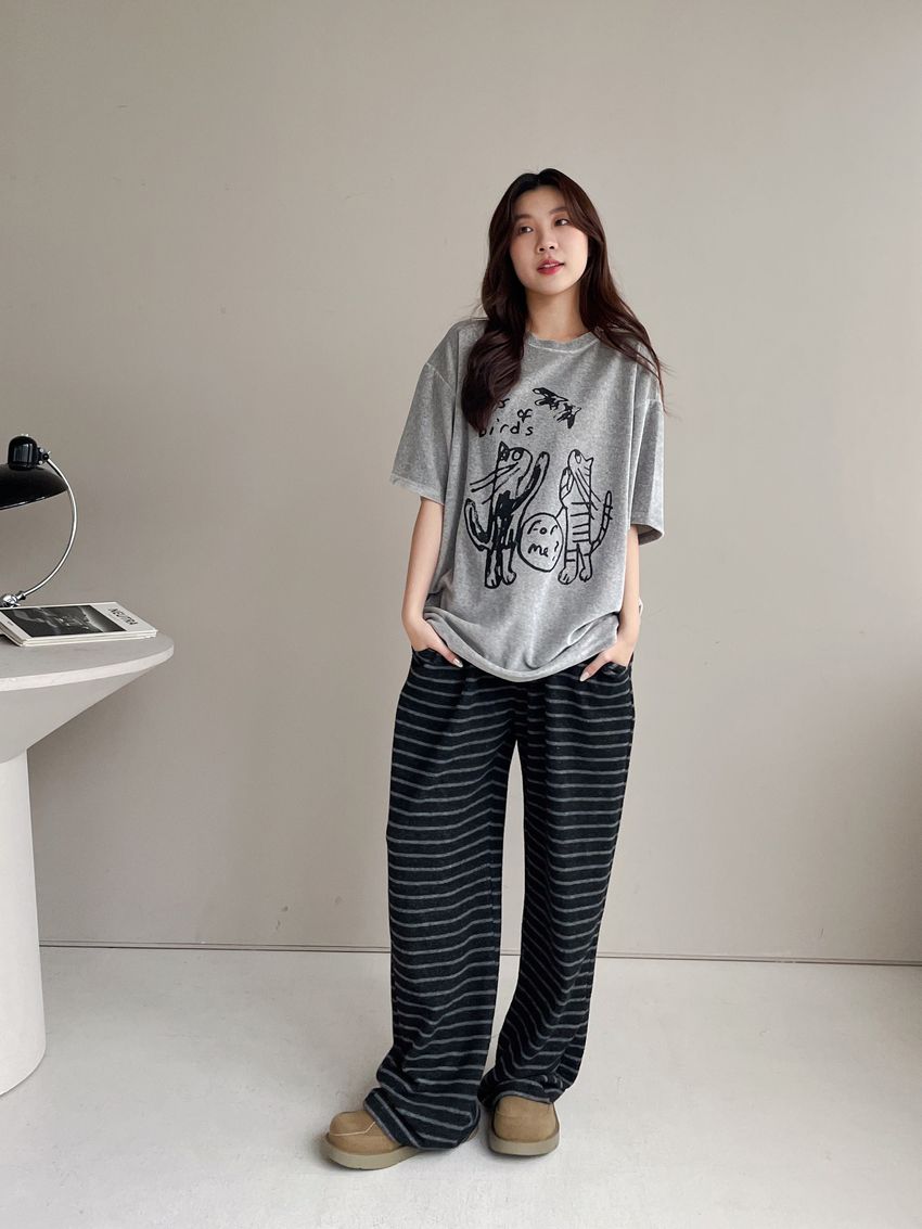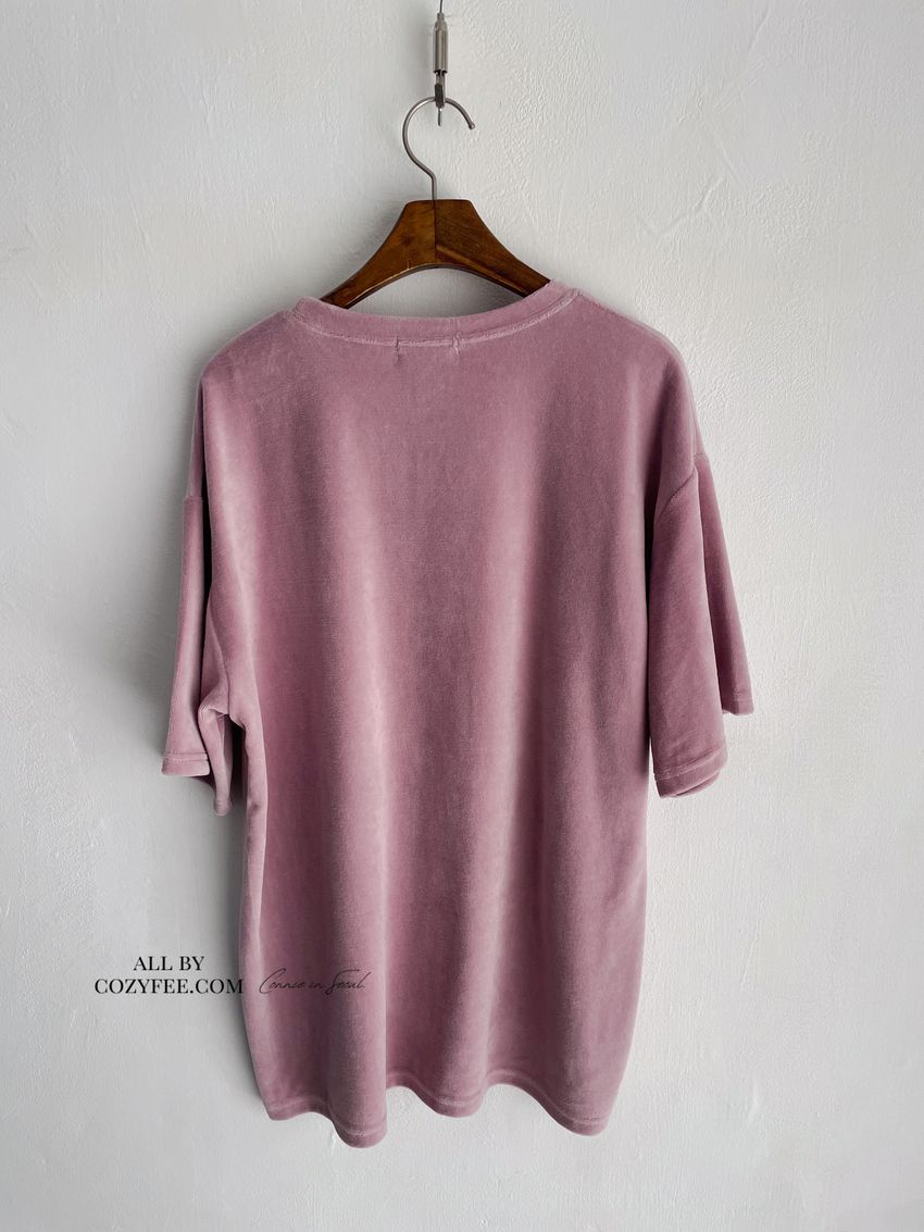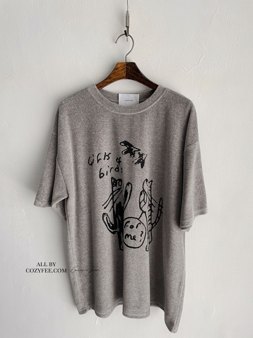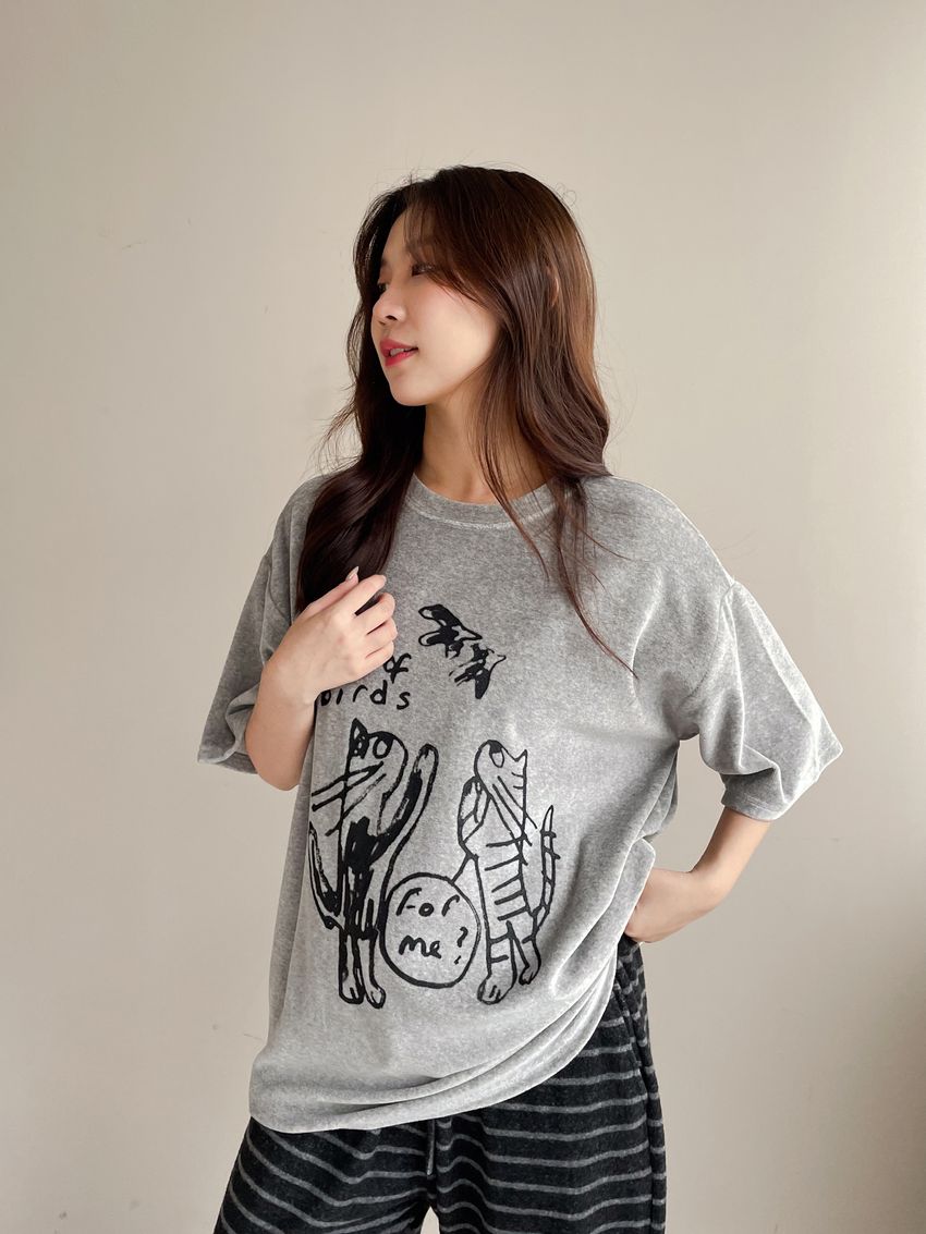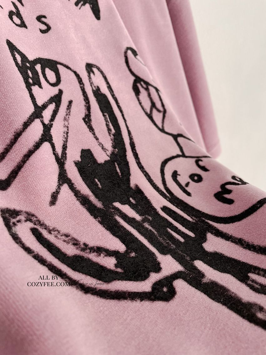 > 塗鴉貓天鵝絨長版T