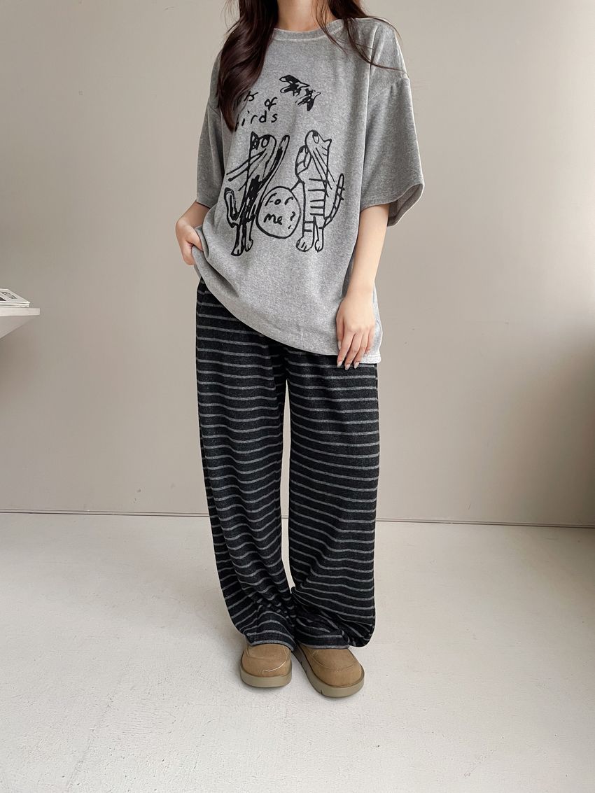 塗鴉貓天鵝絨長版T