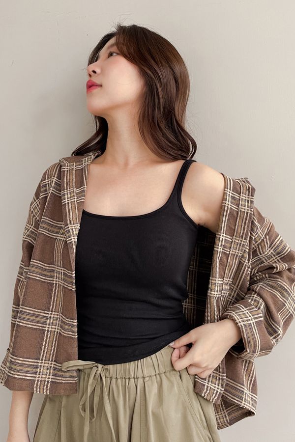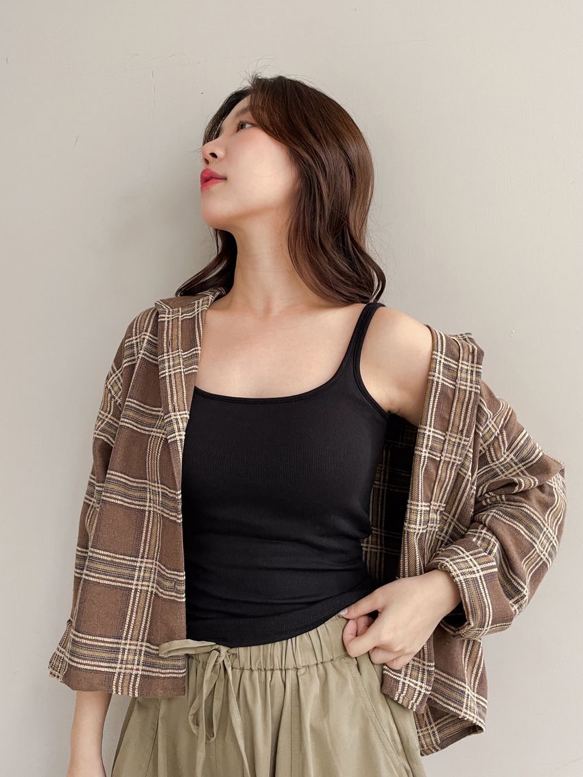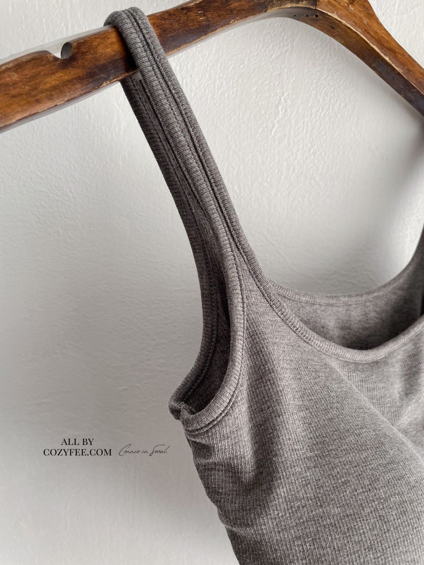磨毛坑條U領Bra Top(內含墊)