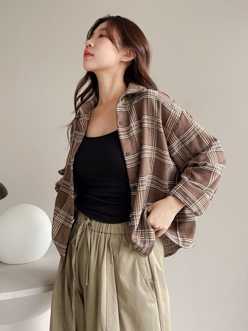 > 磨毛坑條U領Bra Top(內含墊)
