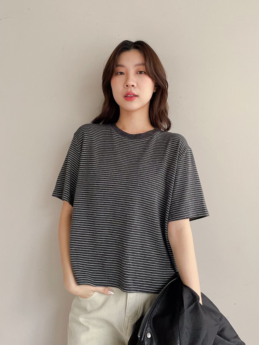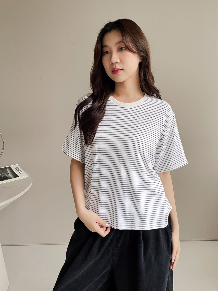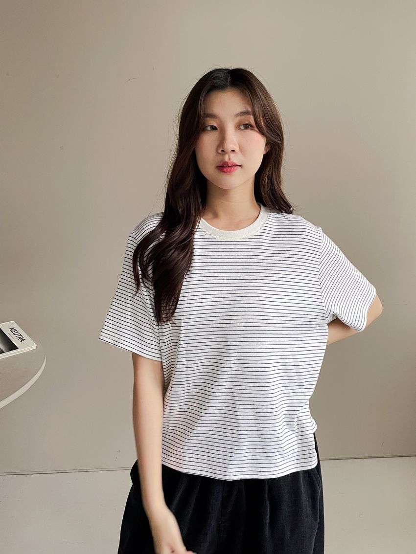 > 細線條圓領短T